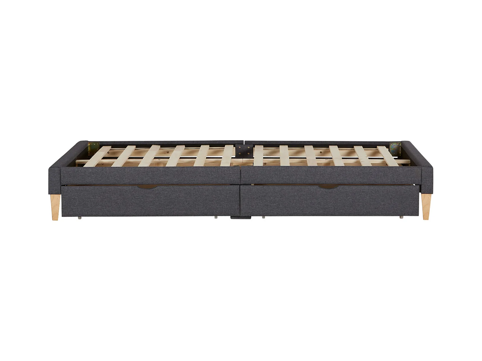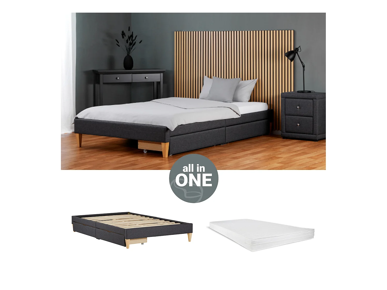 Lit avec tête de lit et 4 tiroirs - 140 x 200 cm - tissu lin - gris