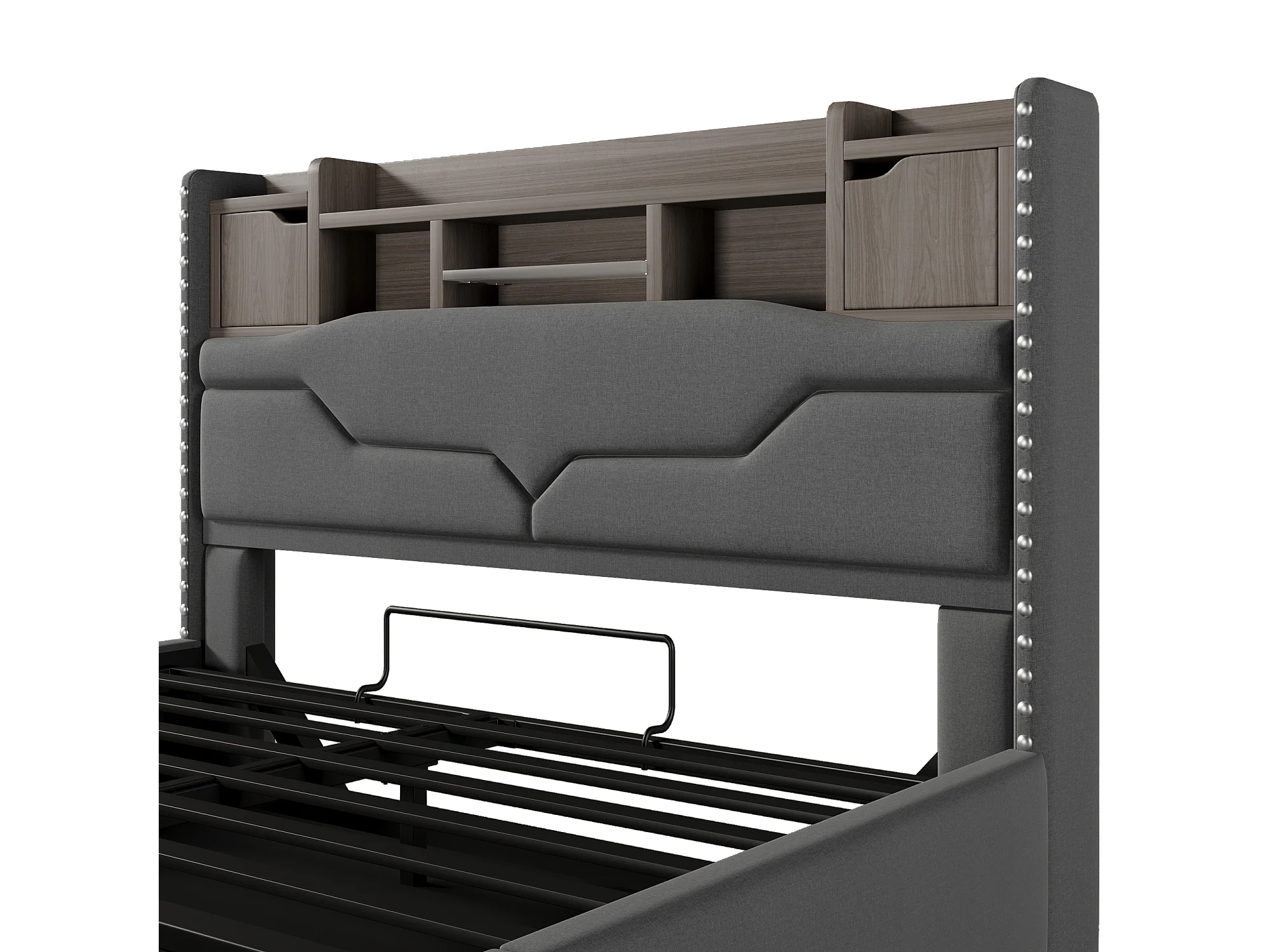 Lit rembourré 160x200 cm avec prise USB + Type-C, LED télécommandée sous le lit, tête de lit avec rangement, fonction de stockage hydraulique, sans matelas, Gris