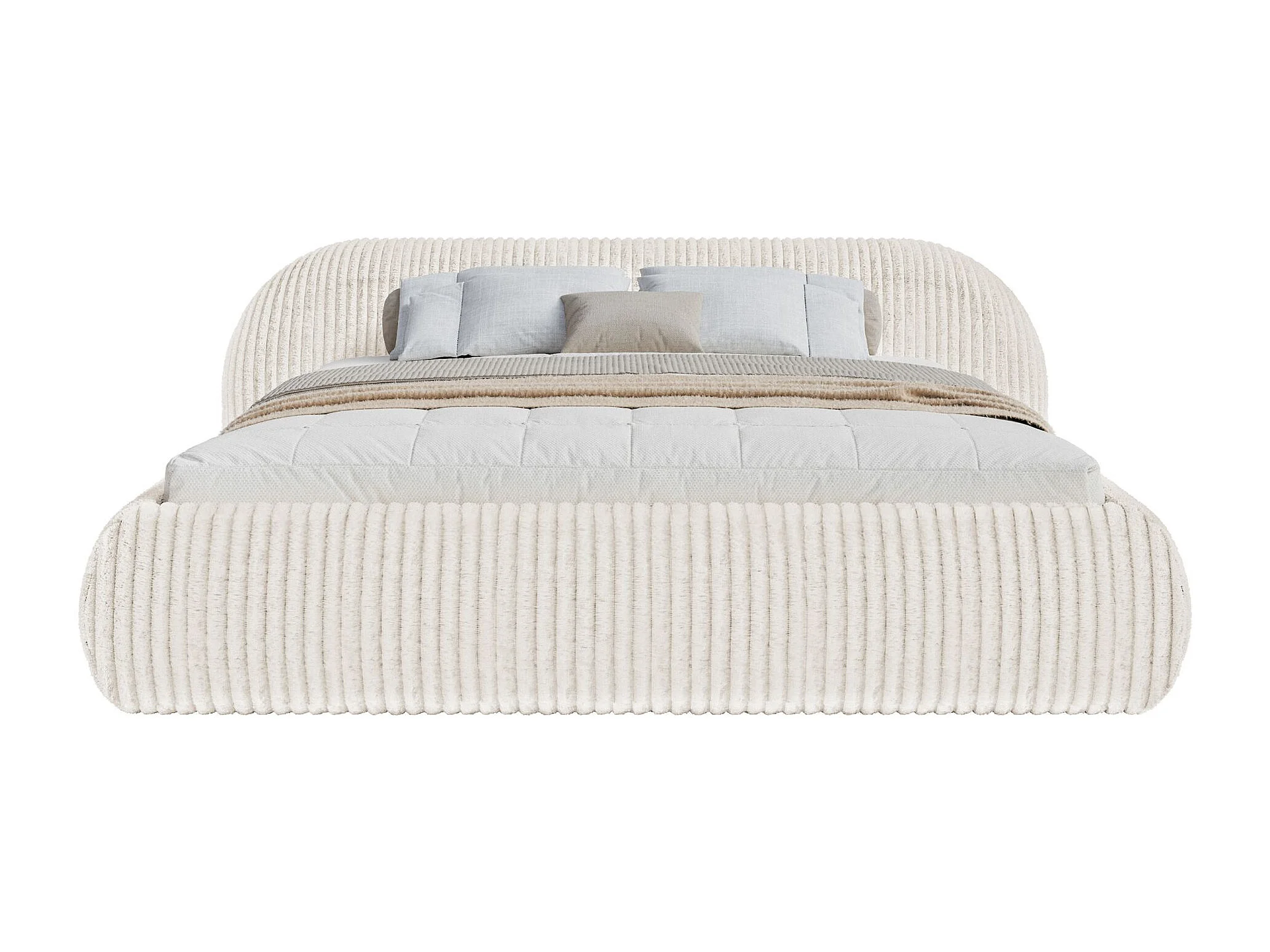 Lit rembourré 160x200 – en velours côtelé – crème – SHELS LOW