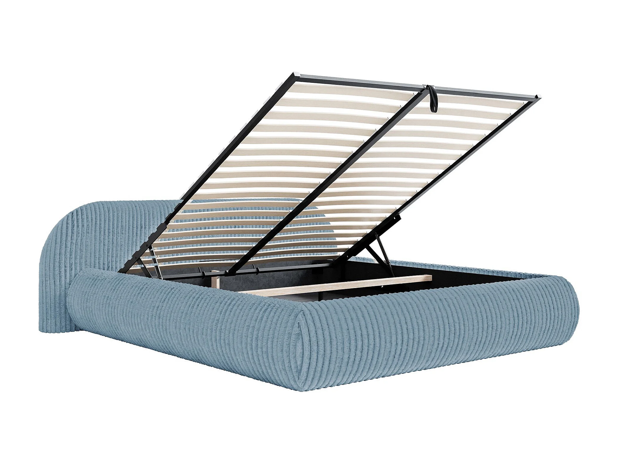 Lit rembourré 180x200 – avec coffre – en velours côtelé – bleu – SHELS LOW