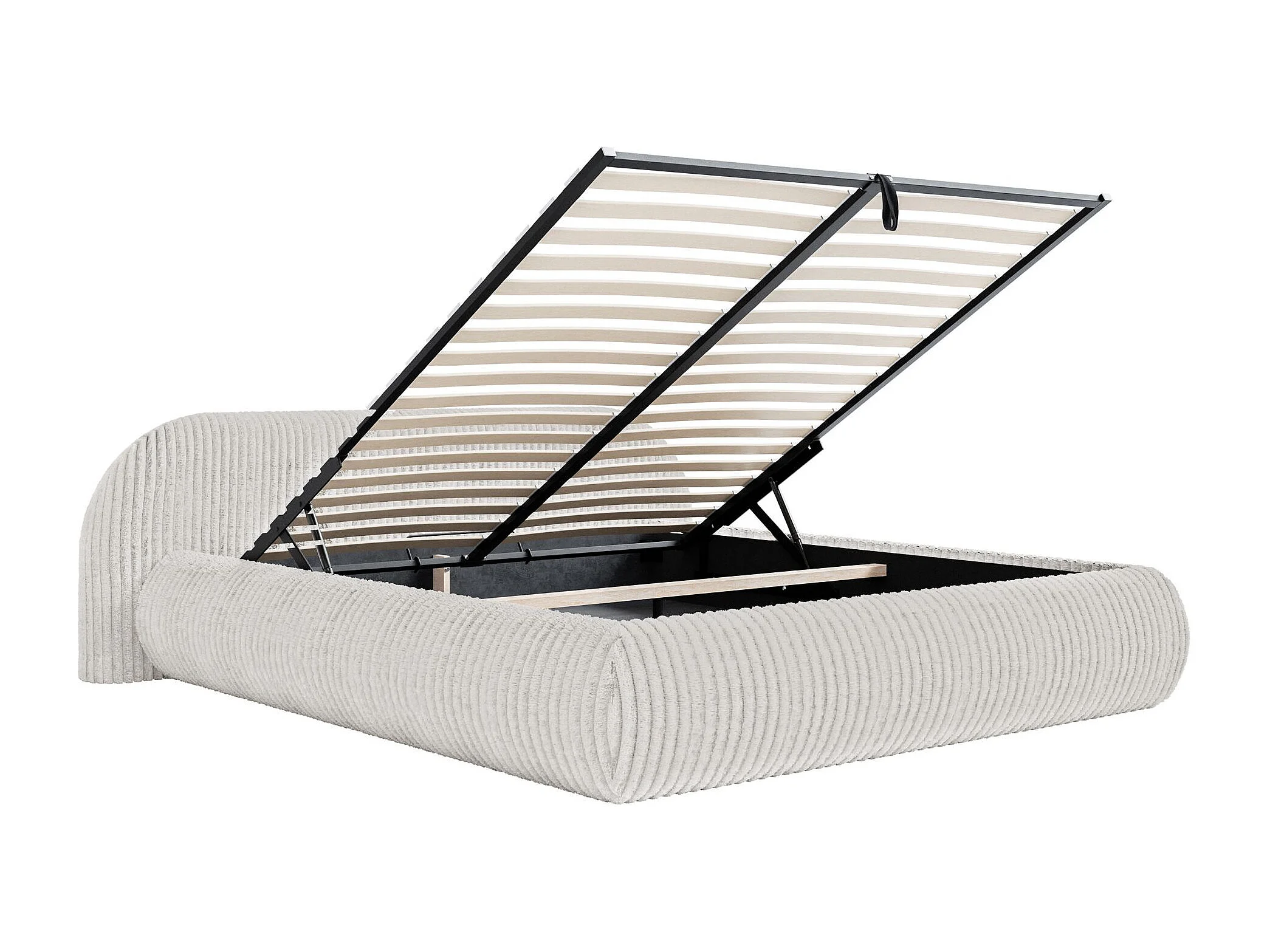 Lit rembourré 180x200 – avec coffre – en velours côtelé – gris clair – SHELS LOW