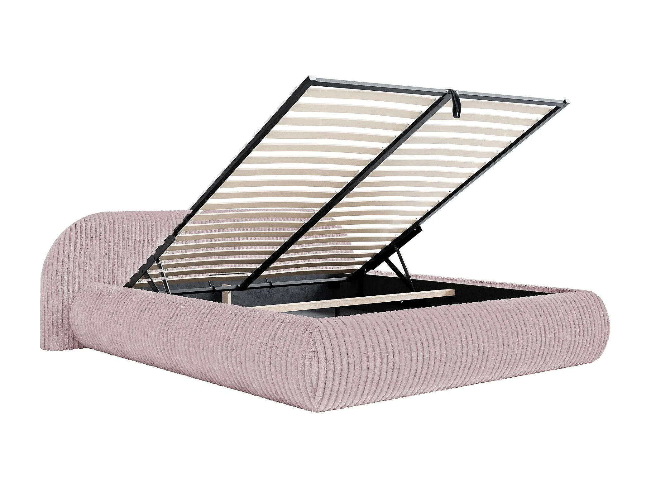 Lit rembourré 180x200 – avec coffre – en velours côtelé – rose – SHELS LOW
