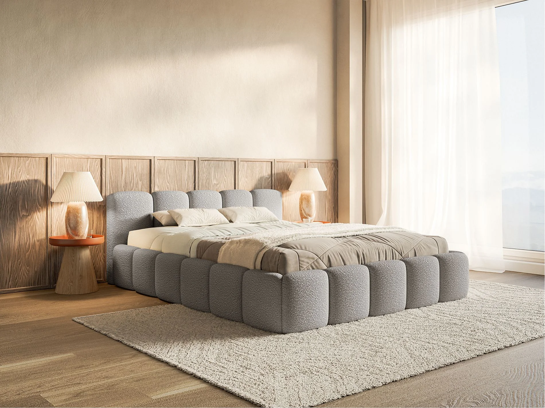 Lit rembourré 180x200 cm - gris- Cloudy Low