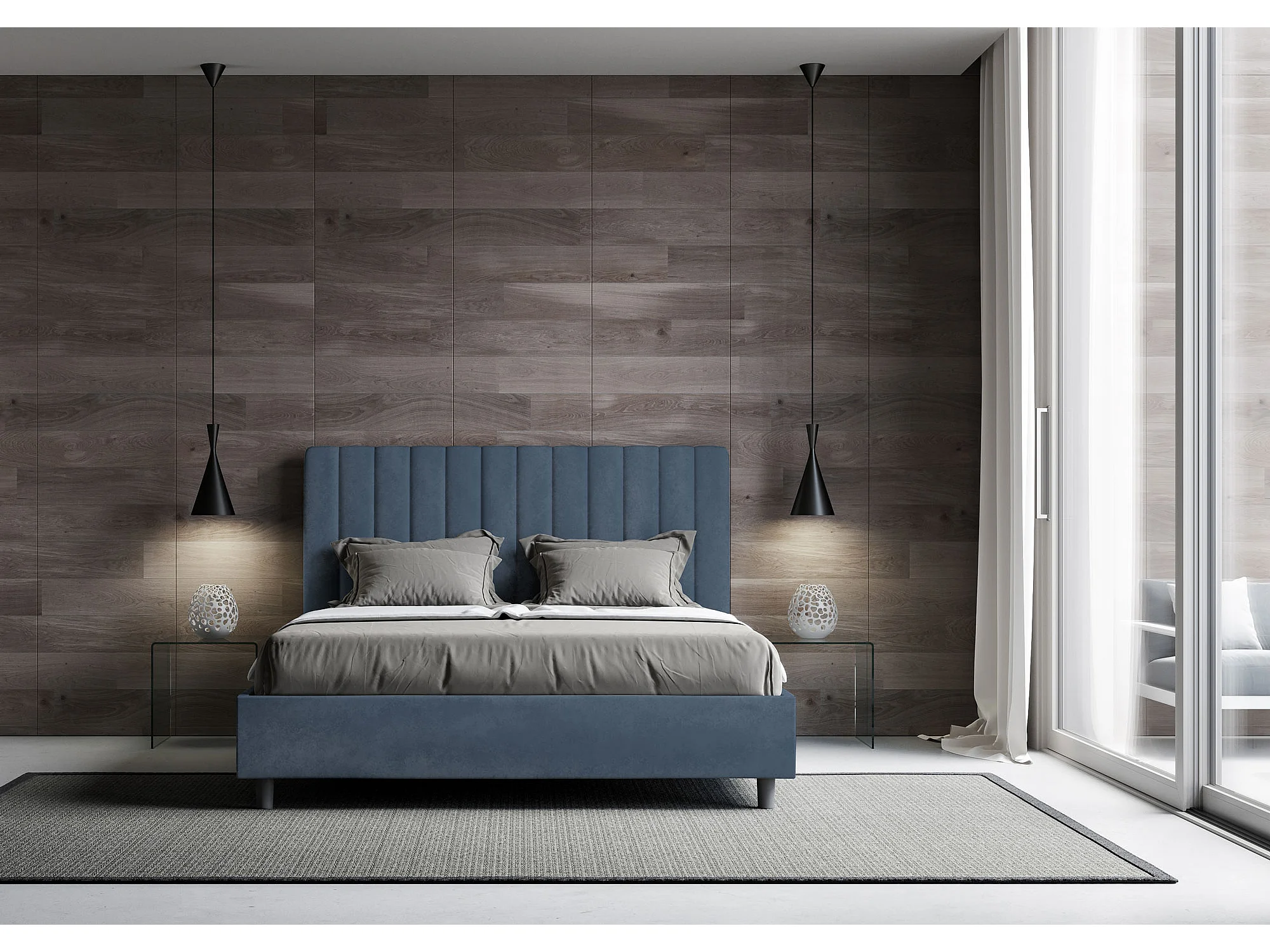 Lit sans sommier rembourré 160x210 microfibre bleu Agueda