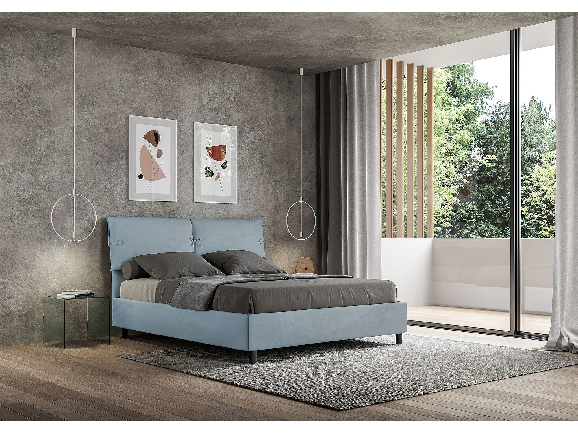 Lit sans sommier rembourré 160x190 microfibre bleu clair Sleeper