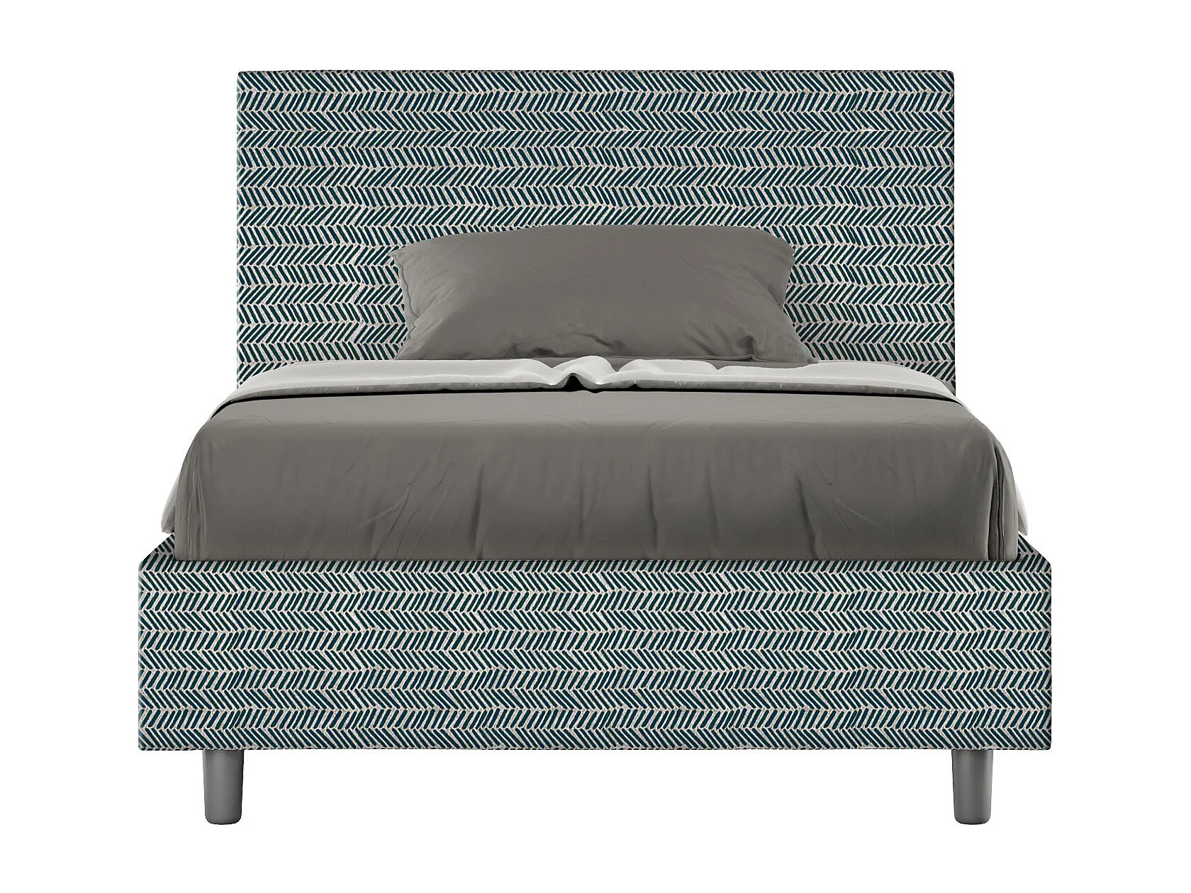Lit 1 place et demi sans sommier rembourré 120x210 tissu Aragona 8 bleu Adele
