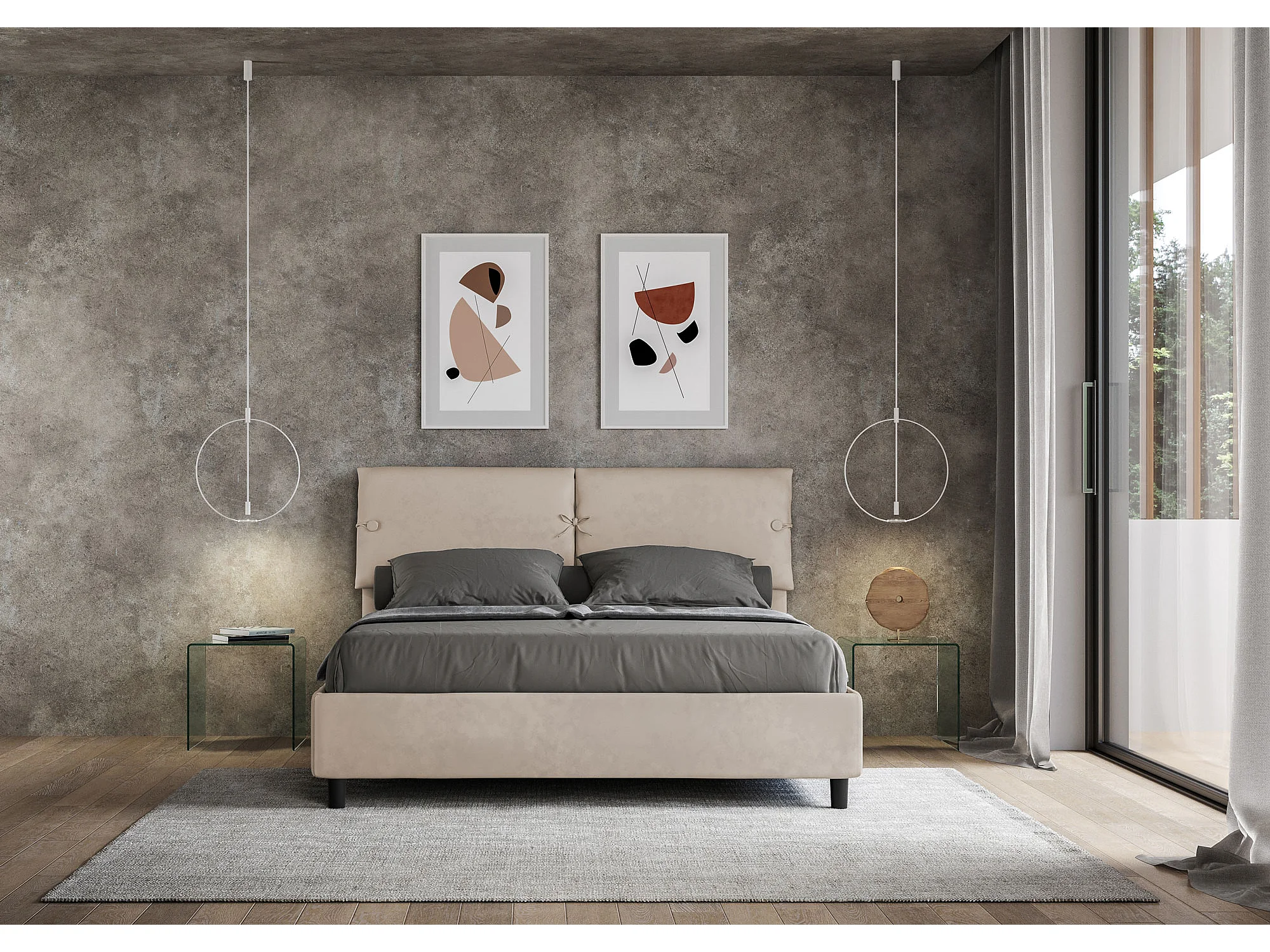 Lit sans sommier rembourré 160x190 microfibre sable Sleeper
