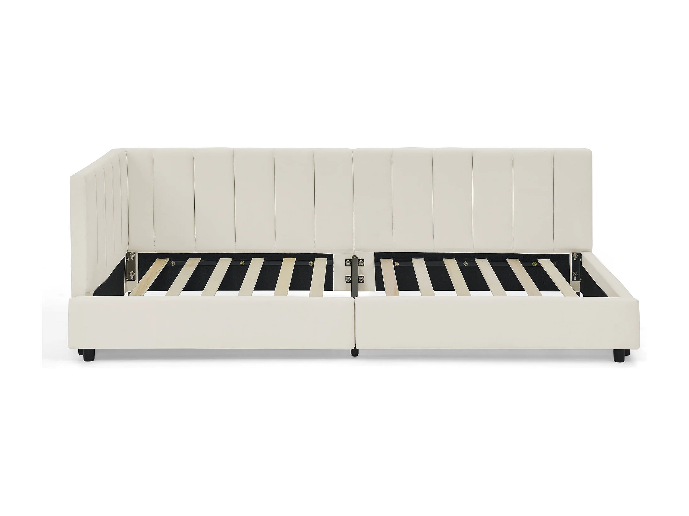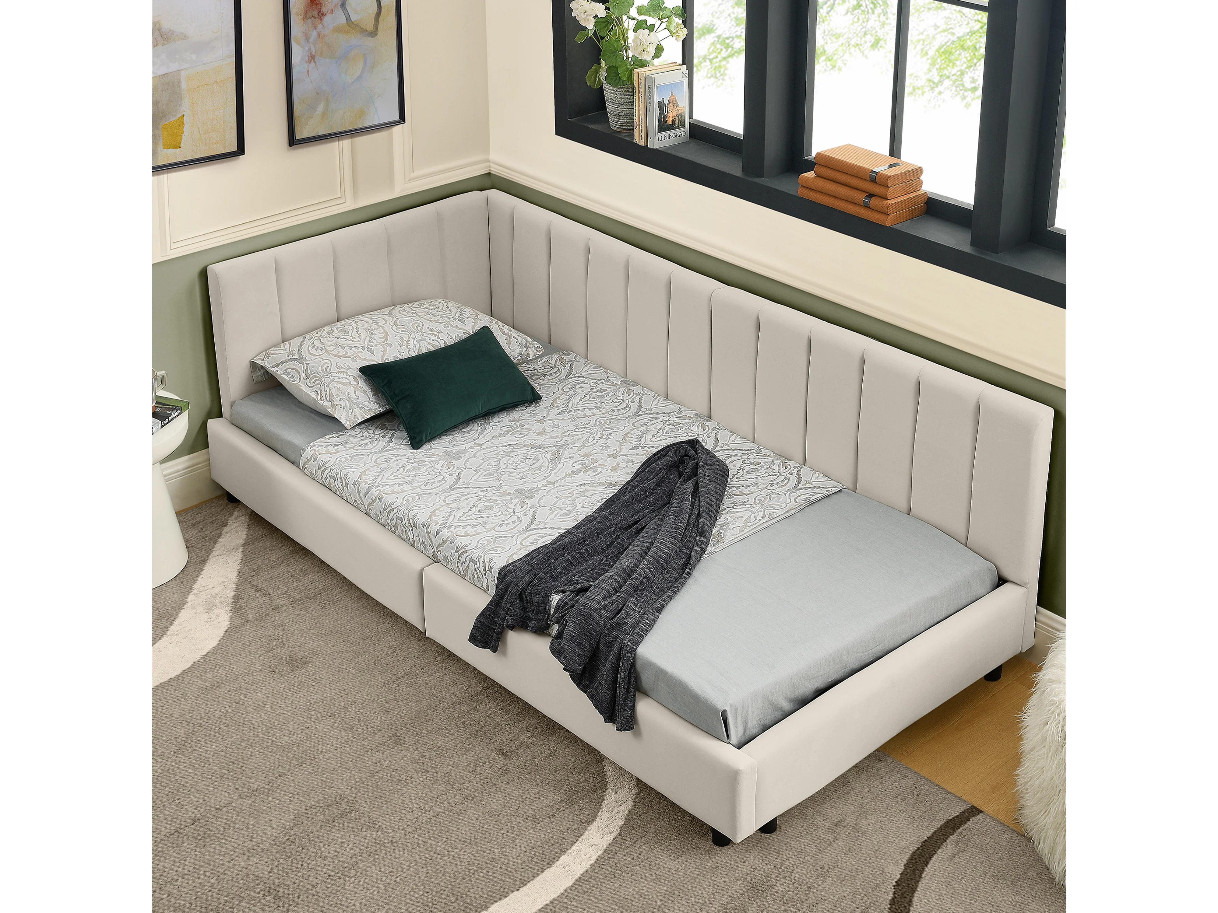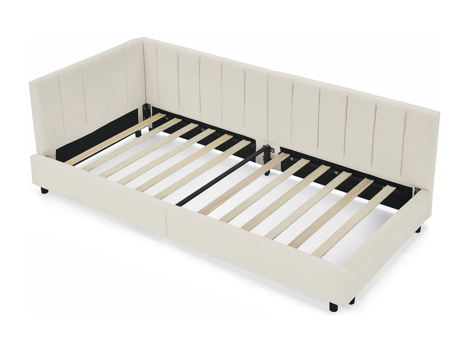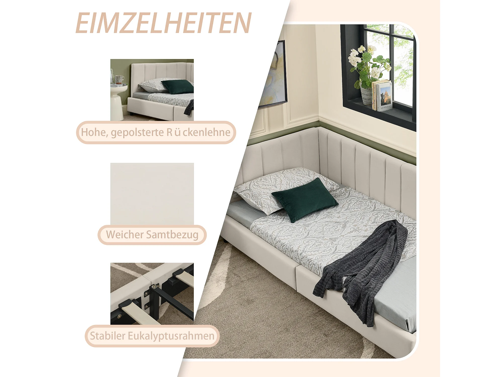 Lit simple 90×200 cm en velours doux, lit enfant avec dossier haut, idéal pour chambre d’enfant ou petit appartement – Beige