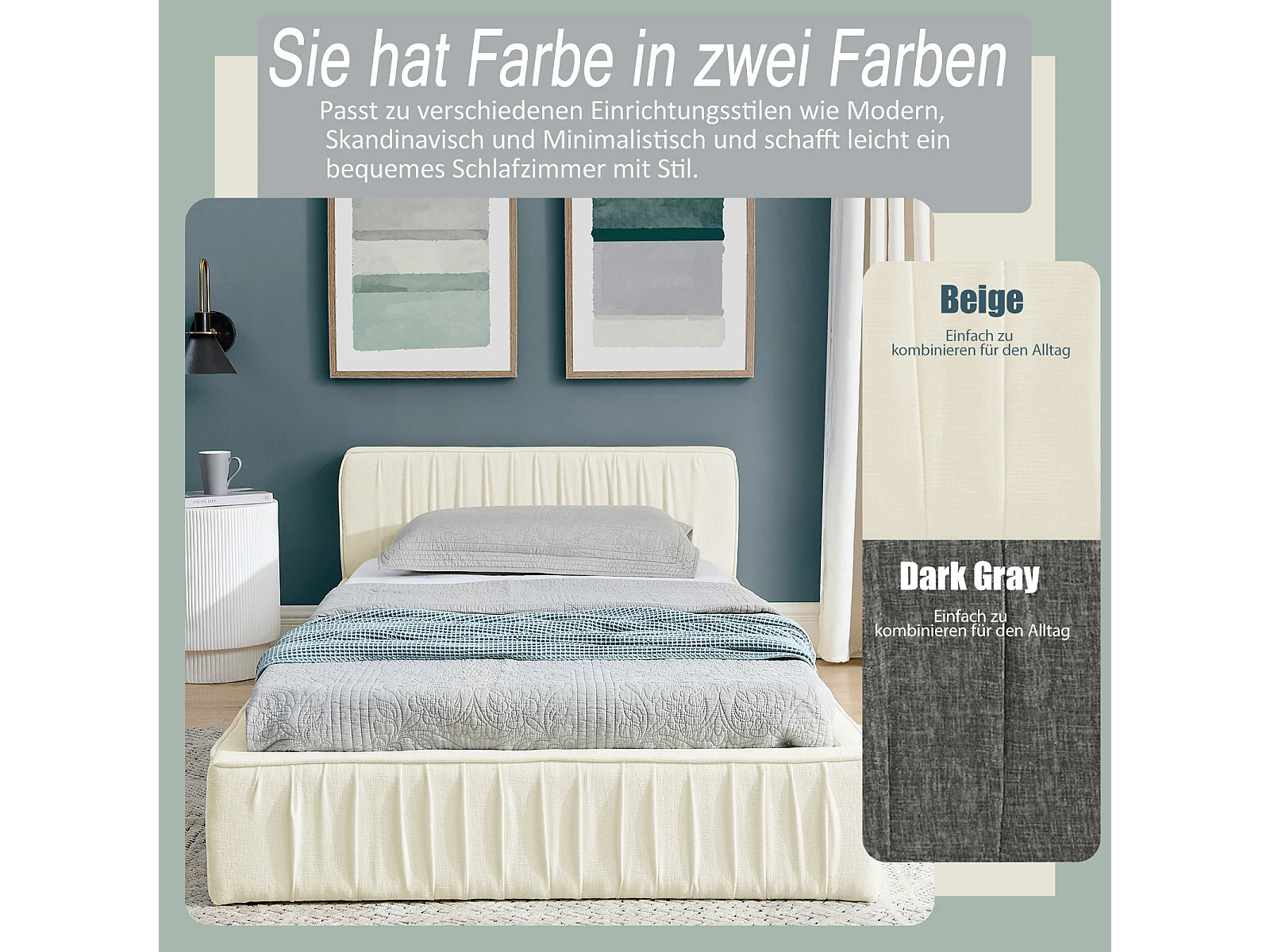 Lit Canapé 90x200 cm, Lit Escamotable pour Enfant, Tête de Lit Réglable, Revêtement Lin Respectueux de la Peau - Beige