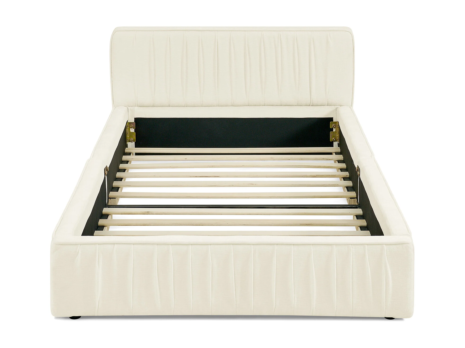 Lit simple 90×200 cm pour enfant, en velours côtelé, structure en eucalyptus écologique et métal, montage facile – Beige