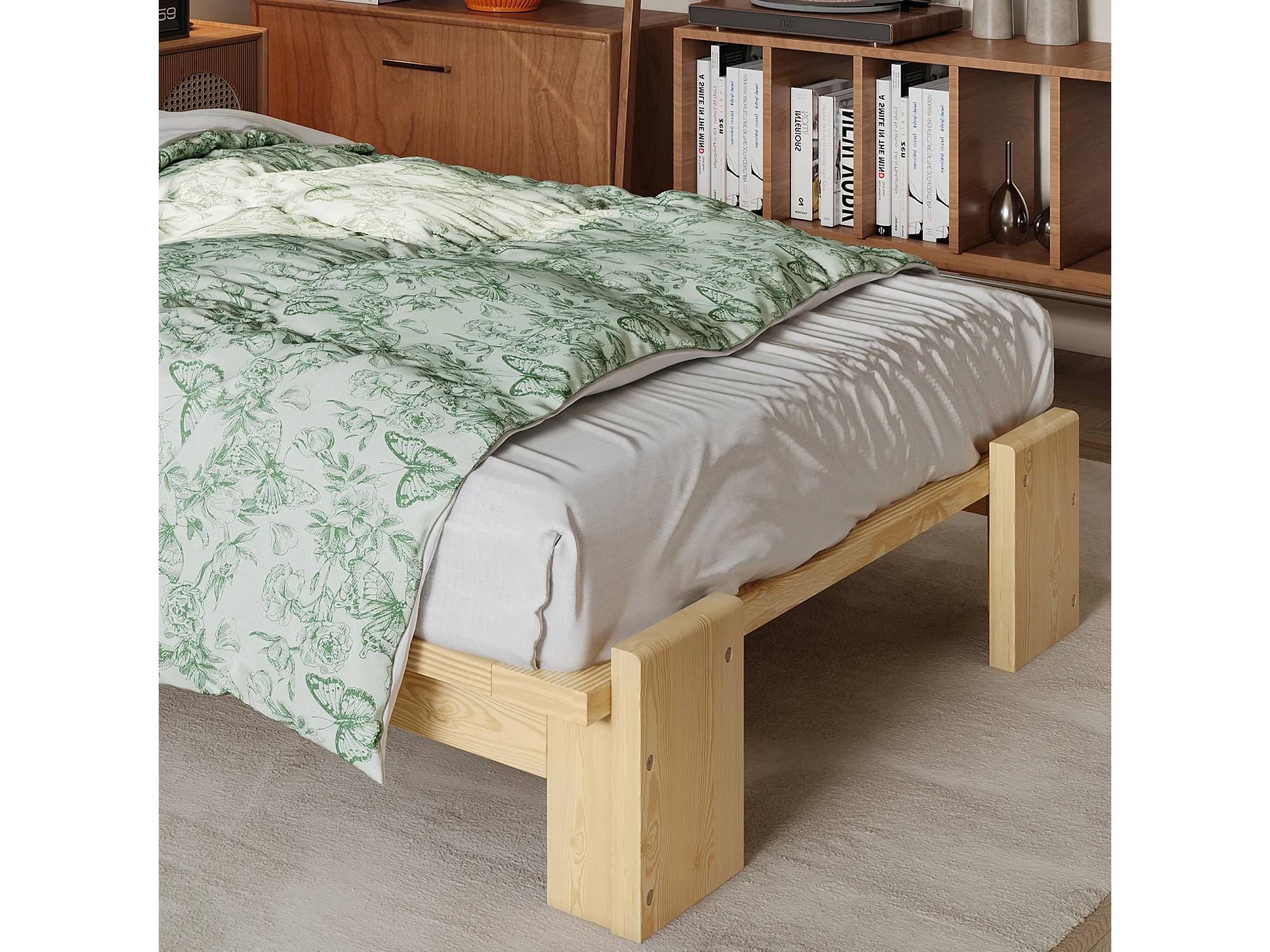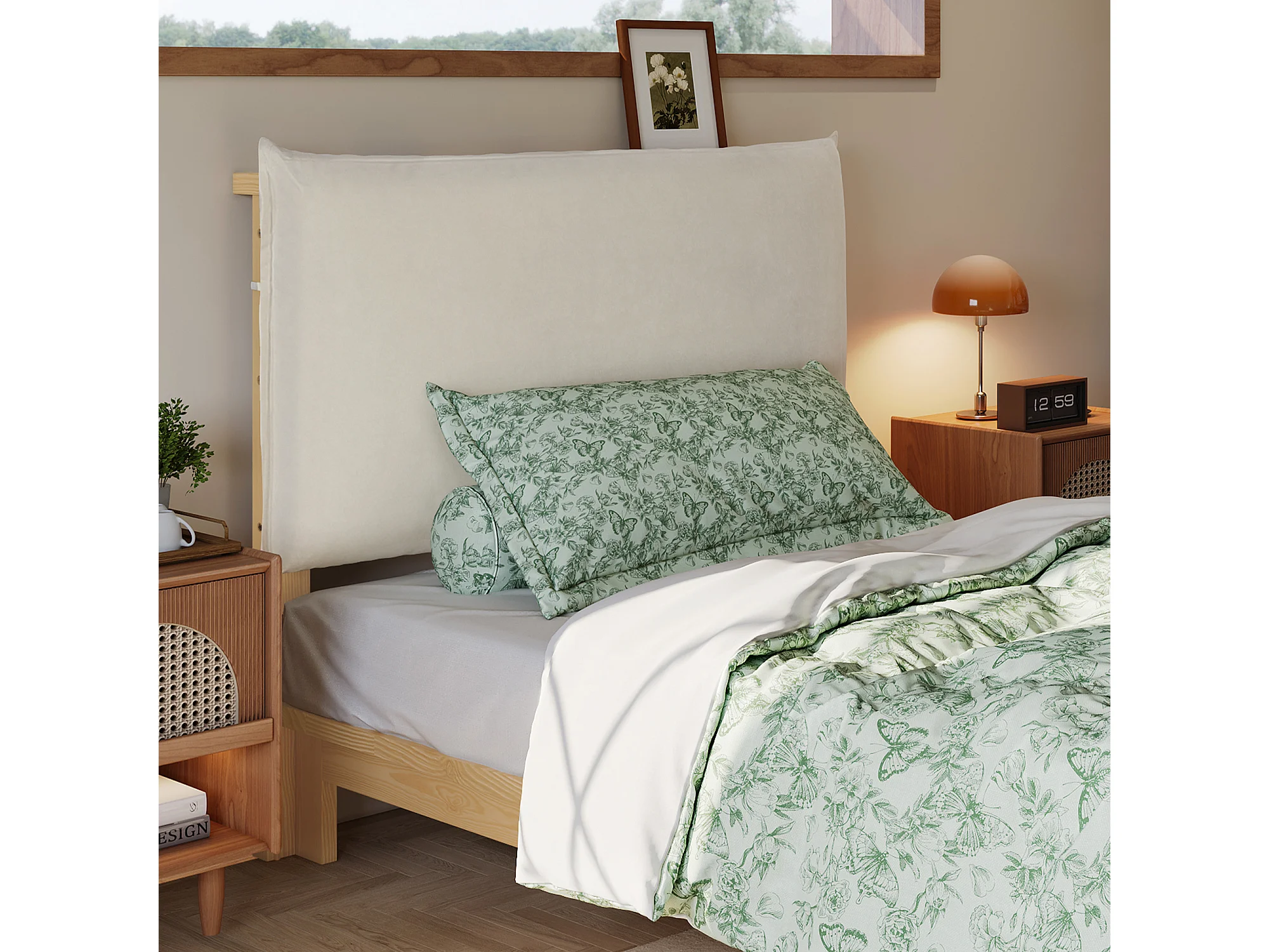 Lit simple 90x200cm - tête de lit rembourrée amovible - bois massif + éponge + contreplaqué - Naturel (matelas non inclus)