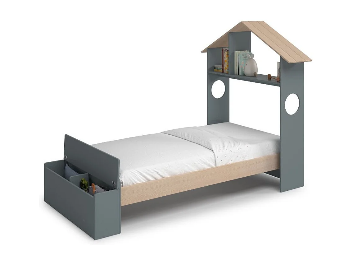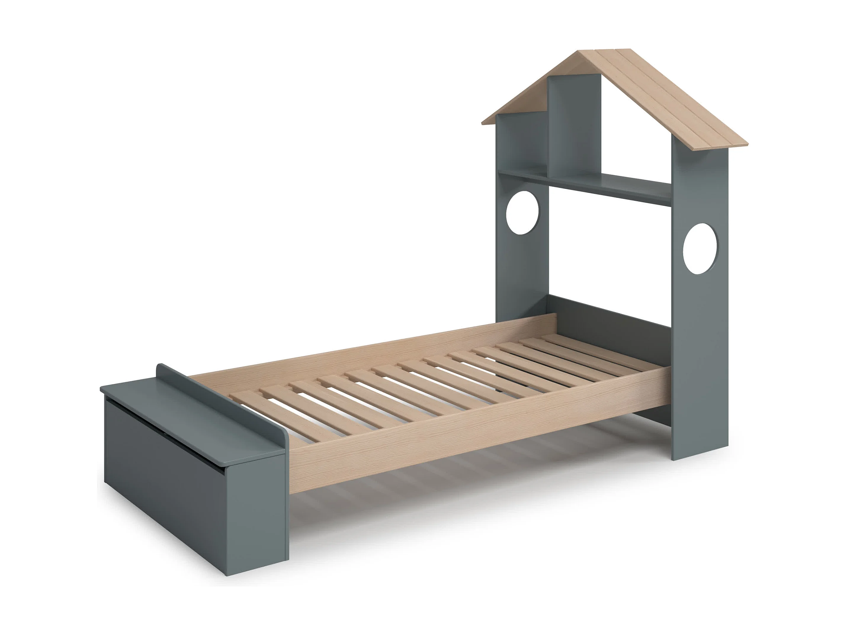 Lit simple avec étagère et coffre de rangement 216,5x153 cm