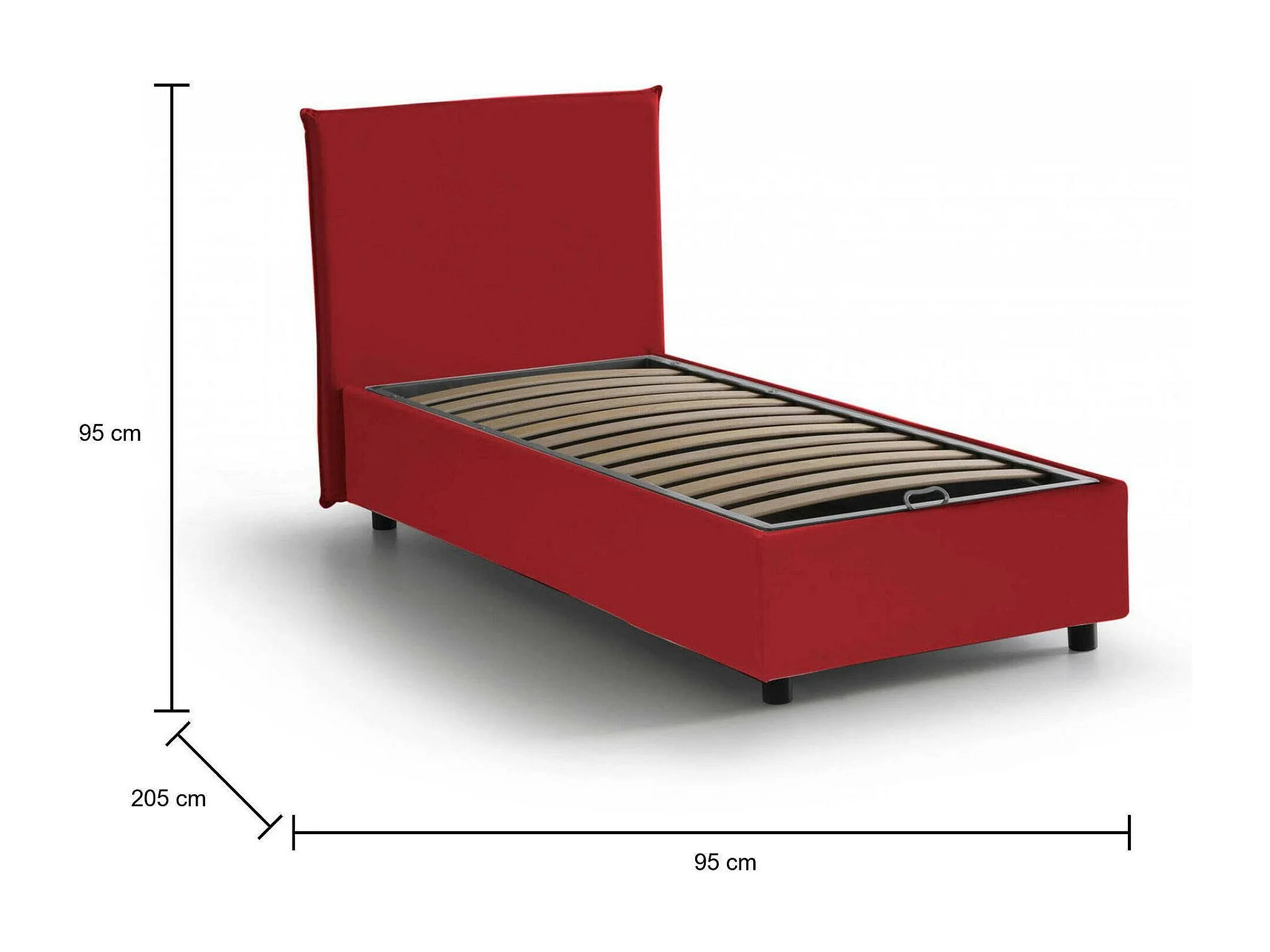 Lit simple Darut, Lit coffre avec revêtement en tissu, 100% Made in Italy, Ouverture latérale, adapté pour matelas 80x190 cm, Rouge