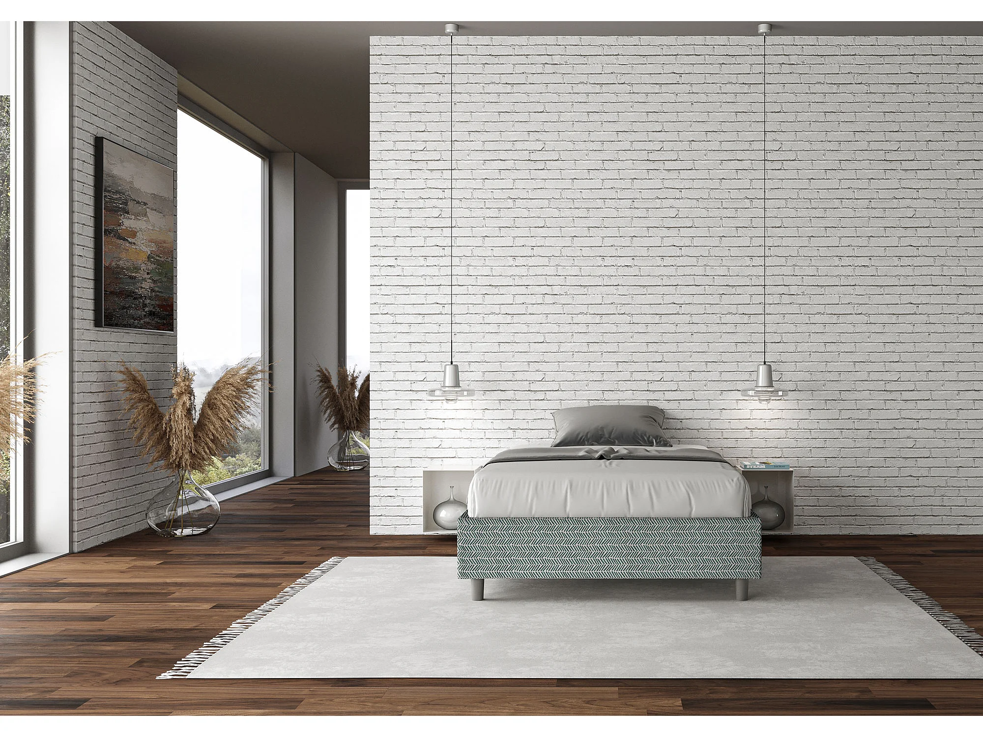 Cadre de lit 1 place et demi avec sommier rembourré 120x210 tissu Aragona 7 bleu clair Azelia
