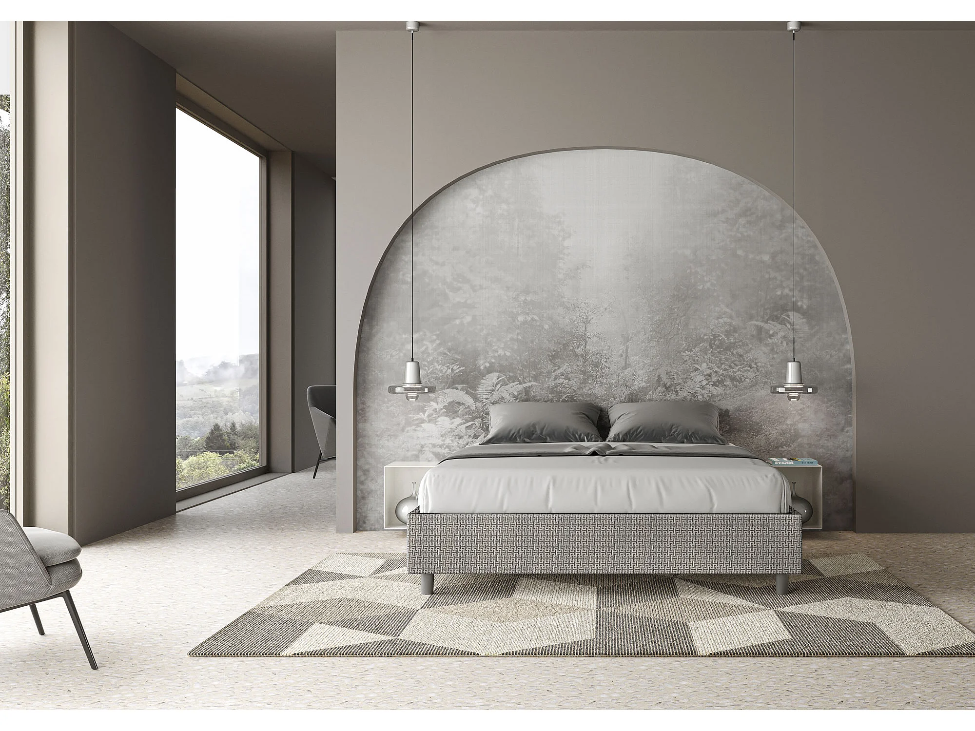 Lit sans sommier rembourré 160x200 tissu Labirinto 02 gris Azelia