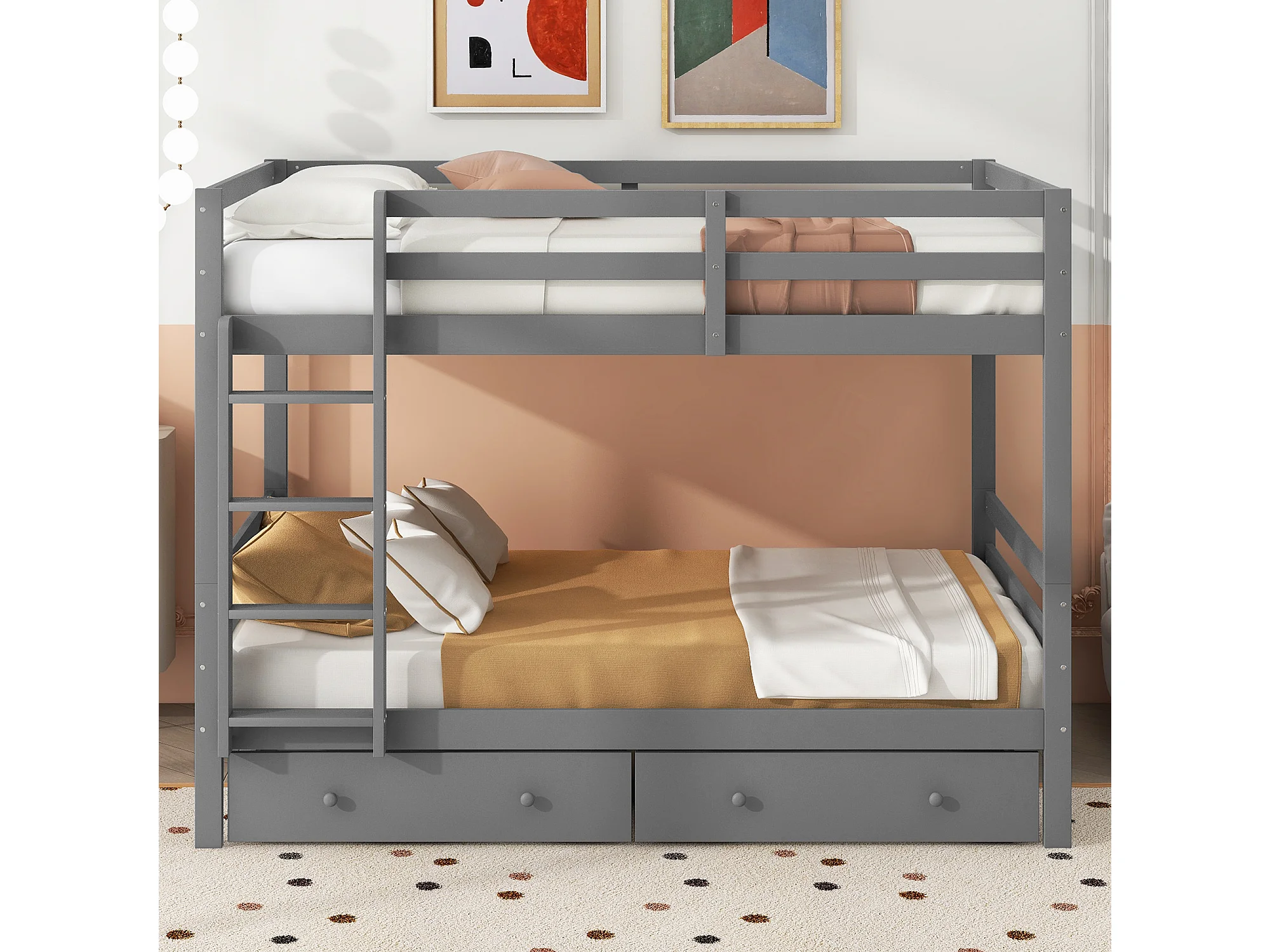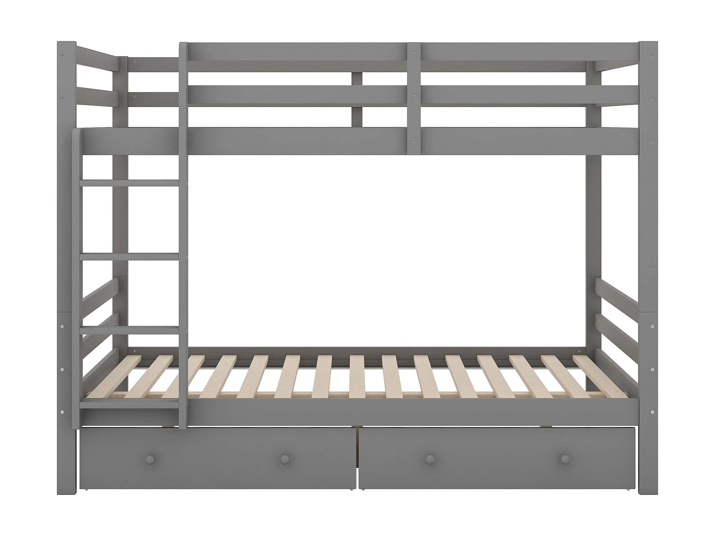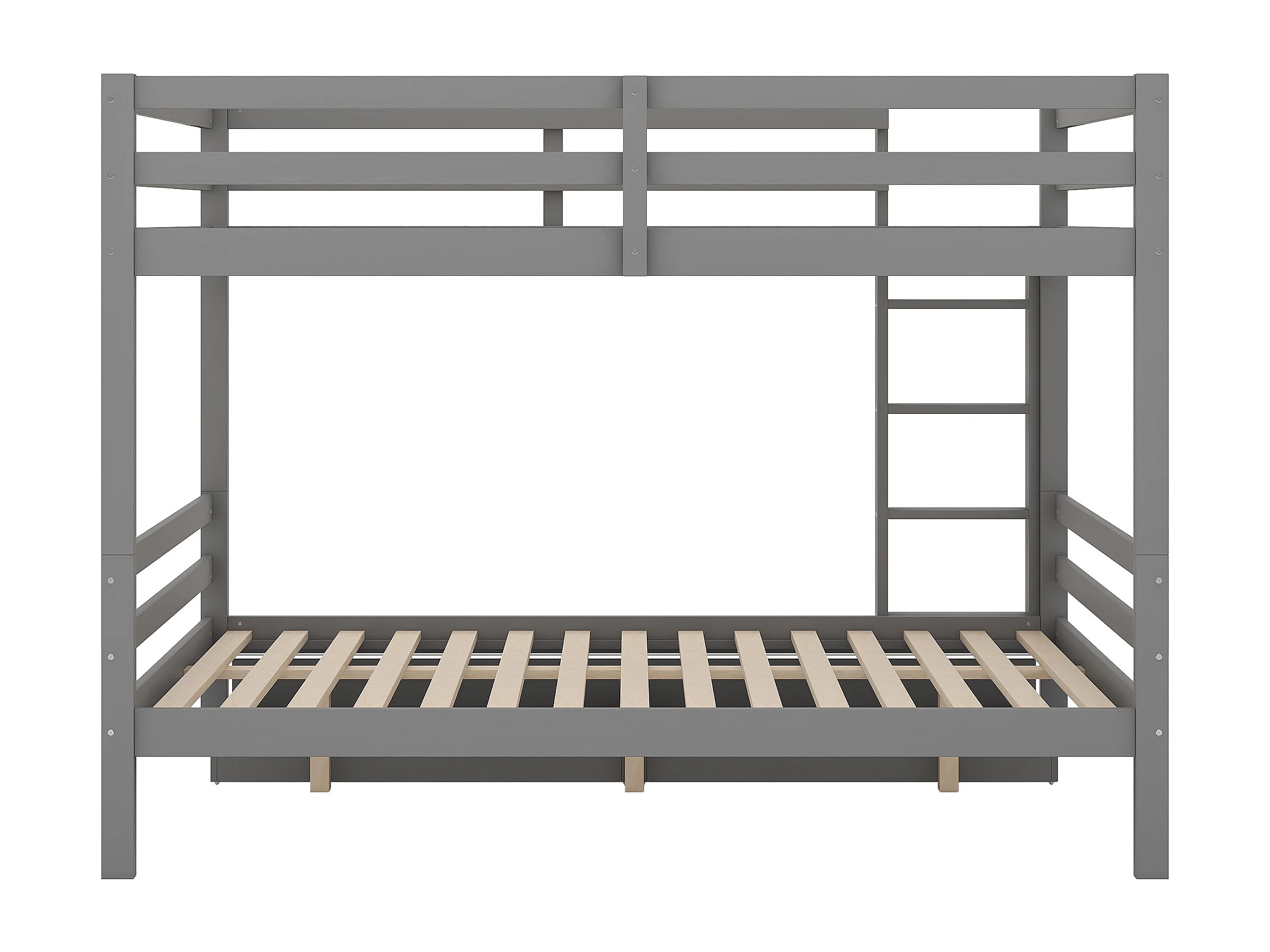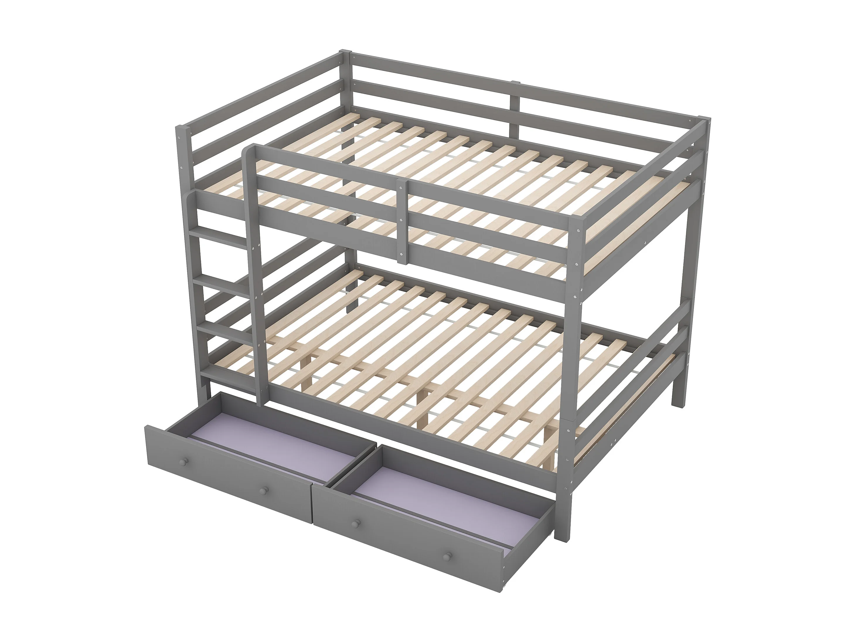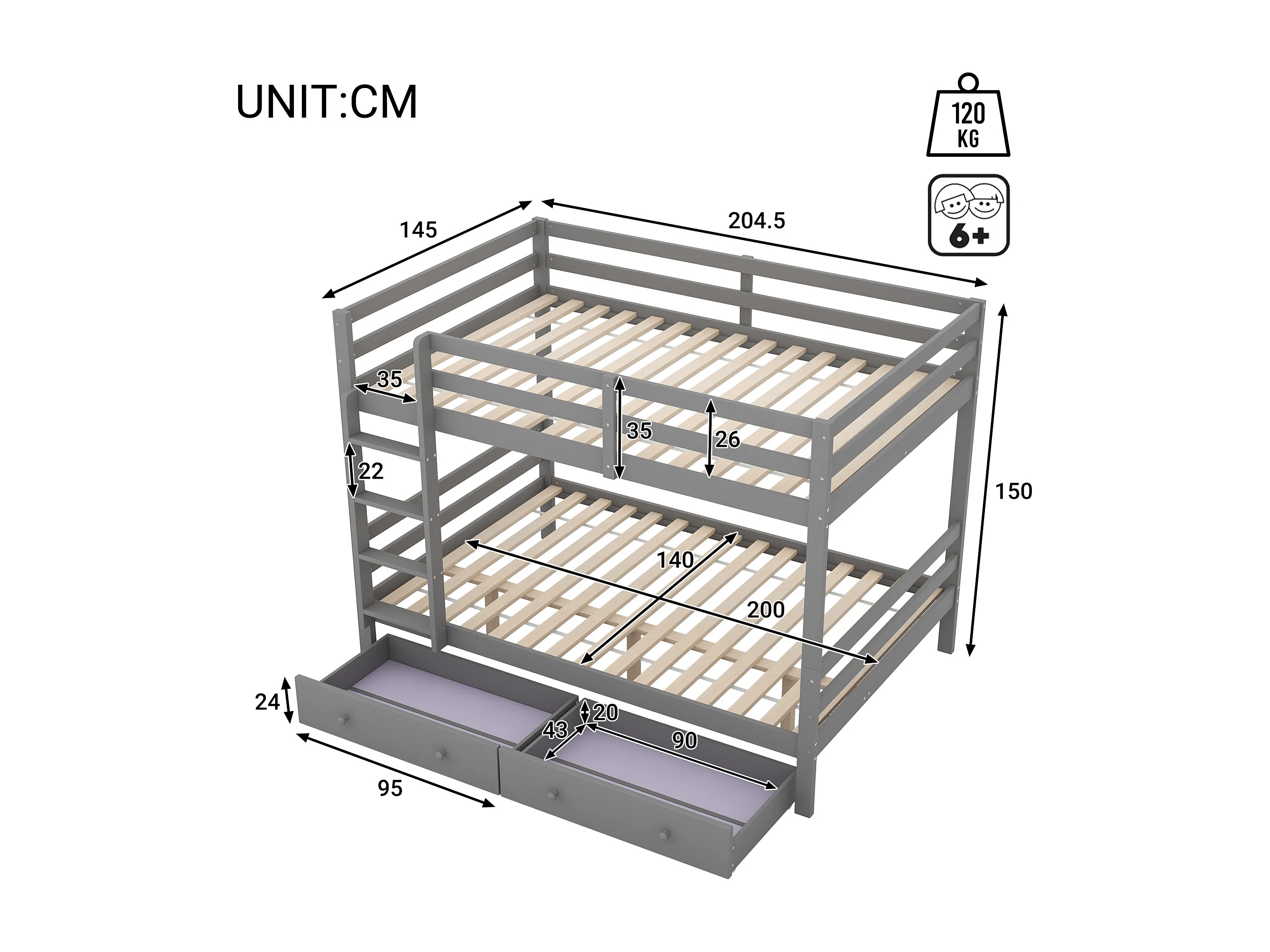 Lit superposé 140x200 cm avec 2 tiroirs - protection anti-chute - bois - gris (sans matelas)