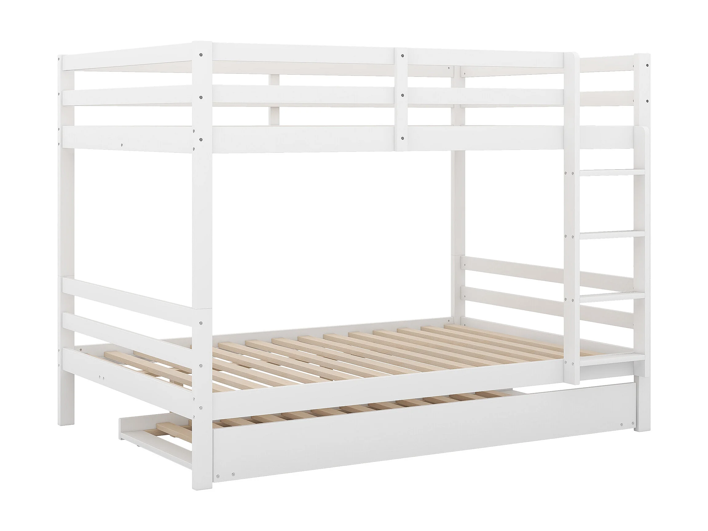 Lit superposé 140x200 cm avec lit gigogne - protection anti-chute - bois - blanc (sans matelas)