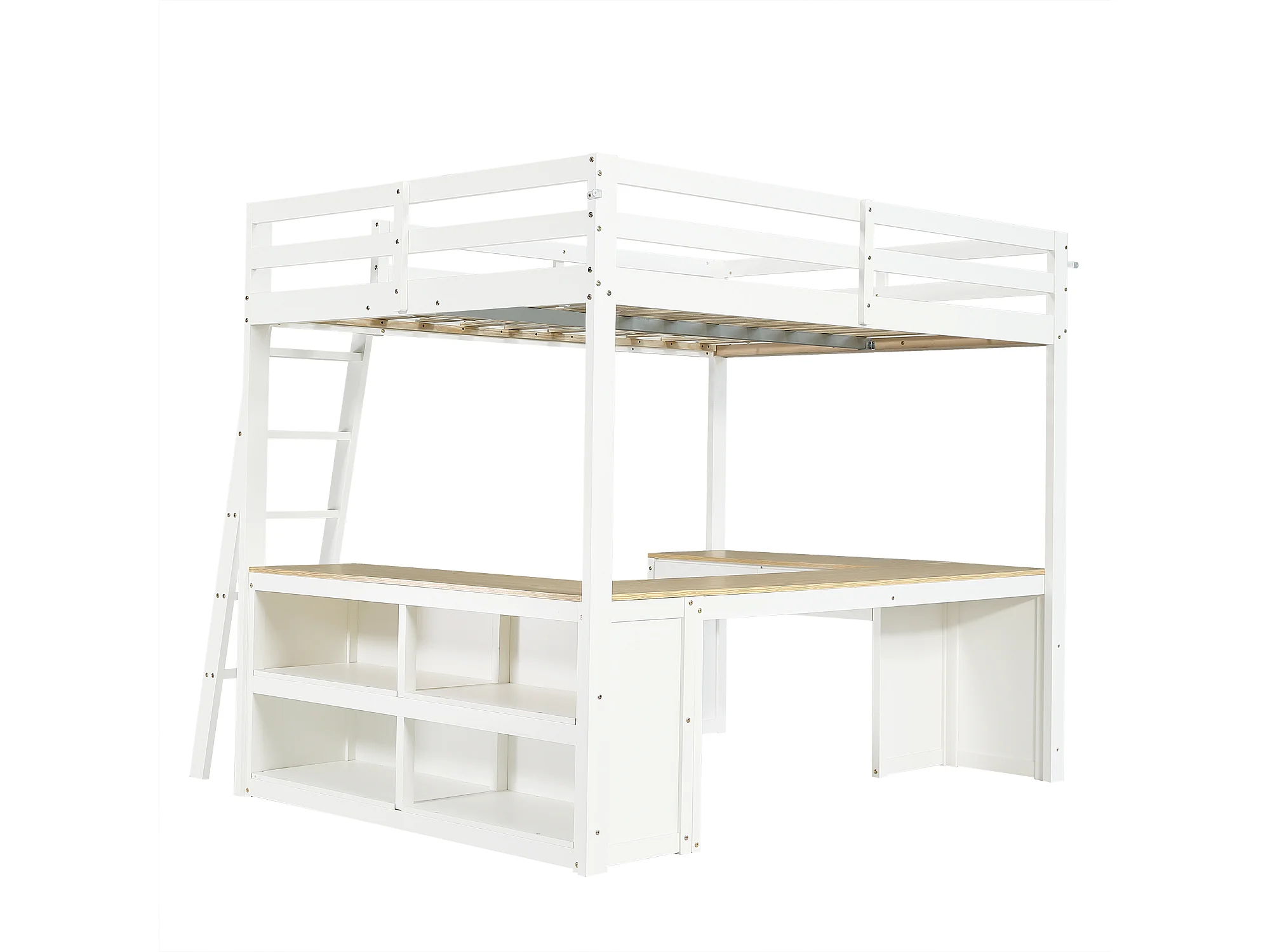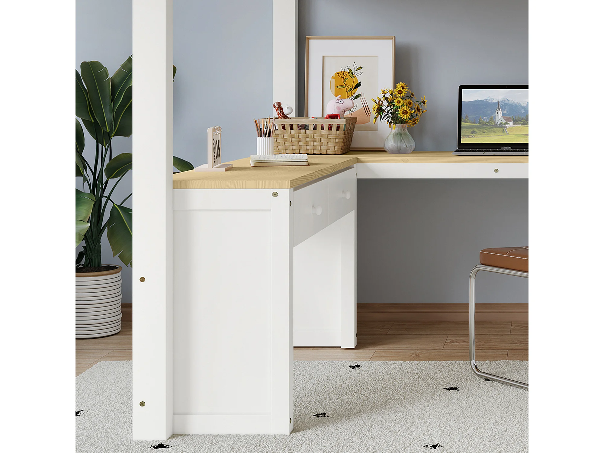 Lit superposé 140x200cm avec Deux tiroirs et étagères enblanc pour enfants et adolescents