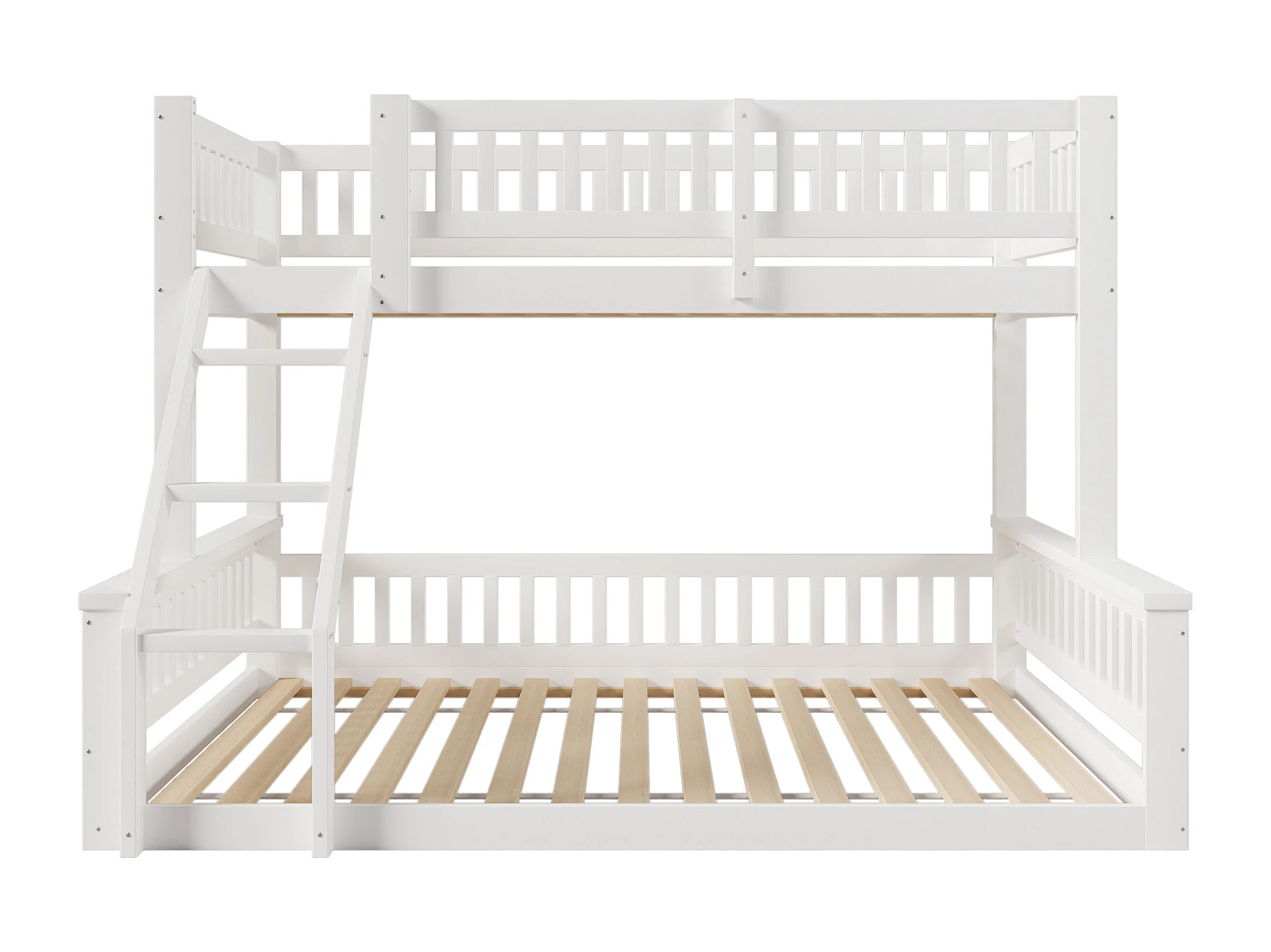Lit superposé 90/140x200 cm - Lit enfant avec échelle et barrière, sommier à lattes - blanc - sans matelas