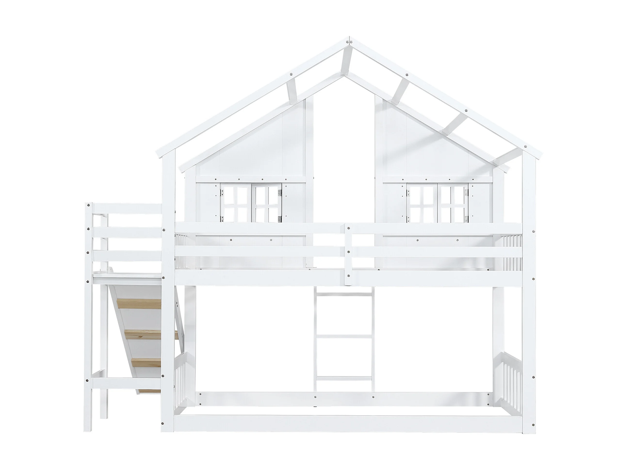Lit superposé, 90 x 200 cm, avec échelle, sommier à lattes et protection anti-chute, bois, blanc