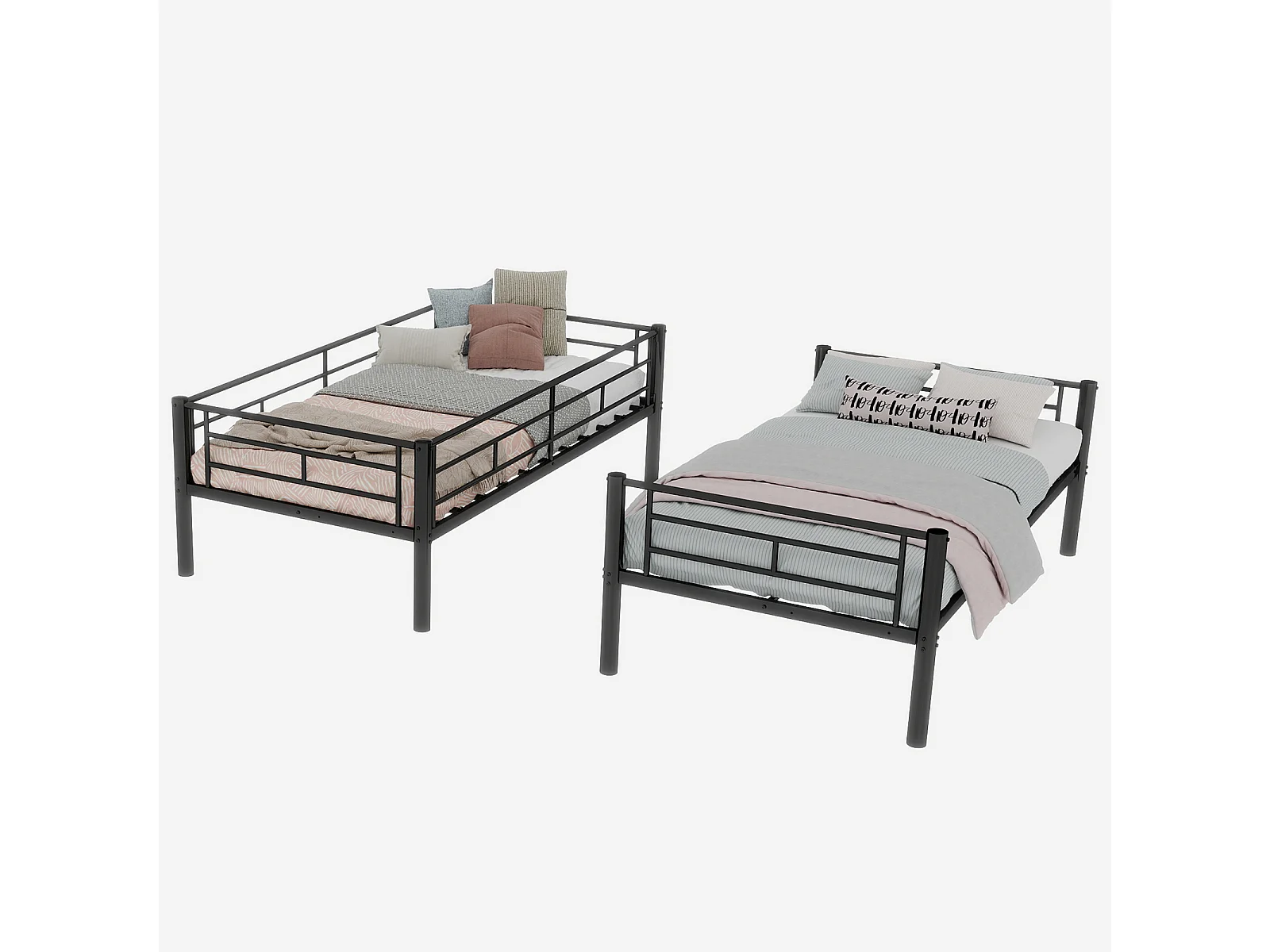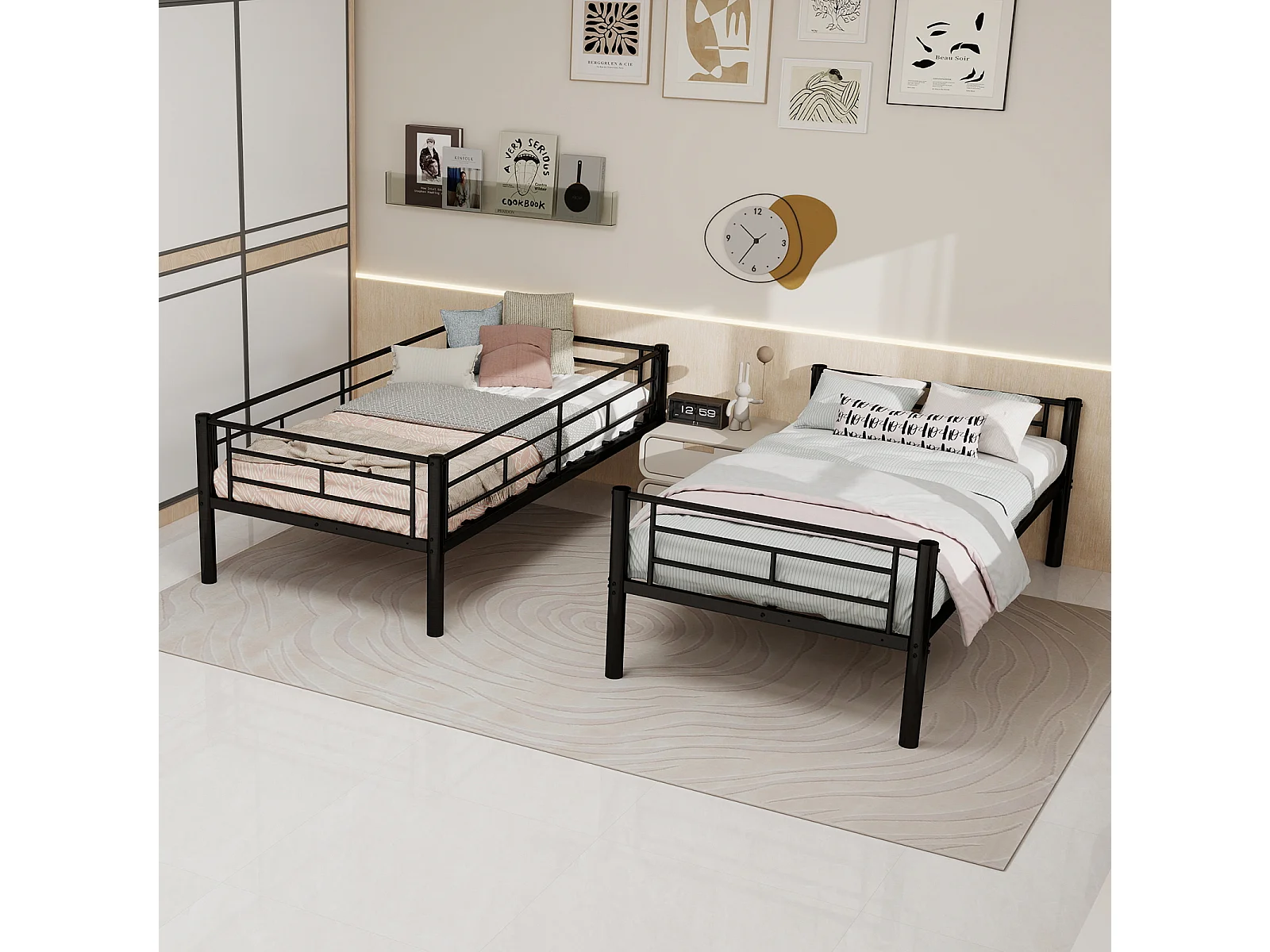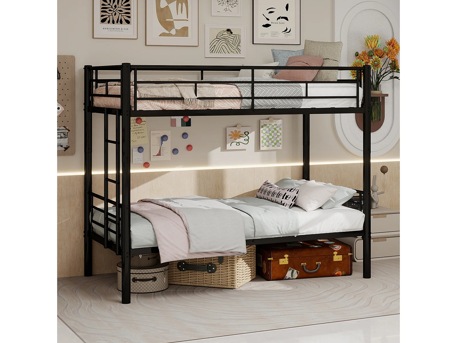 Lit superposé 90x190 cm convertible en 2 lits - Lit enfant en métal noir