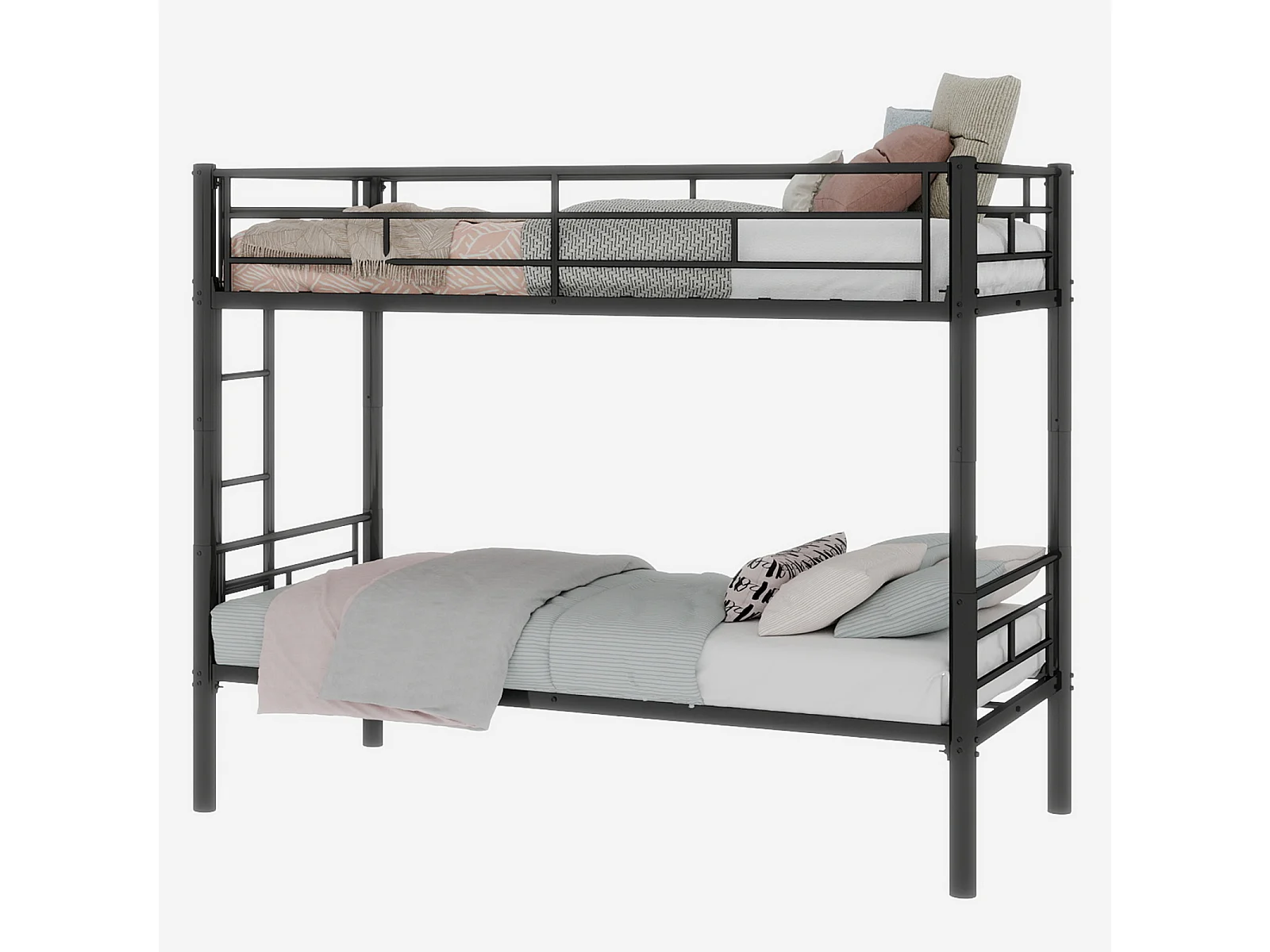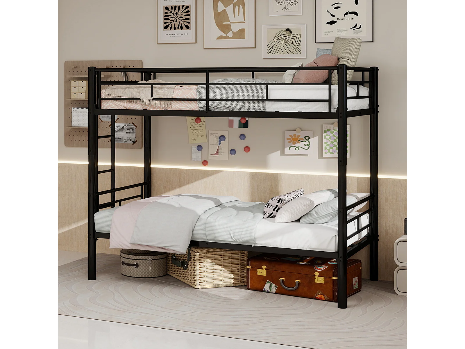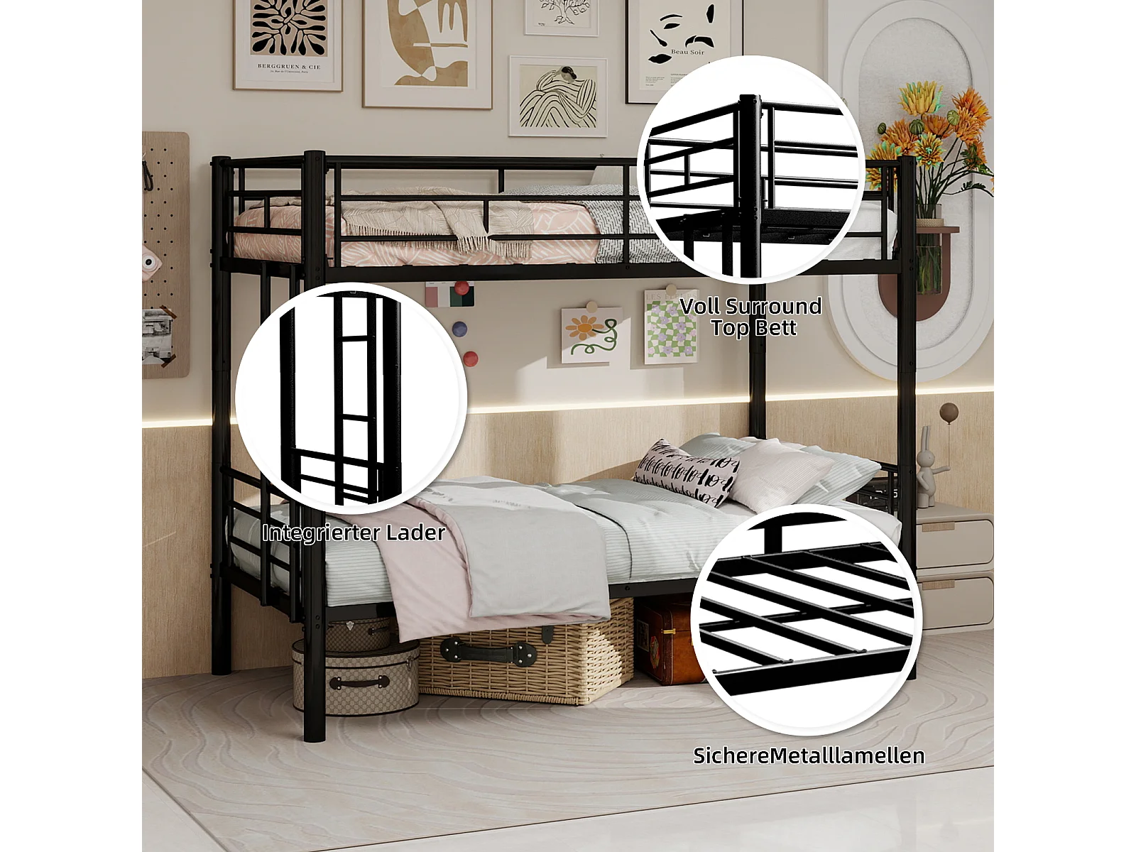 Lit superposé 90x190 cm convertible en 2 lits - Lit enfant en métal noir