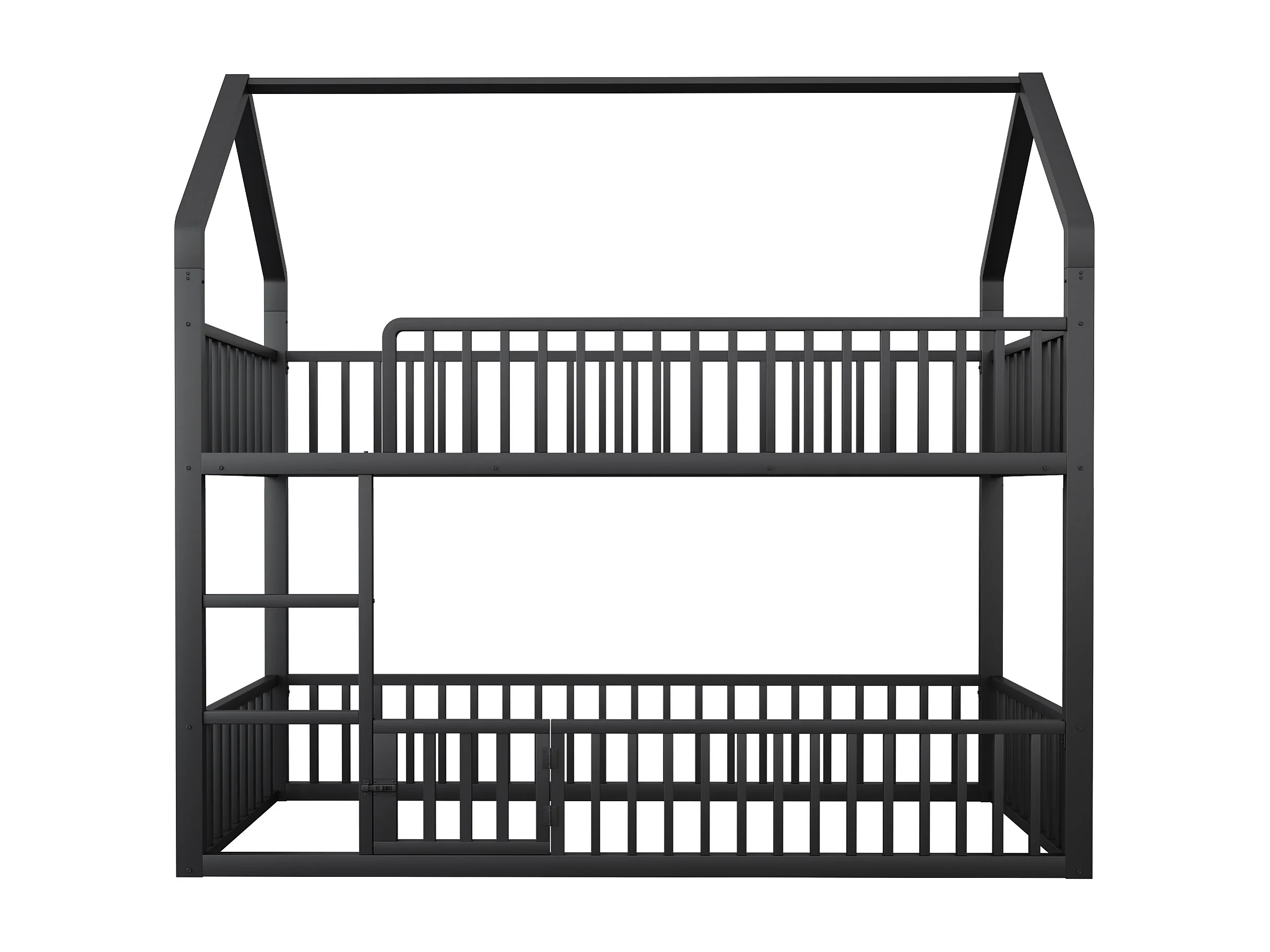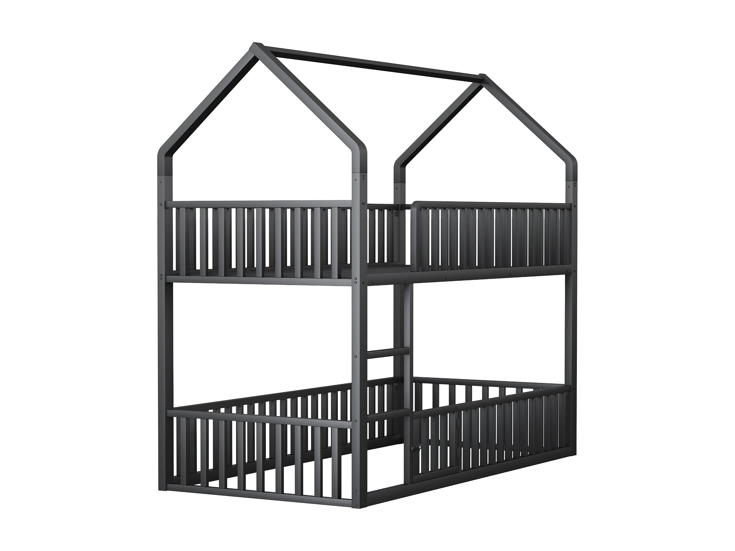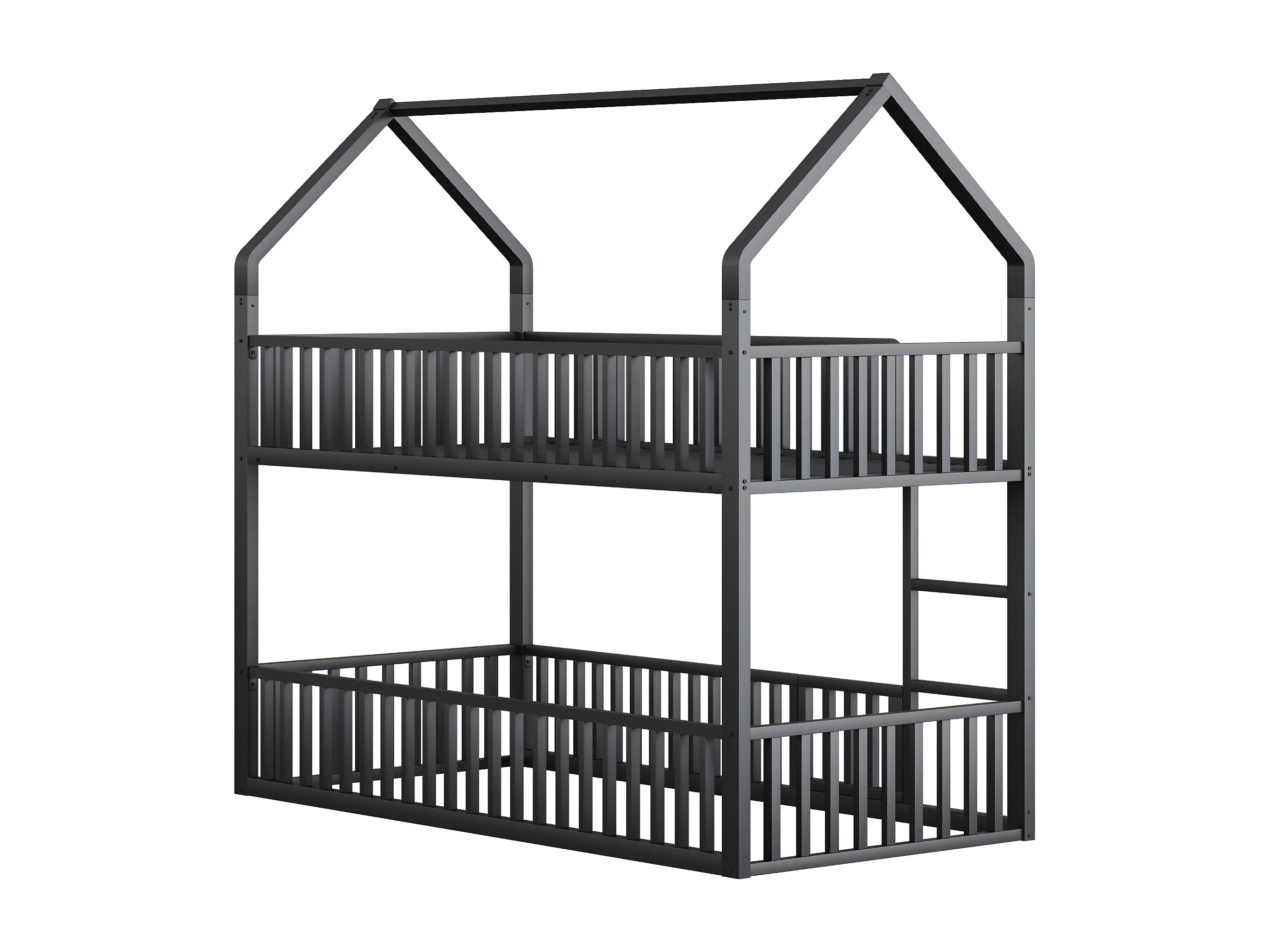 Lit superposé 90x200cm avec eacalier, 1 sommier, Lit cabane de style simple, en métal noir, sans matalas