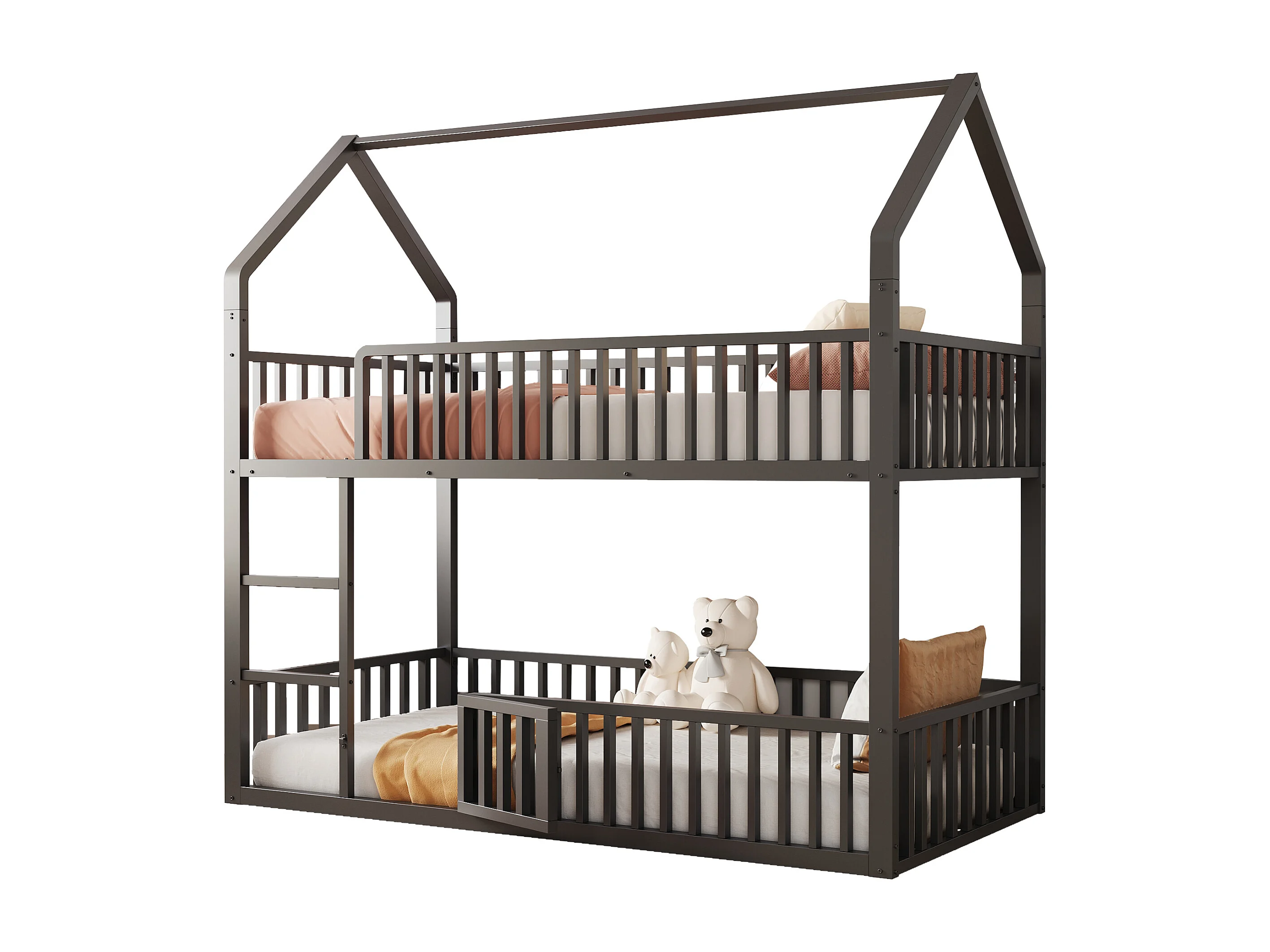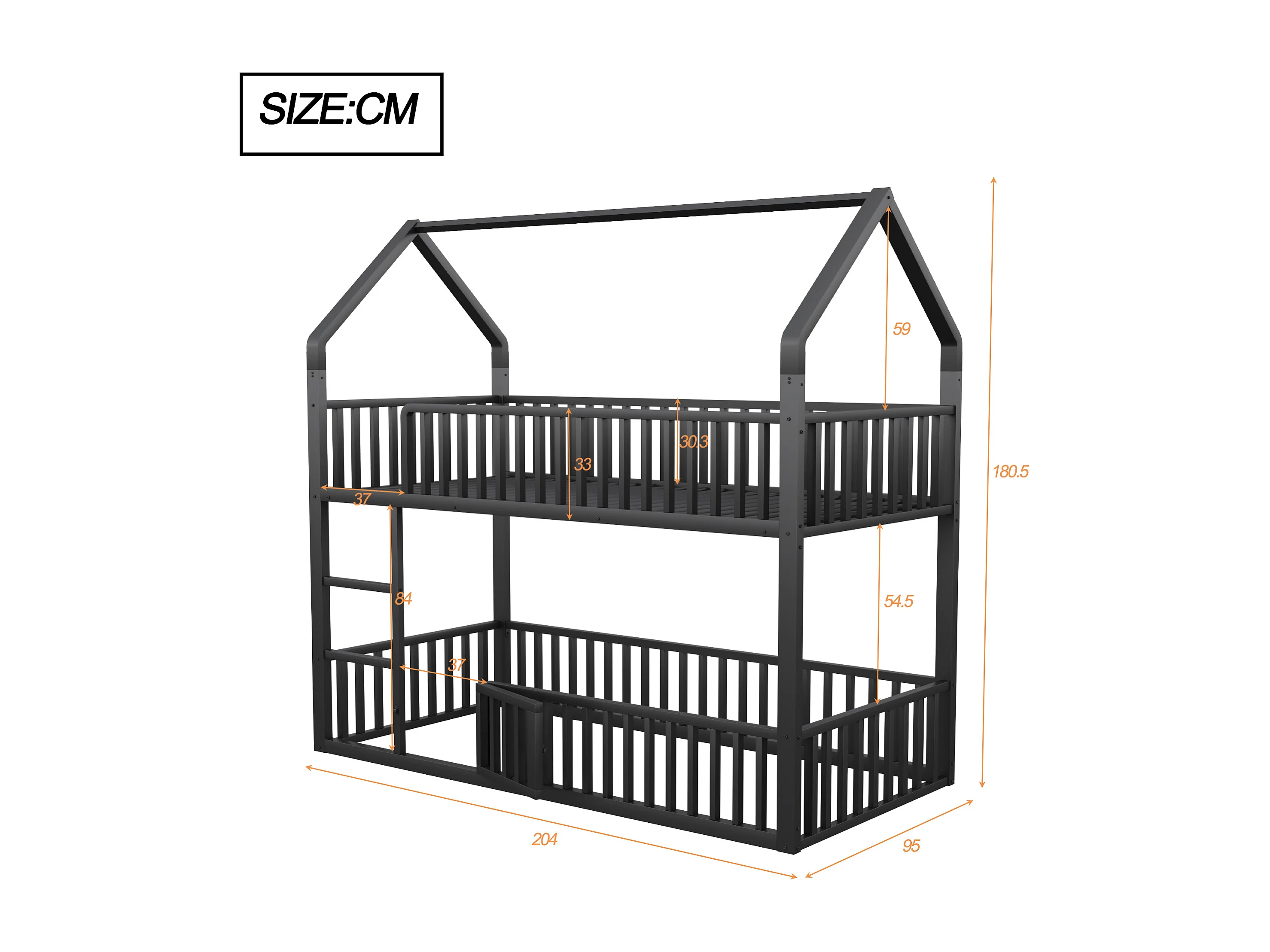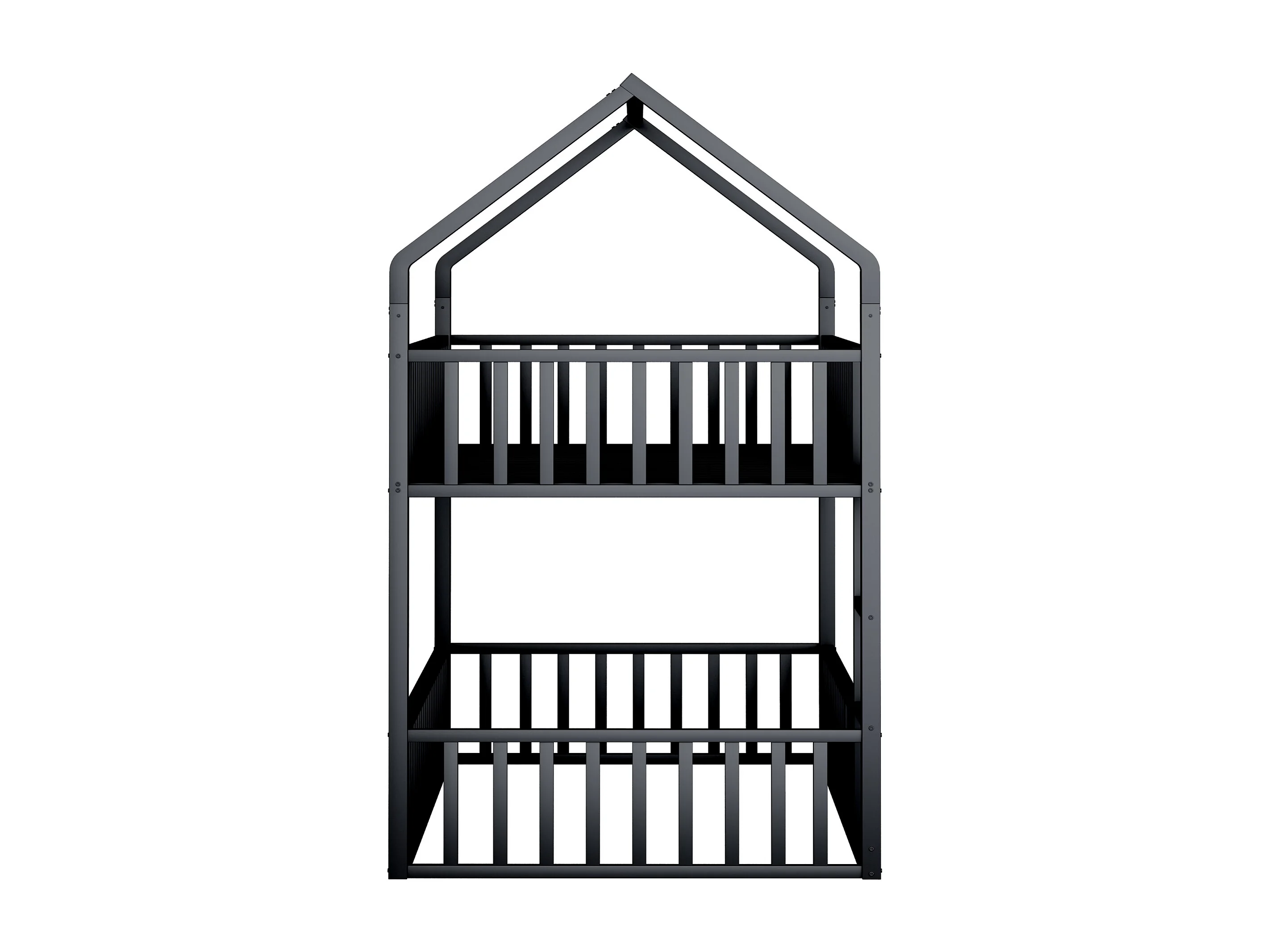 Lit superposé 90x200cm avec eacalier, 1 sommier, Lit cabane de style simple, en métal noir, sans matalas