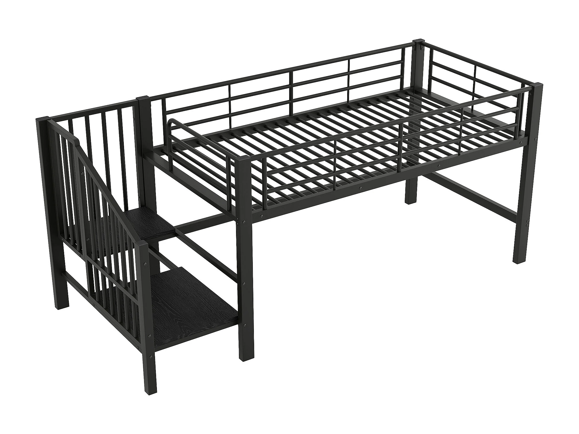 Lit superposé 90x200cm avec Échelle de rangement Matériaux MDF en noir pour enfants et adolescents