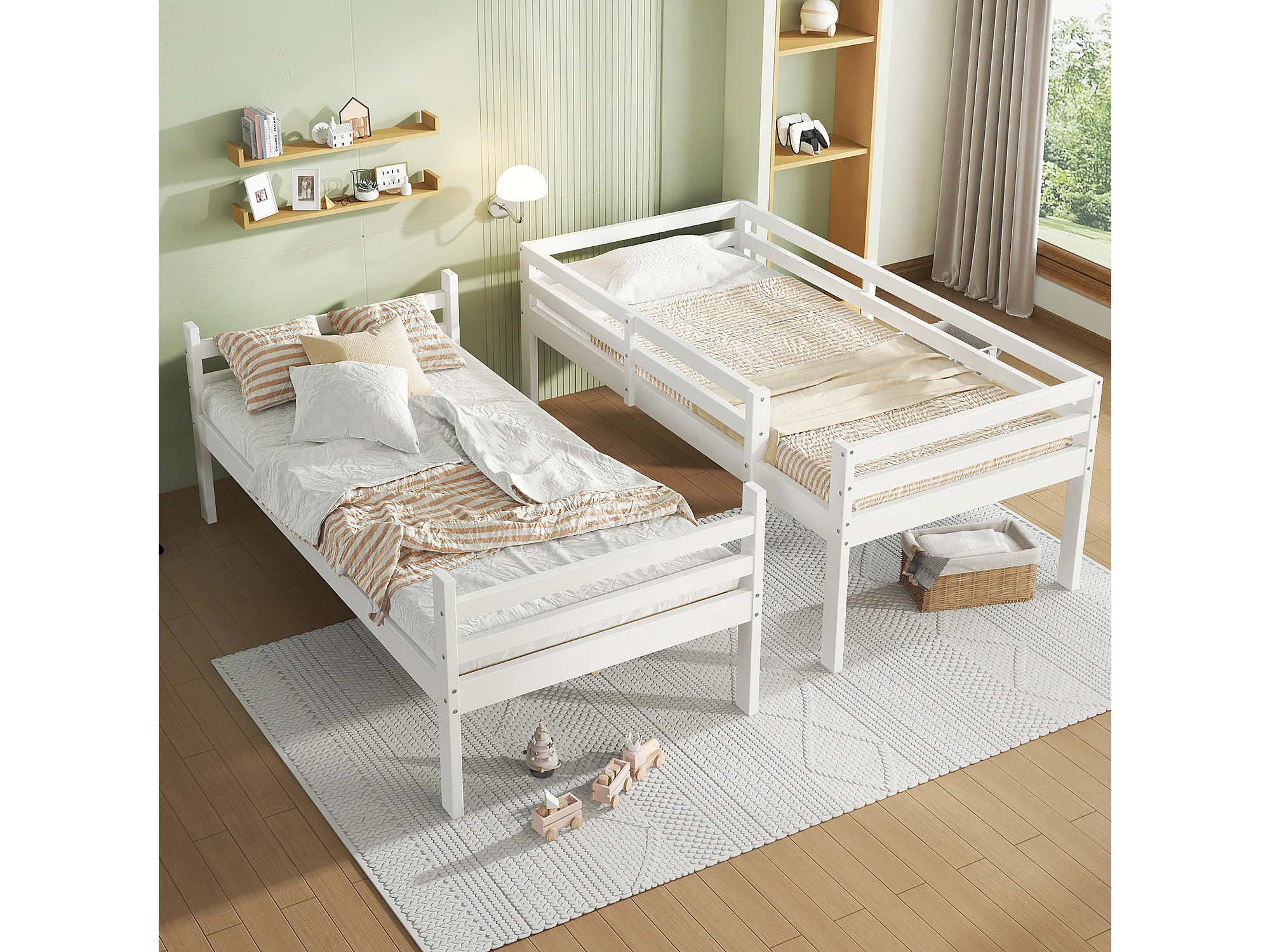 Lit superposé 90x200cm avec échelle et barrières de sécurité Structure en pin en blanc pour enfants et adolescents