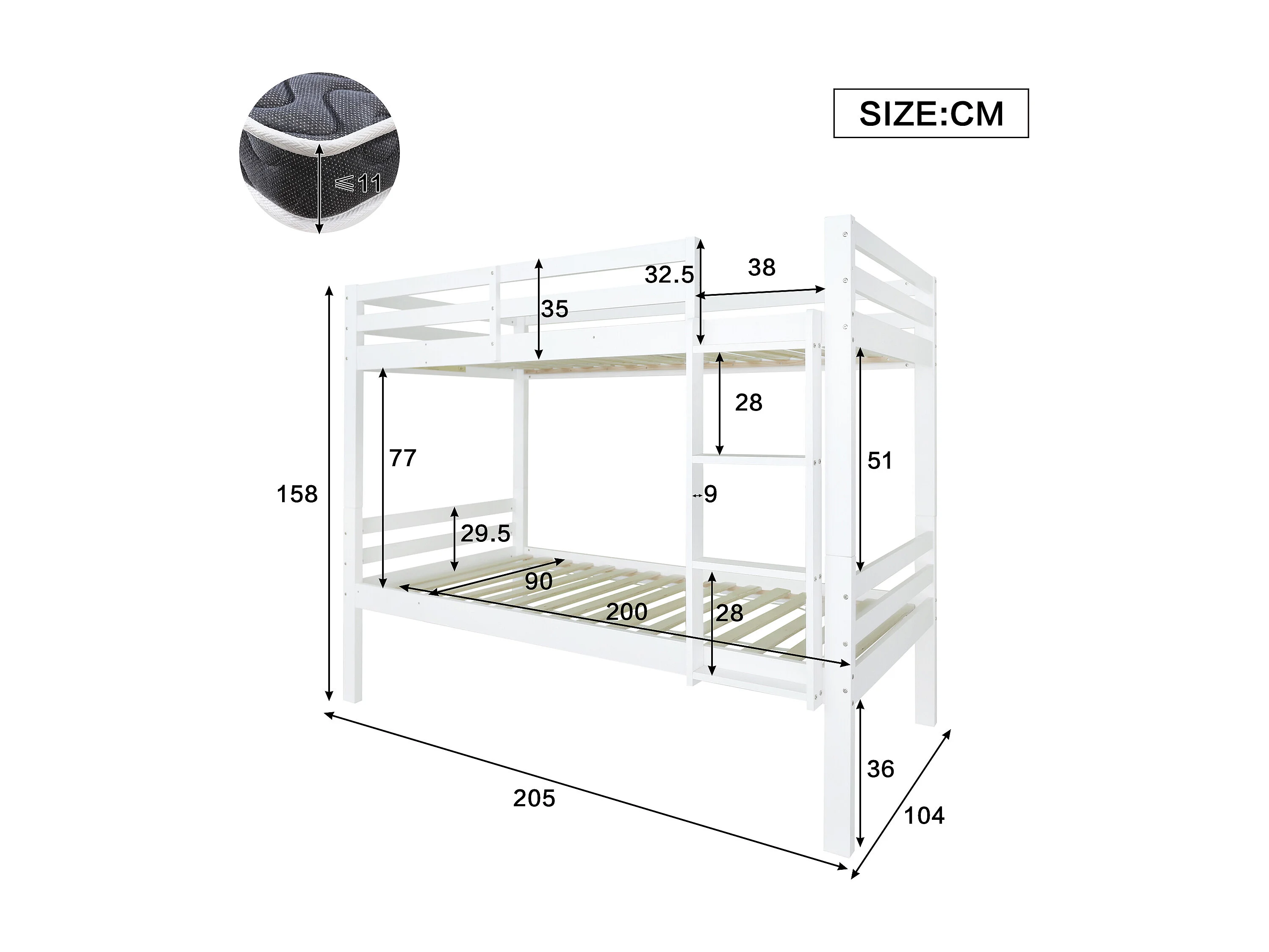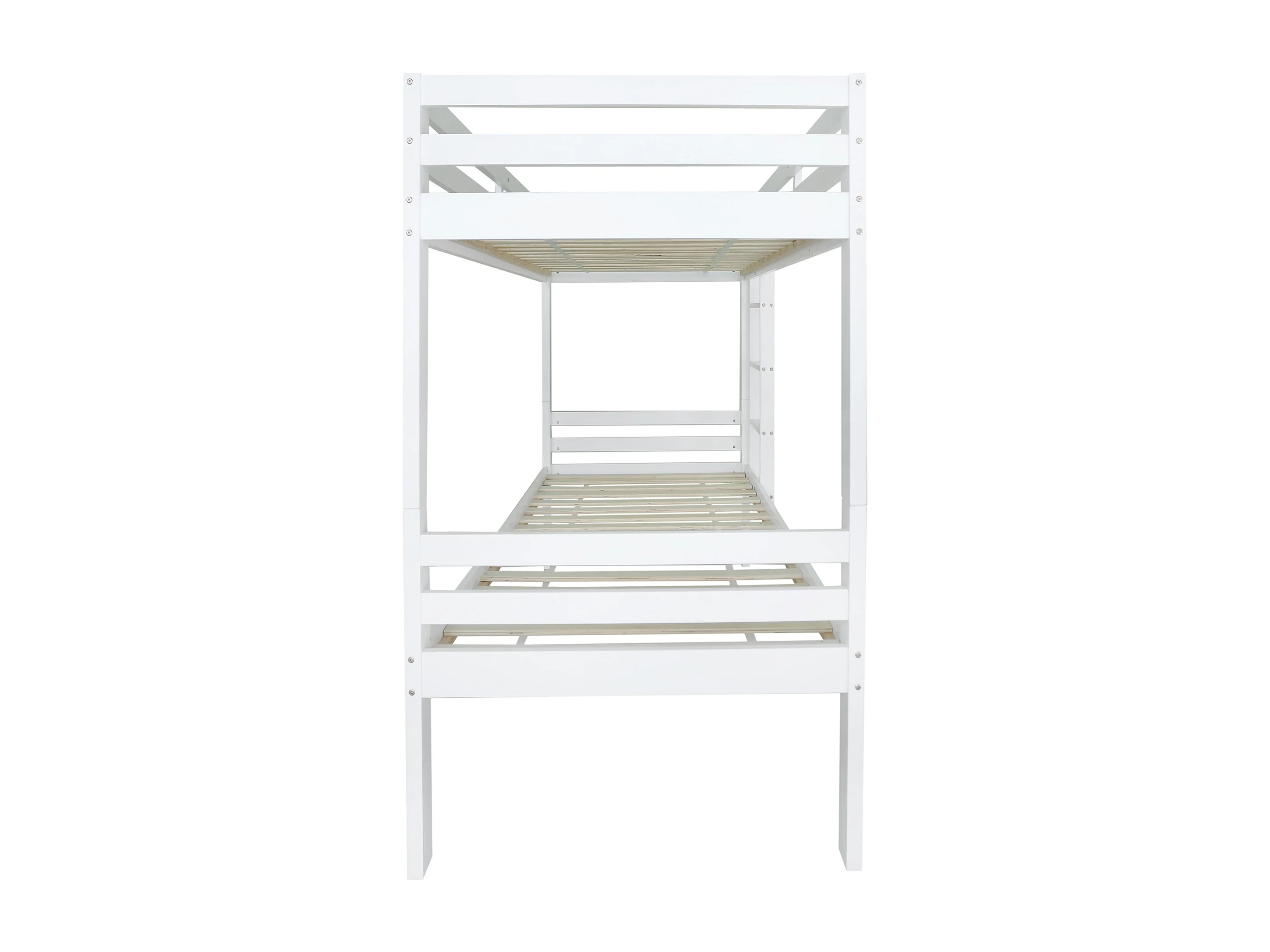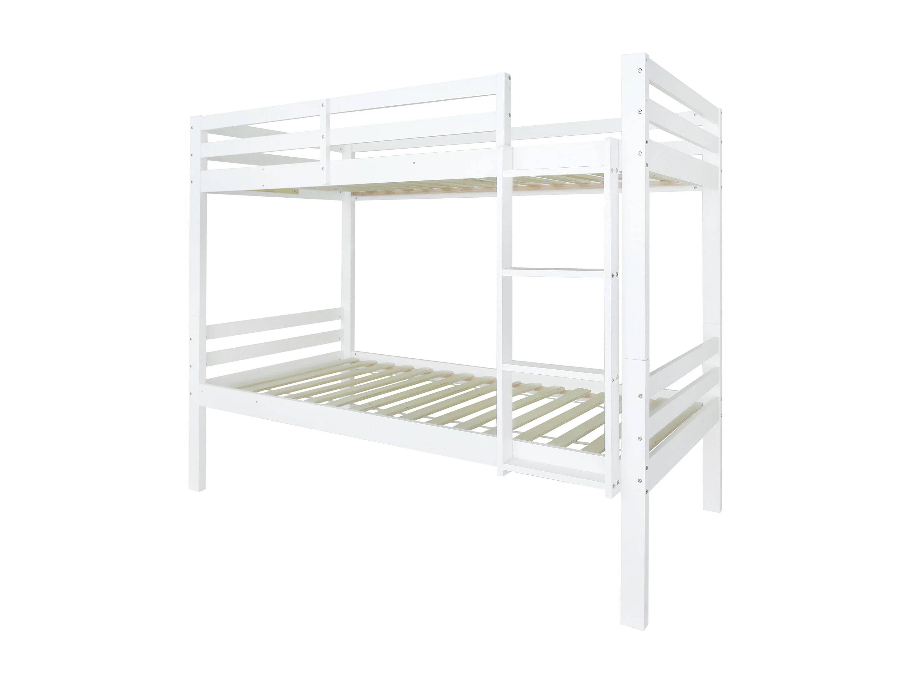 Lit superposé enfant 90x200 cm avec échelle 3 marches et barrière, séparable en 2 lits simples, bois, blanc (Sans matelas)