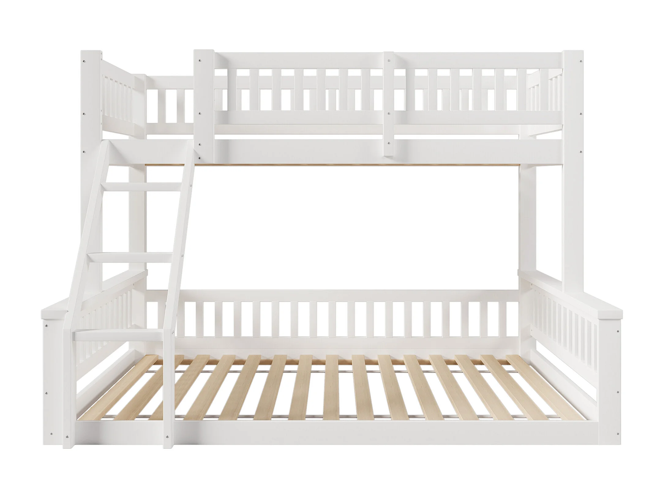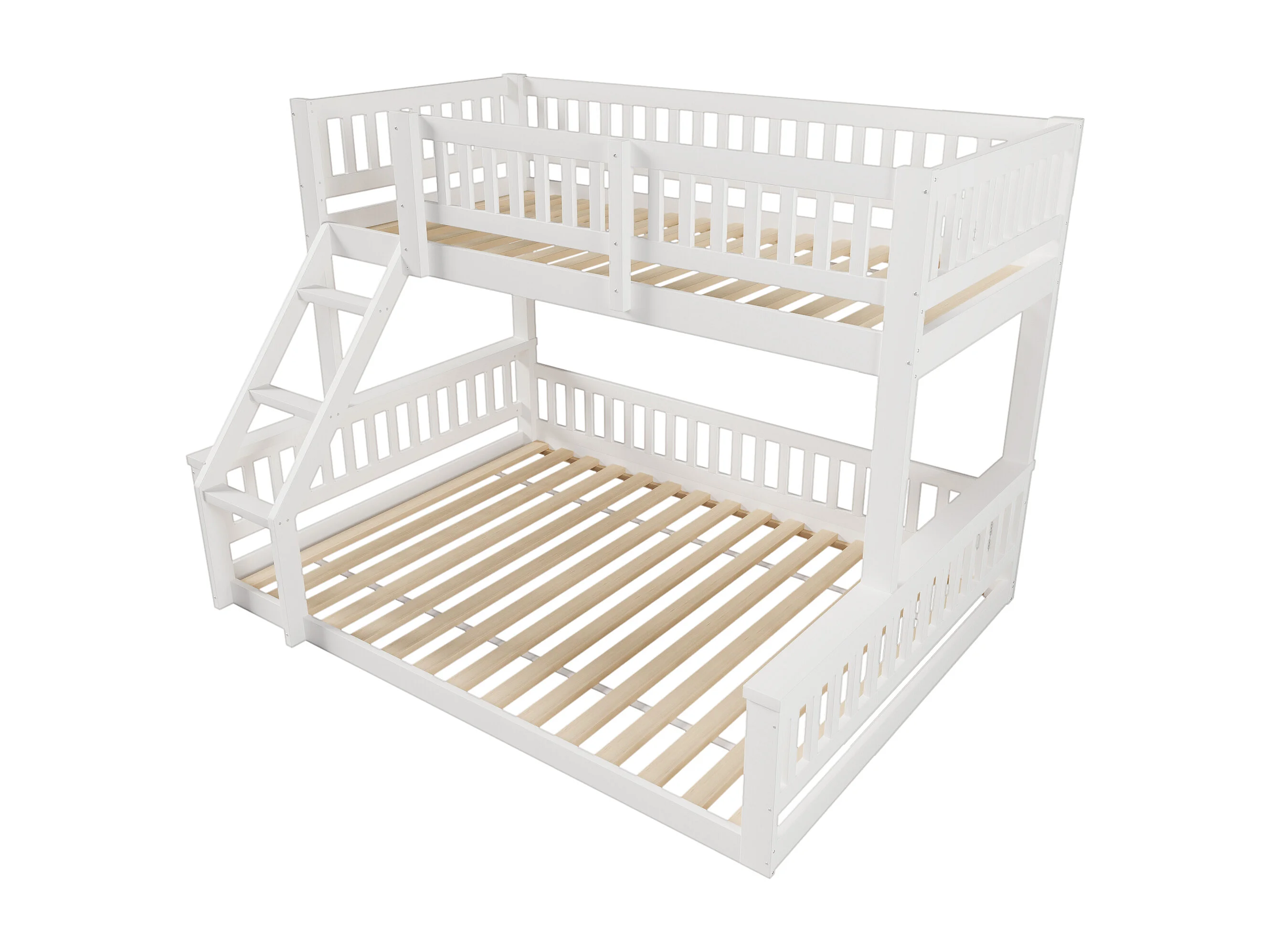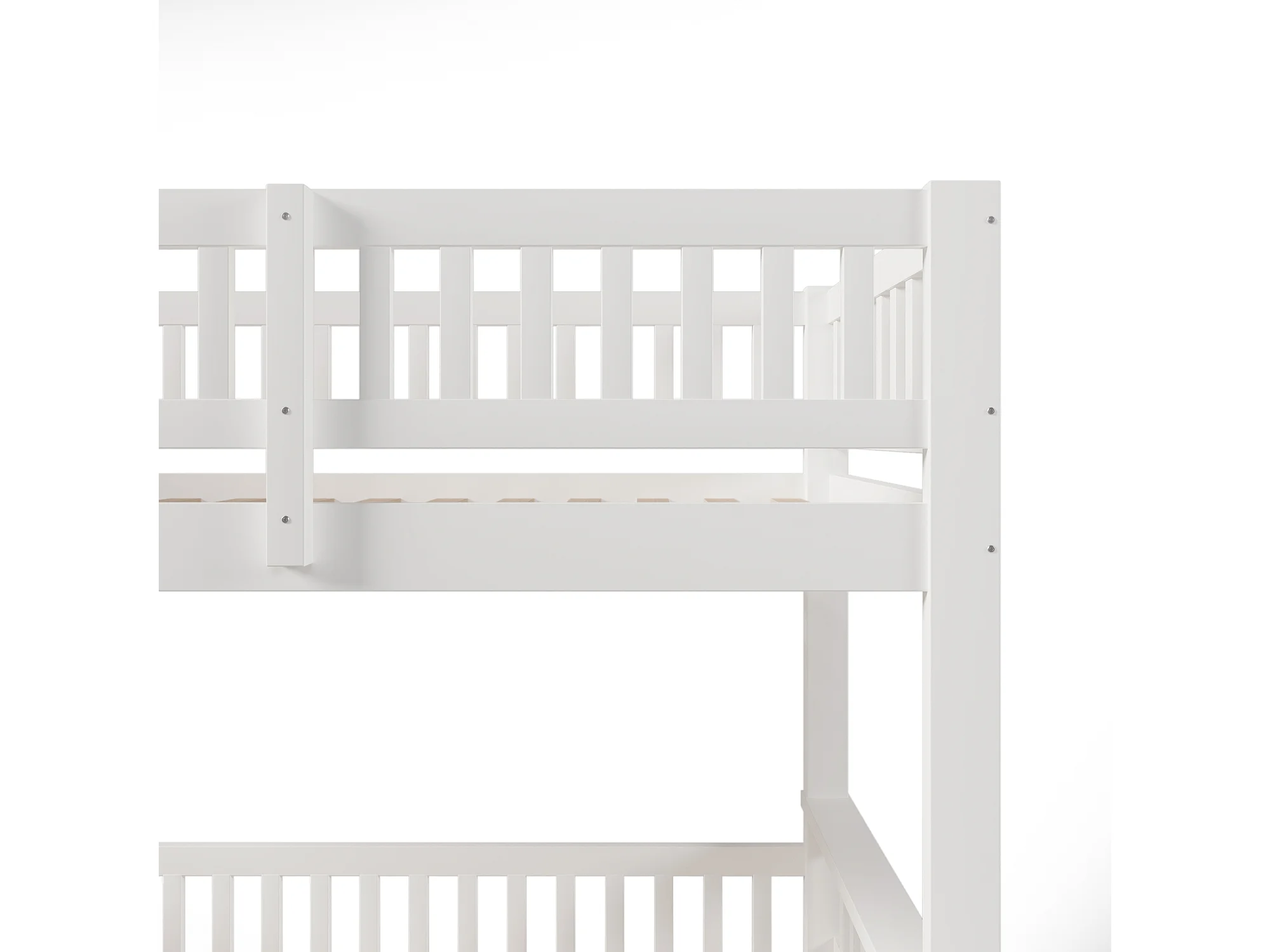 Lit superposé 90x200cm avec échelle et rambarde en blanc pour enfants et adolescents