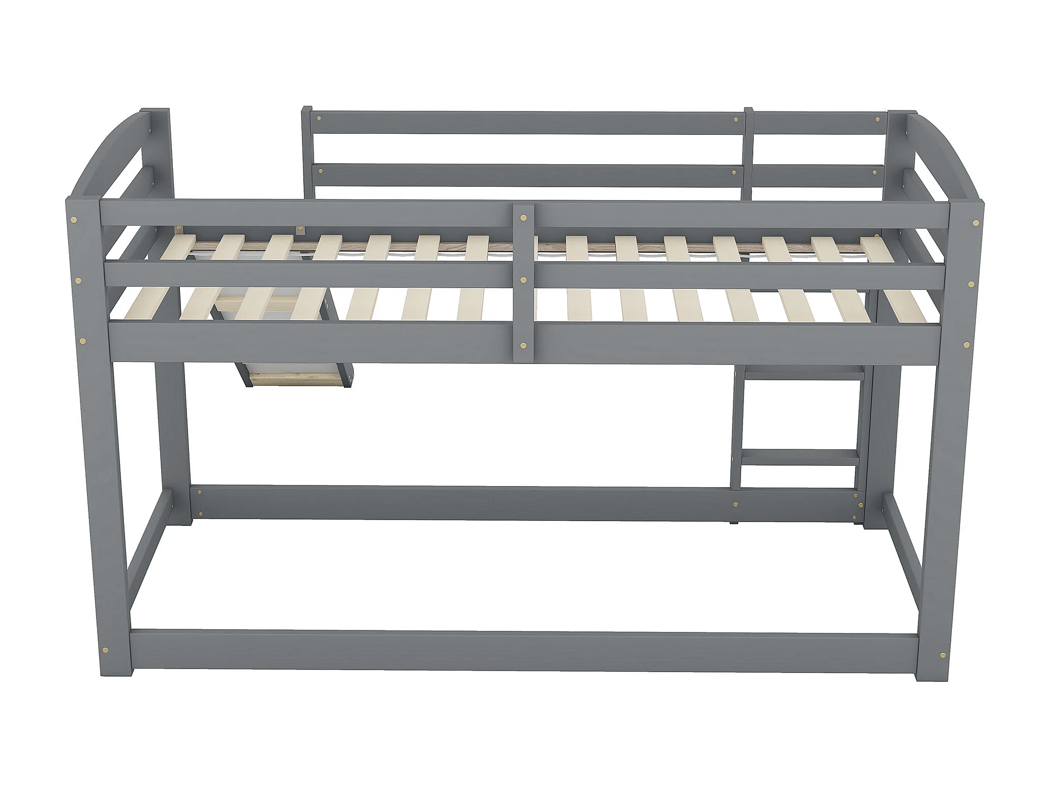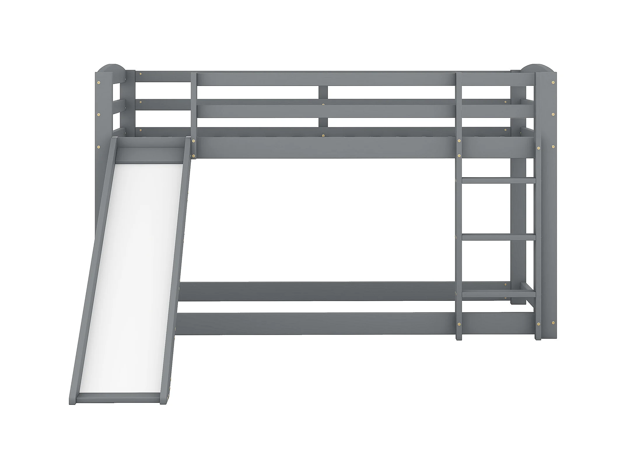 Lit superposé 90x200cm avec échelle et toboggan Barrières de sécurité en gris pour enfants et adolescents