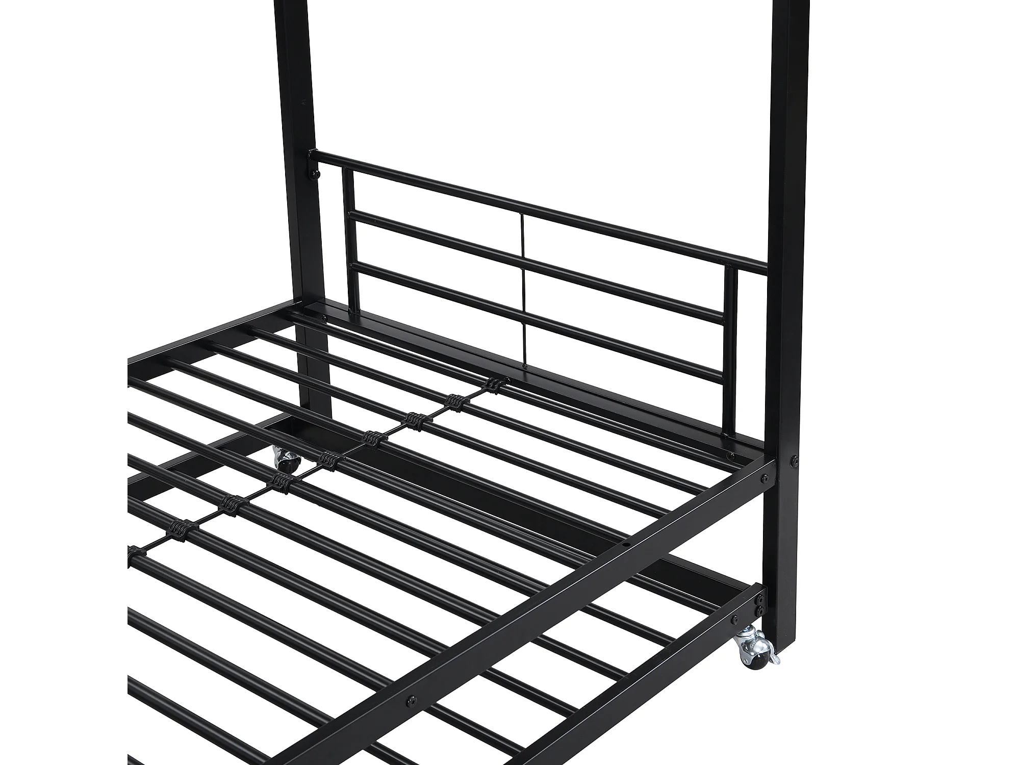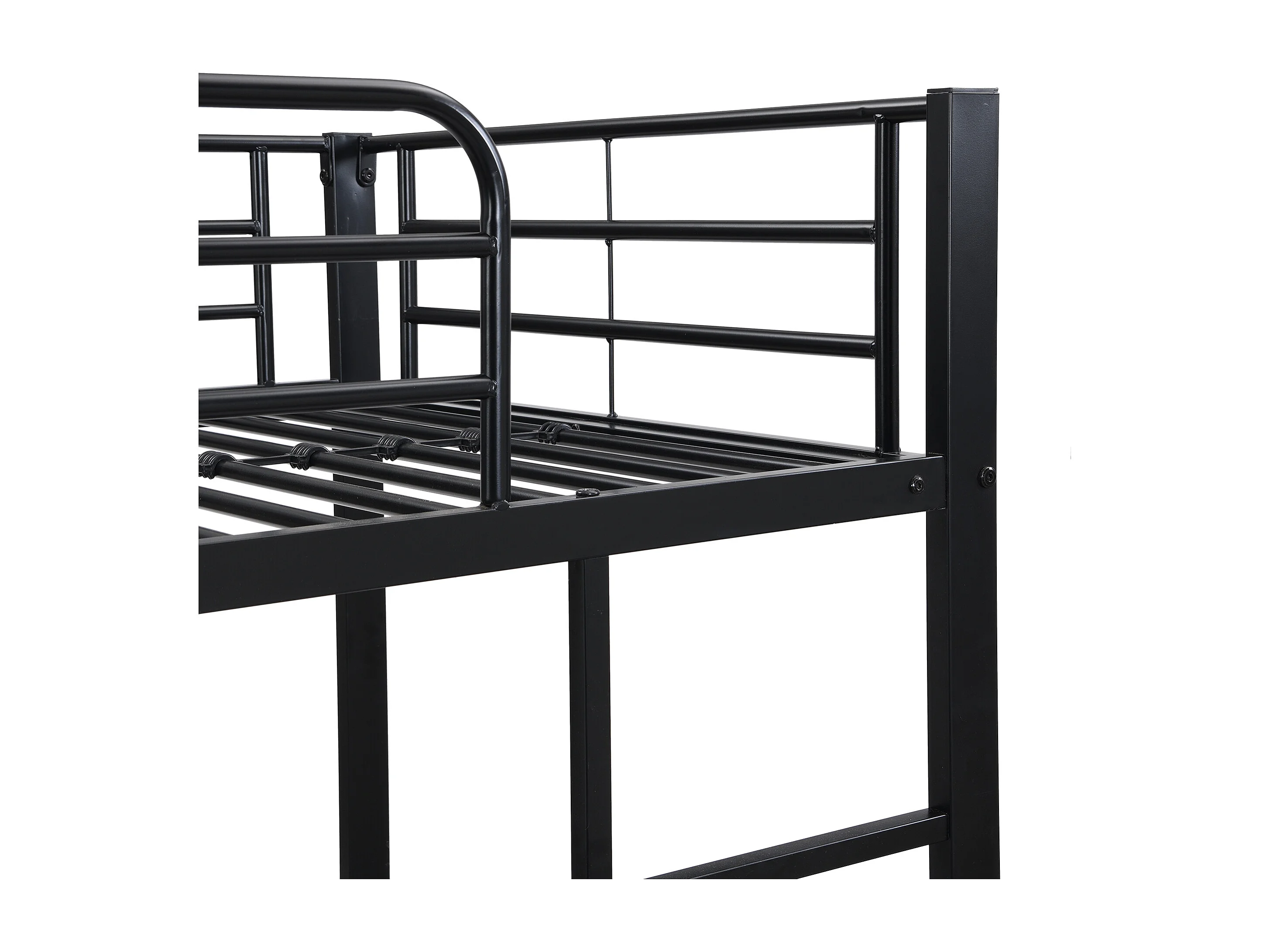 Lit superposé 90x200cm avec lit escamotable et barrières de sécurité en noir pour enfants et adolescents