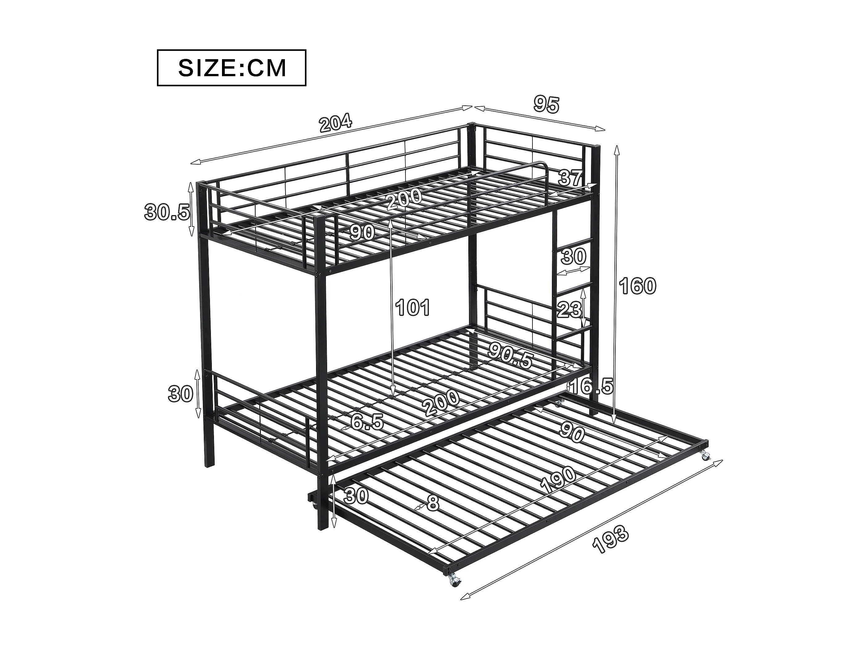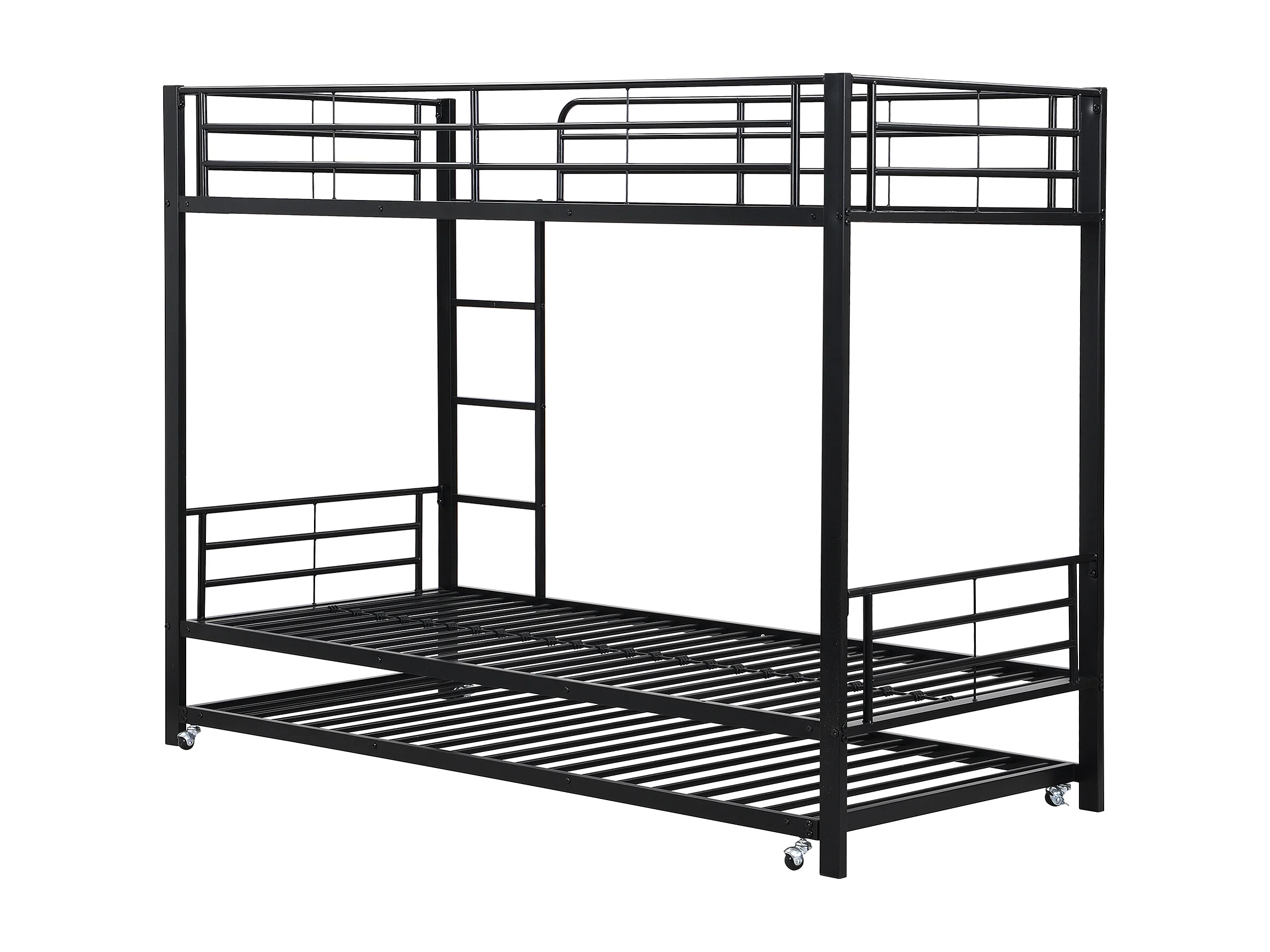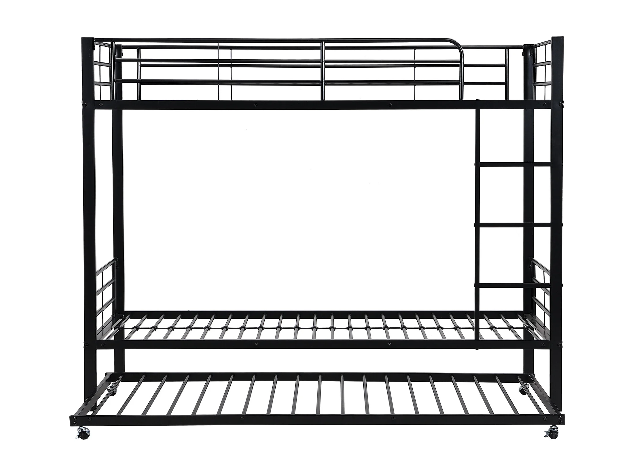Lit superposé 90x200 cm et 90x190 cm avec lit gigogne et échelle, métal noir (Sans matelas)