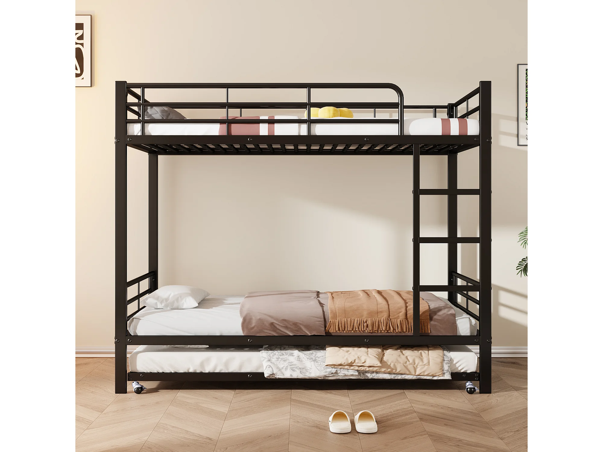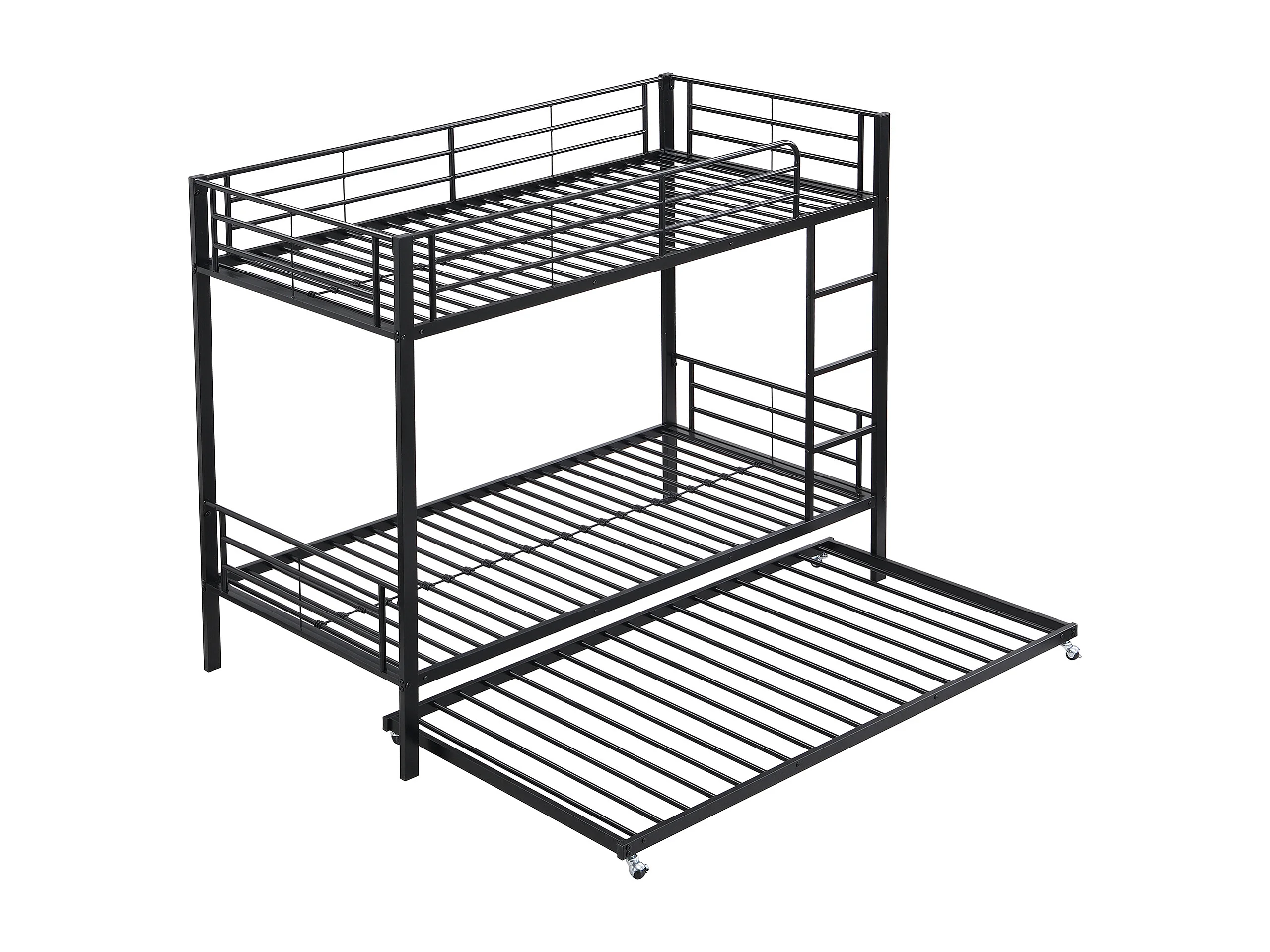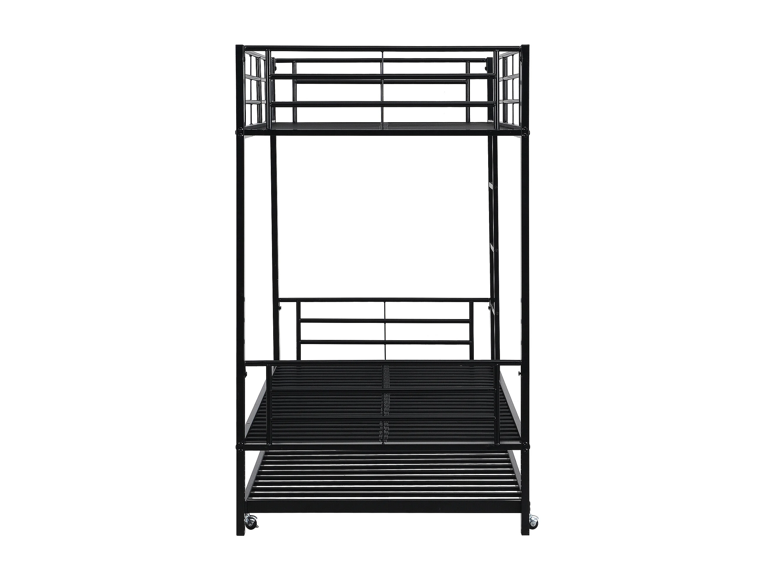 Lit superposé 90x200 cm et 90x190 cm avec lit gigogne et échelle, métal noir (Sans matelas)