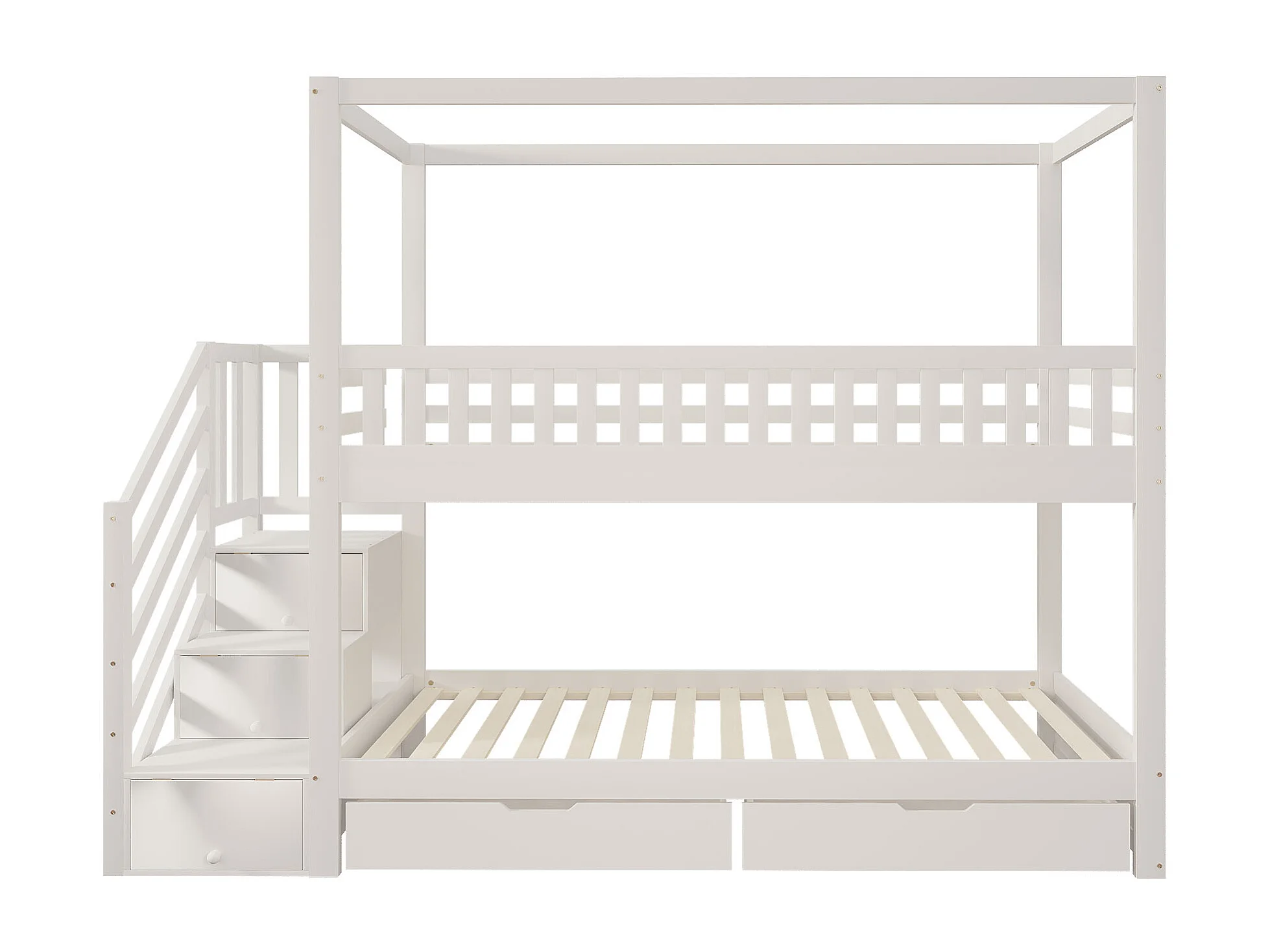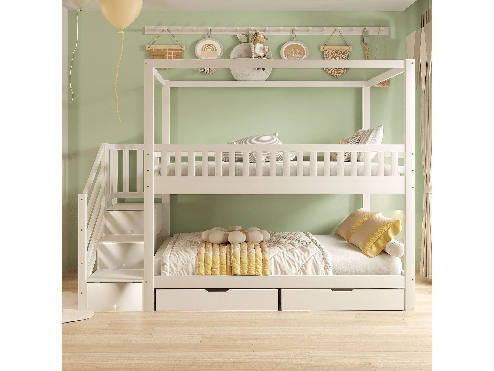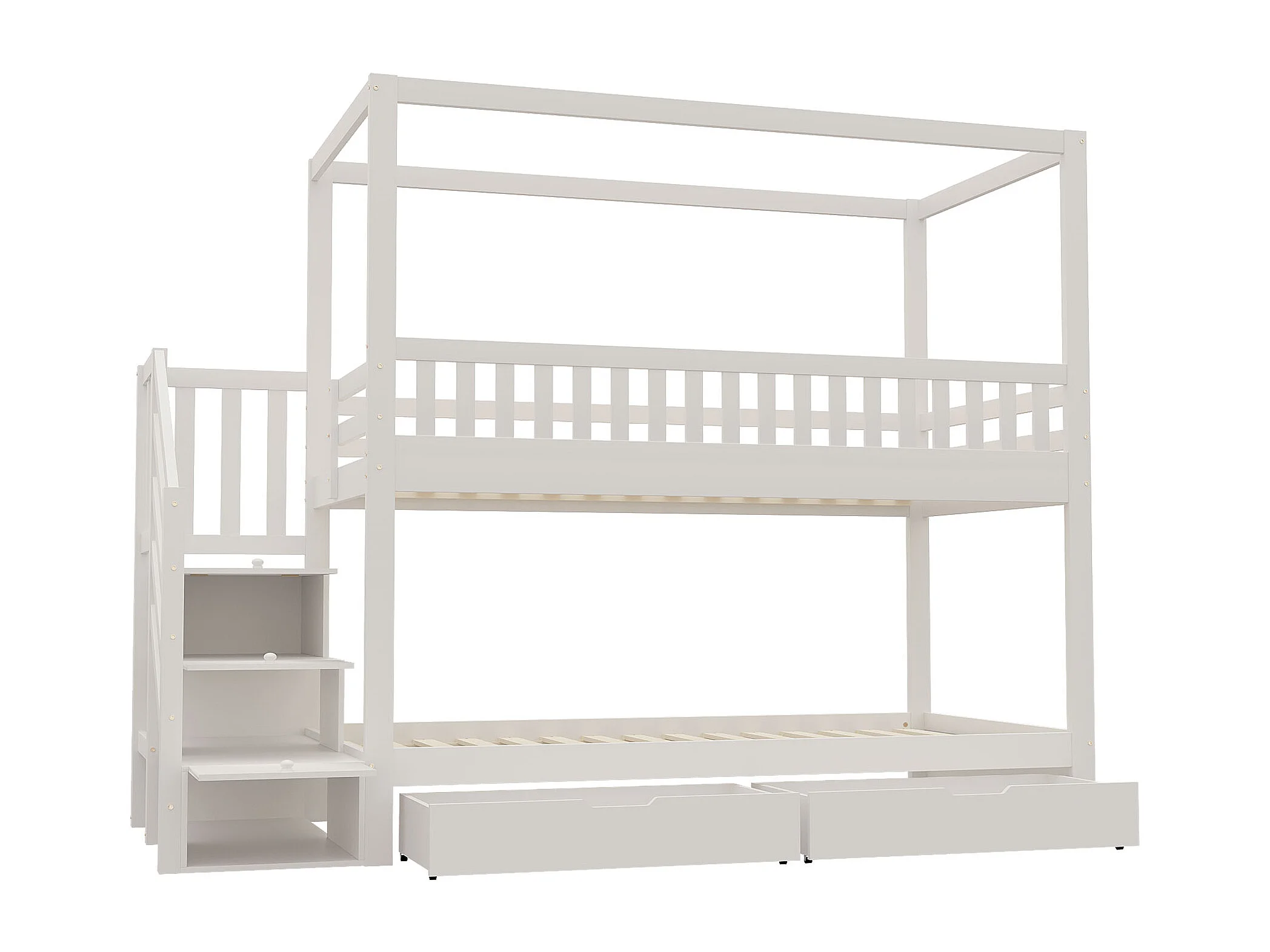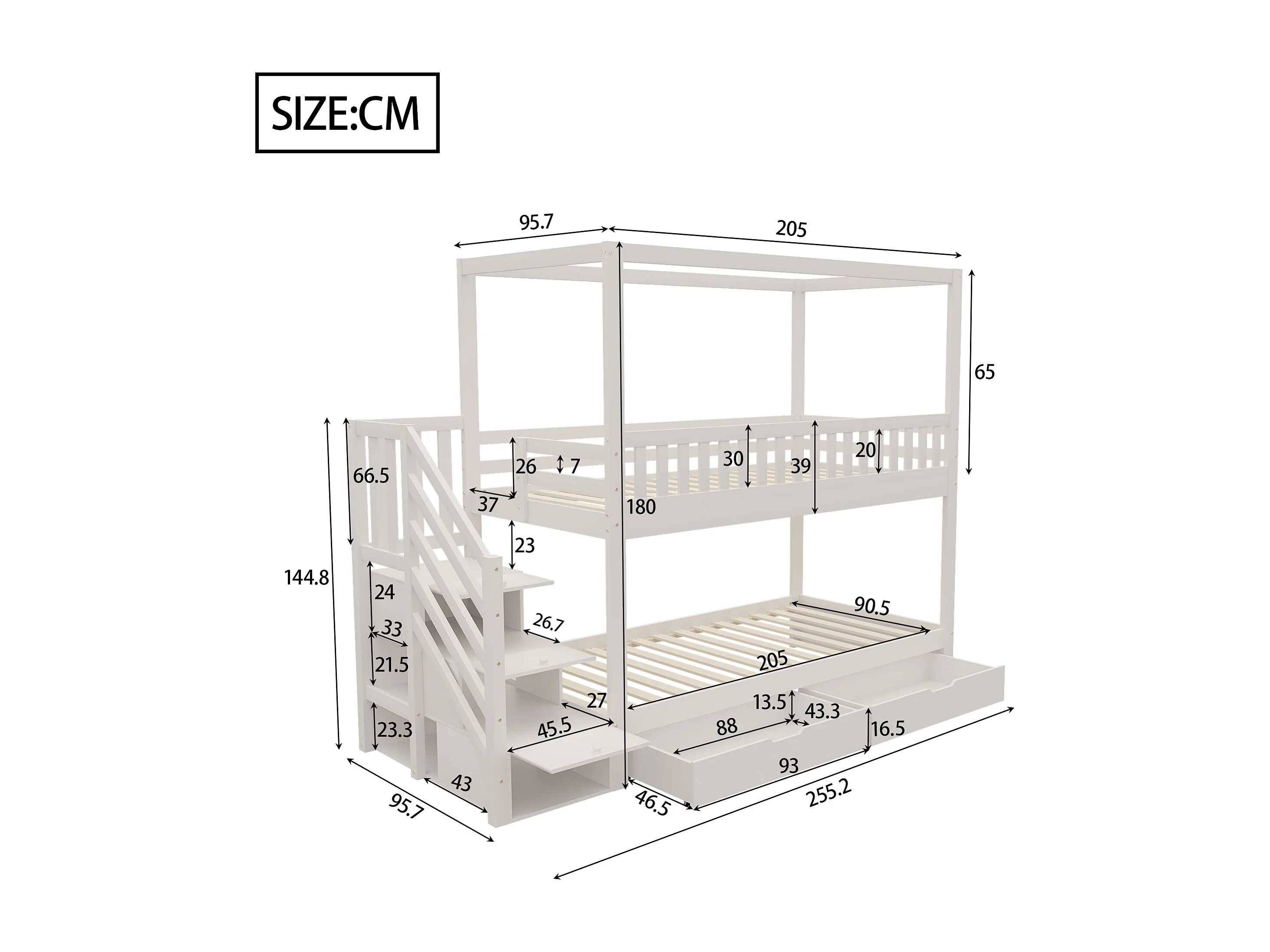 Lit superposé 90x200cm lit enfant style scandinave gain de place bois chambre blanc (Sans matelas)