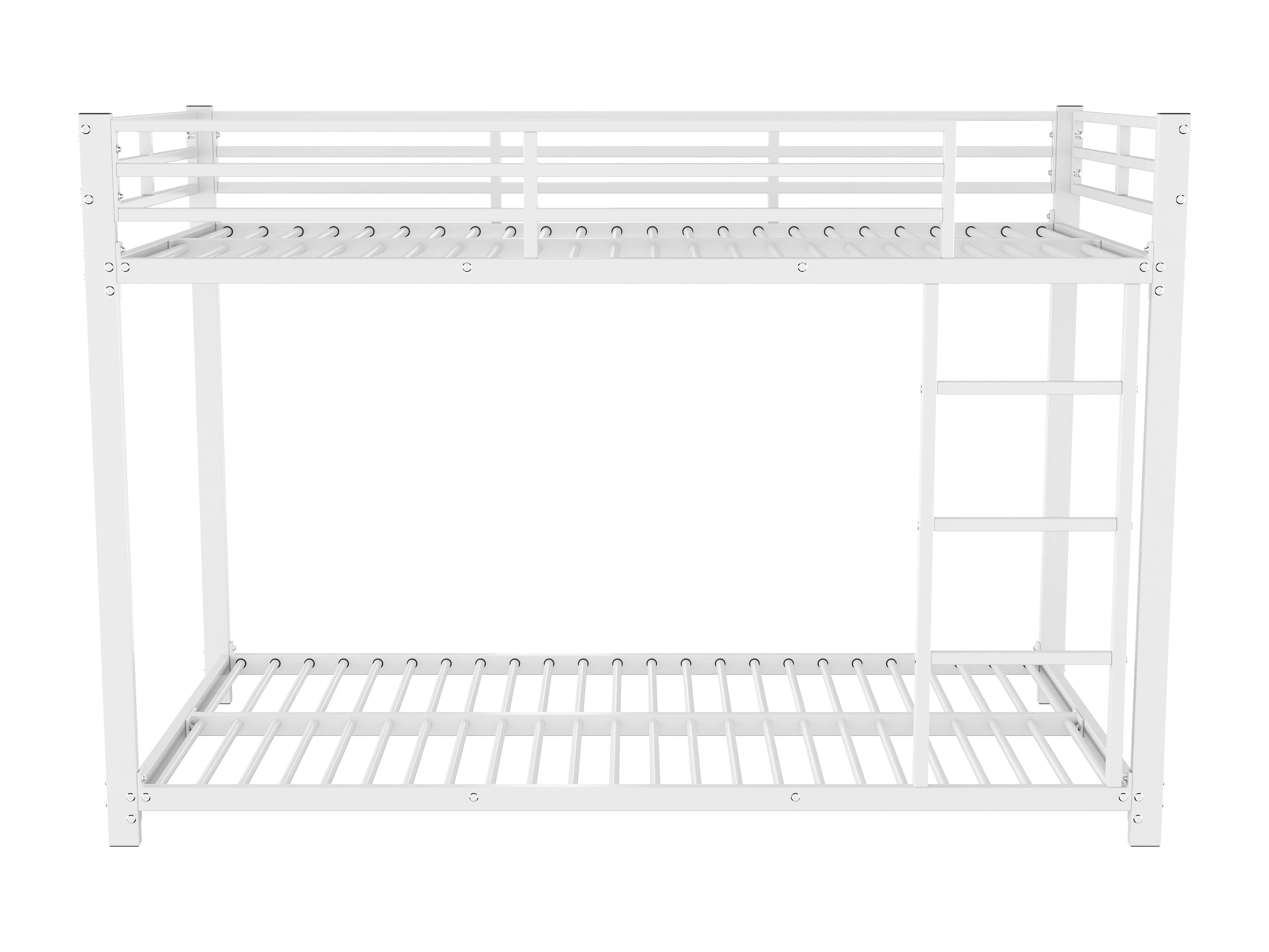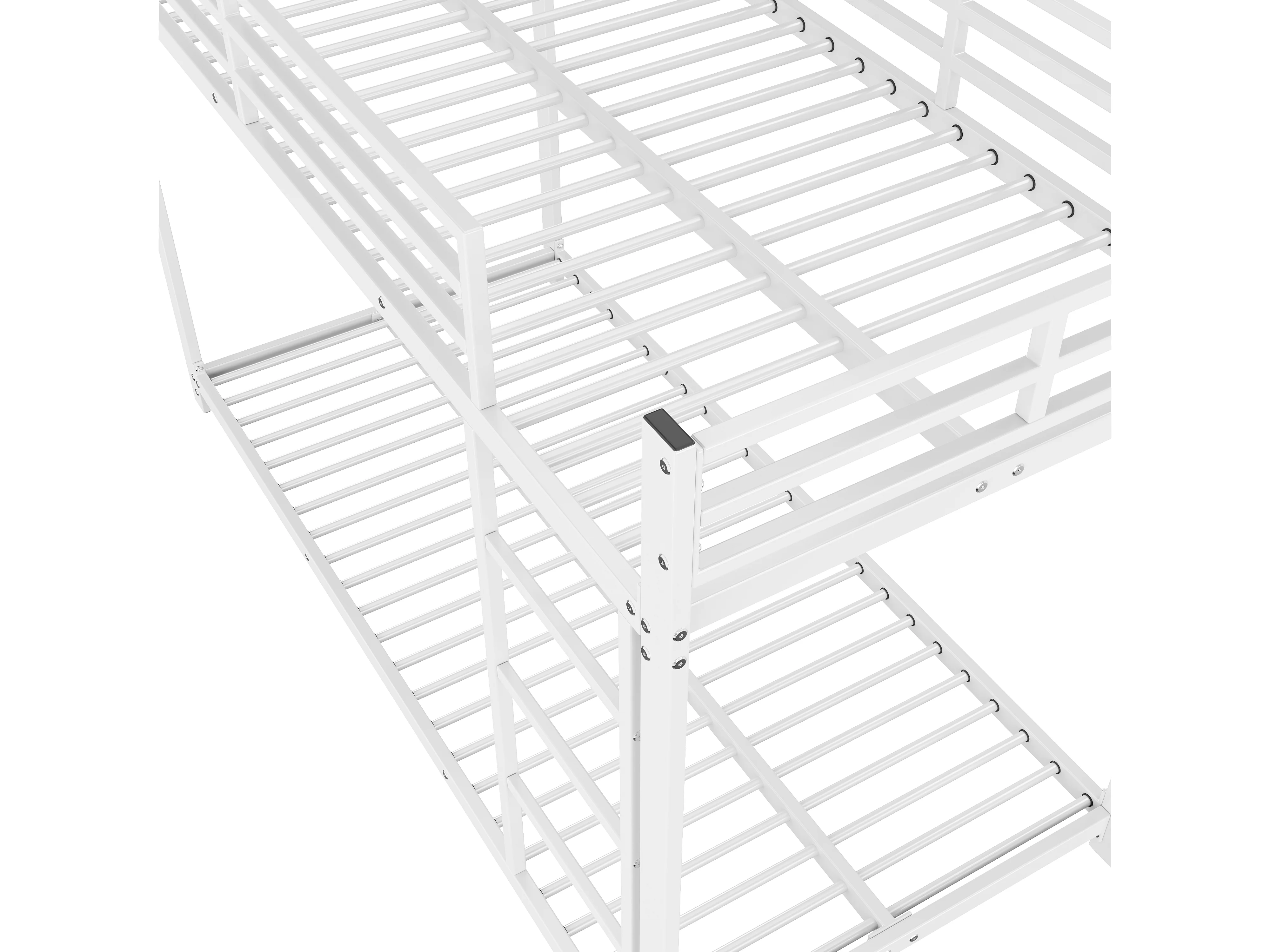 Lit Superposés 90 x 200 cm - En Métal - Avec Barrières De Sécurité 26 cm Et Sommiers À Lattes (23 Lattes) - Sans Matelas - Blanc