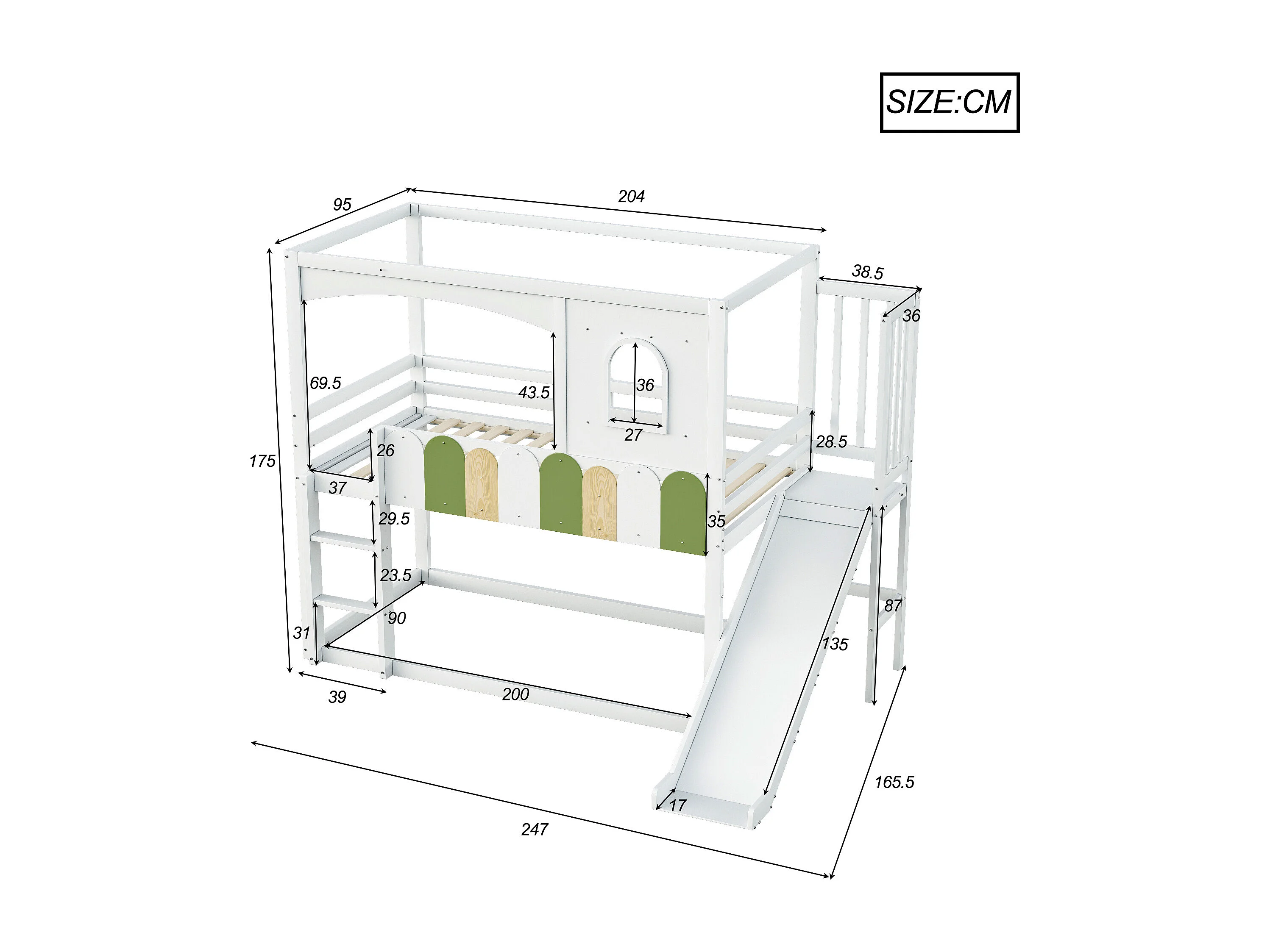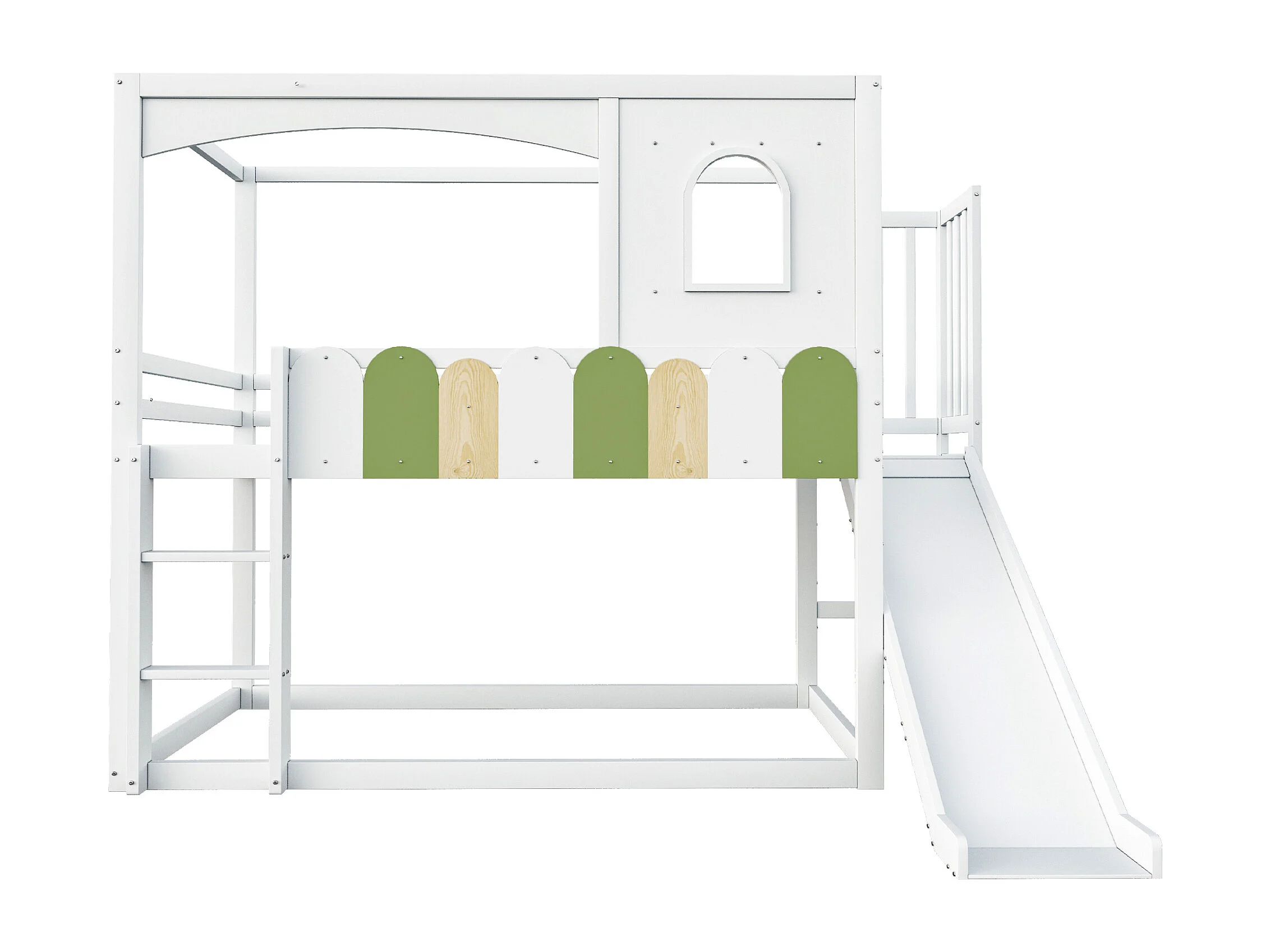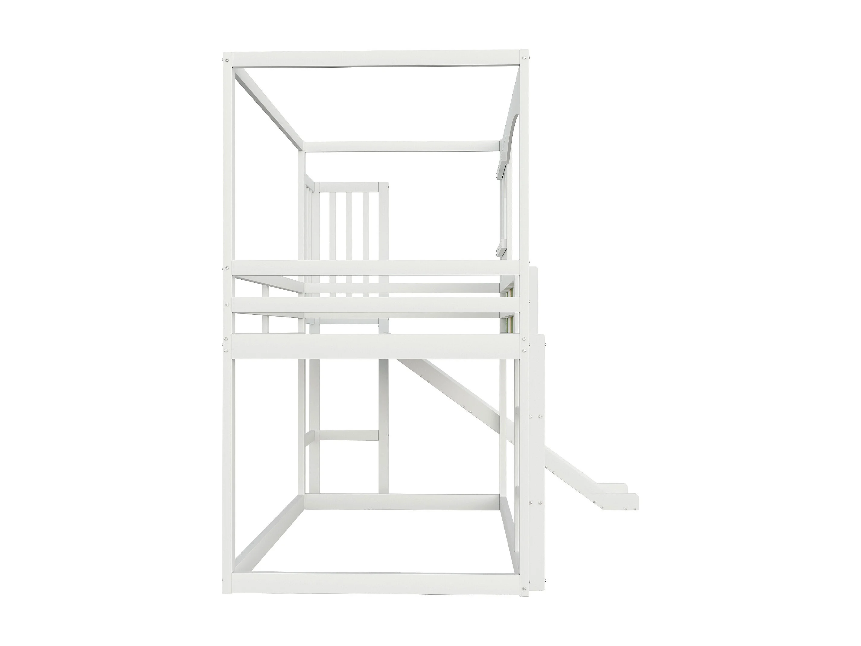 Lit superposé enfant 90x200 cm avec toboggan - Lit cabane bois blanc