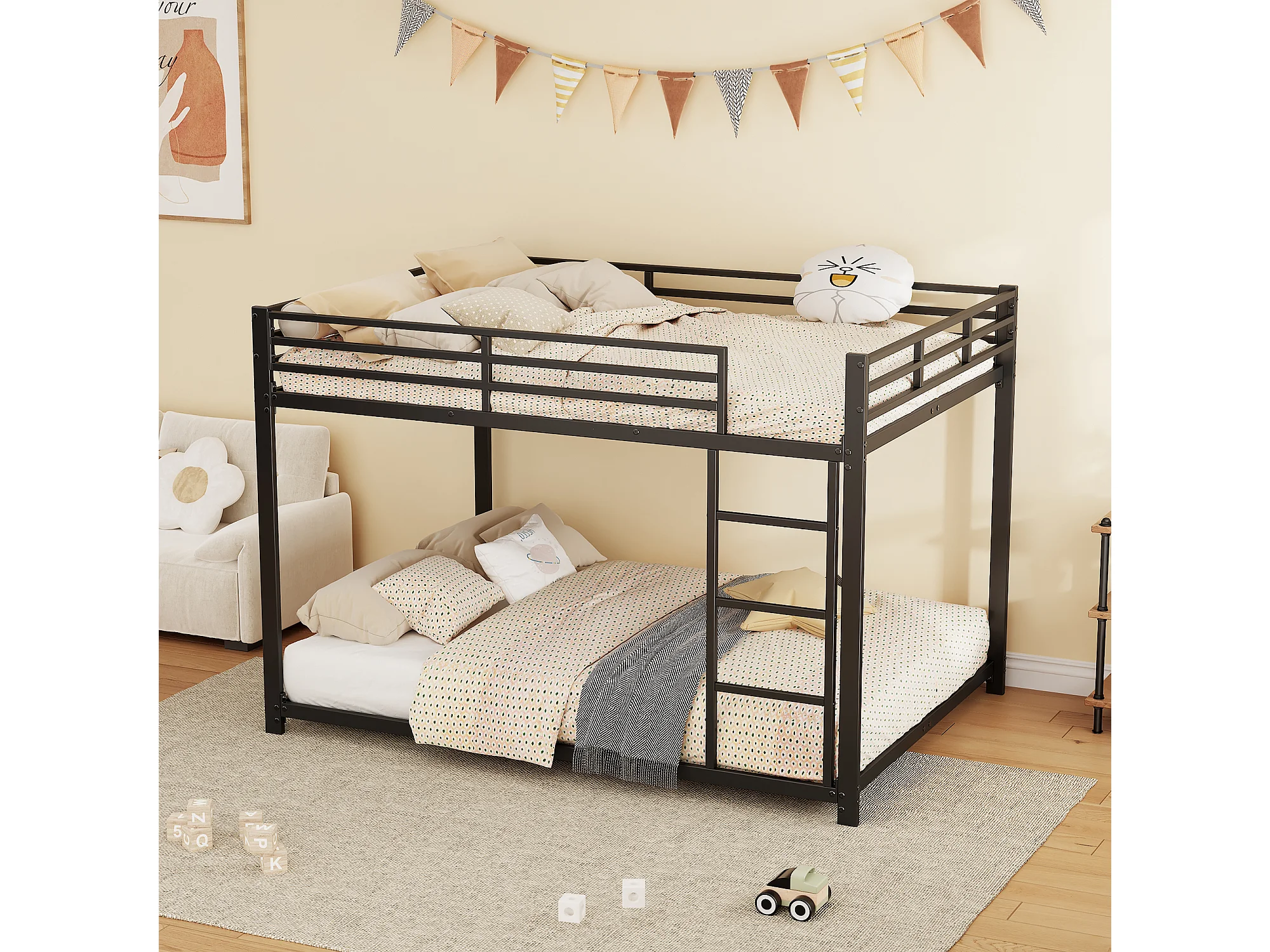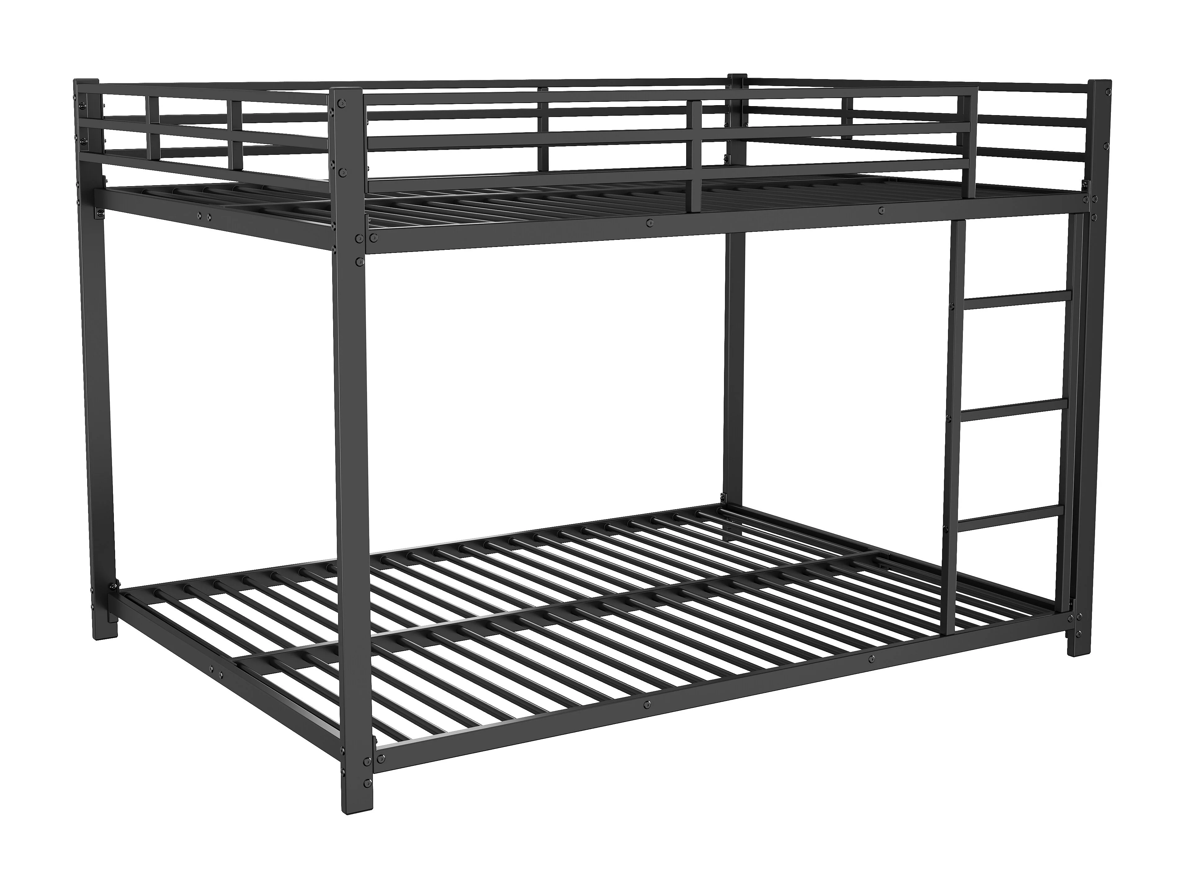 Lit Superposé - Structure Carrée 140 x 200 cm - En Métal - Sommier 23 Lattes, Charge 120 kg/Place - Barrière 26 cm - Sans Matelas - Noir