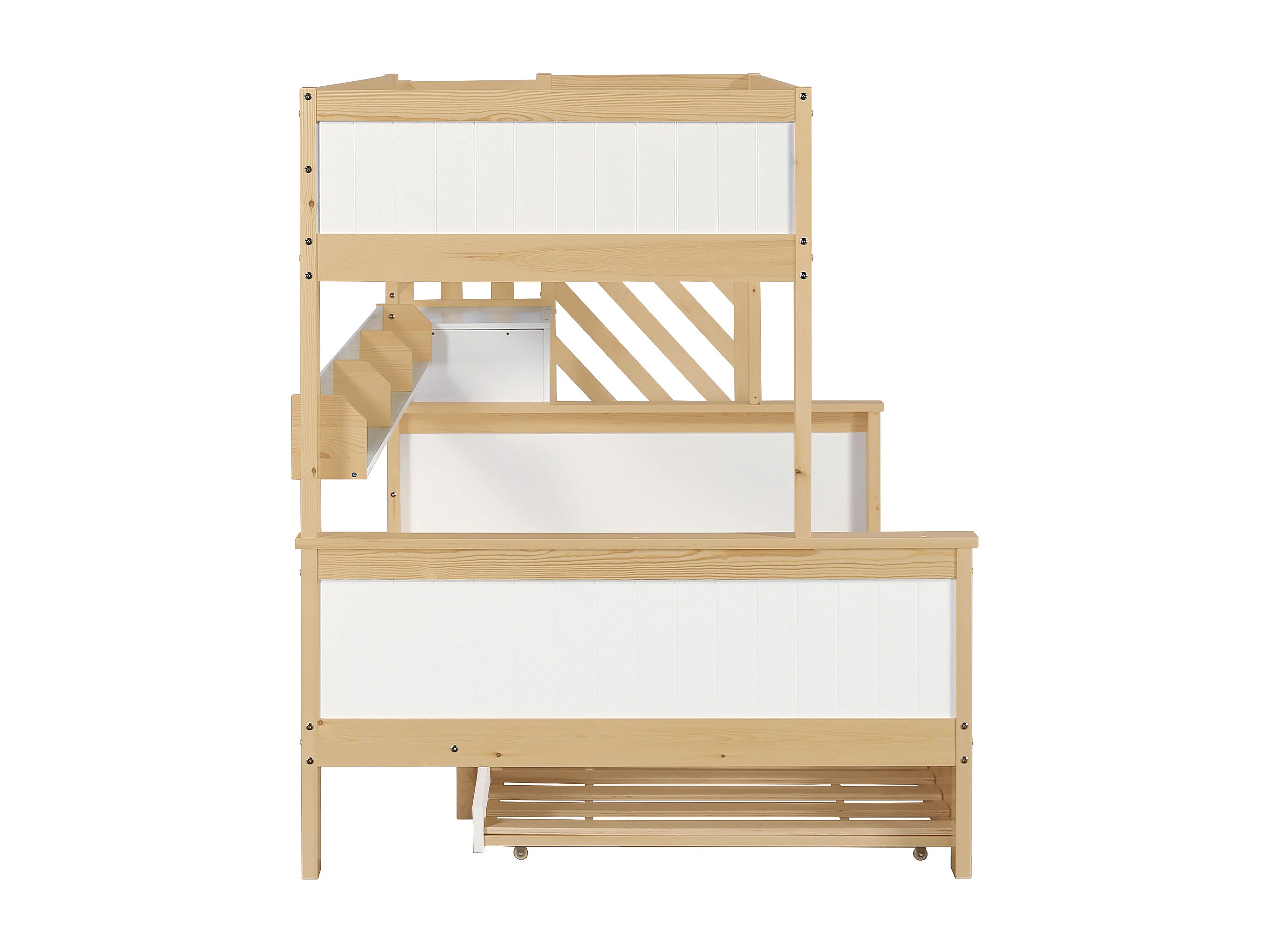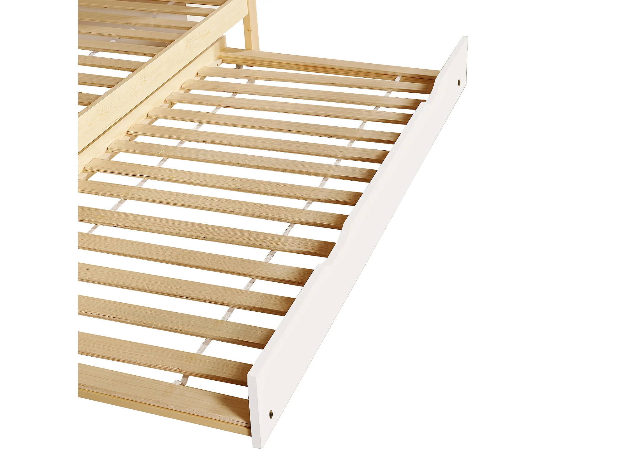 Lit superposé lit gigogne, 90x200 cm et 90x190 cm, blanc et naturel, avec rangement et sécurité, sans matelas