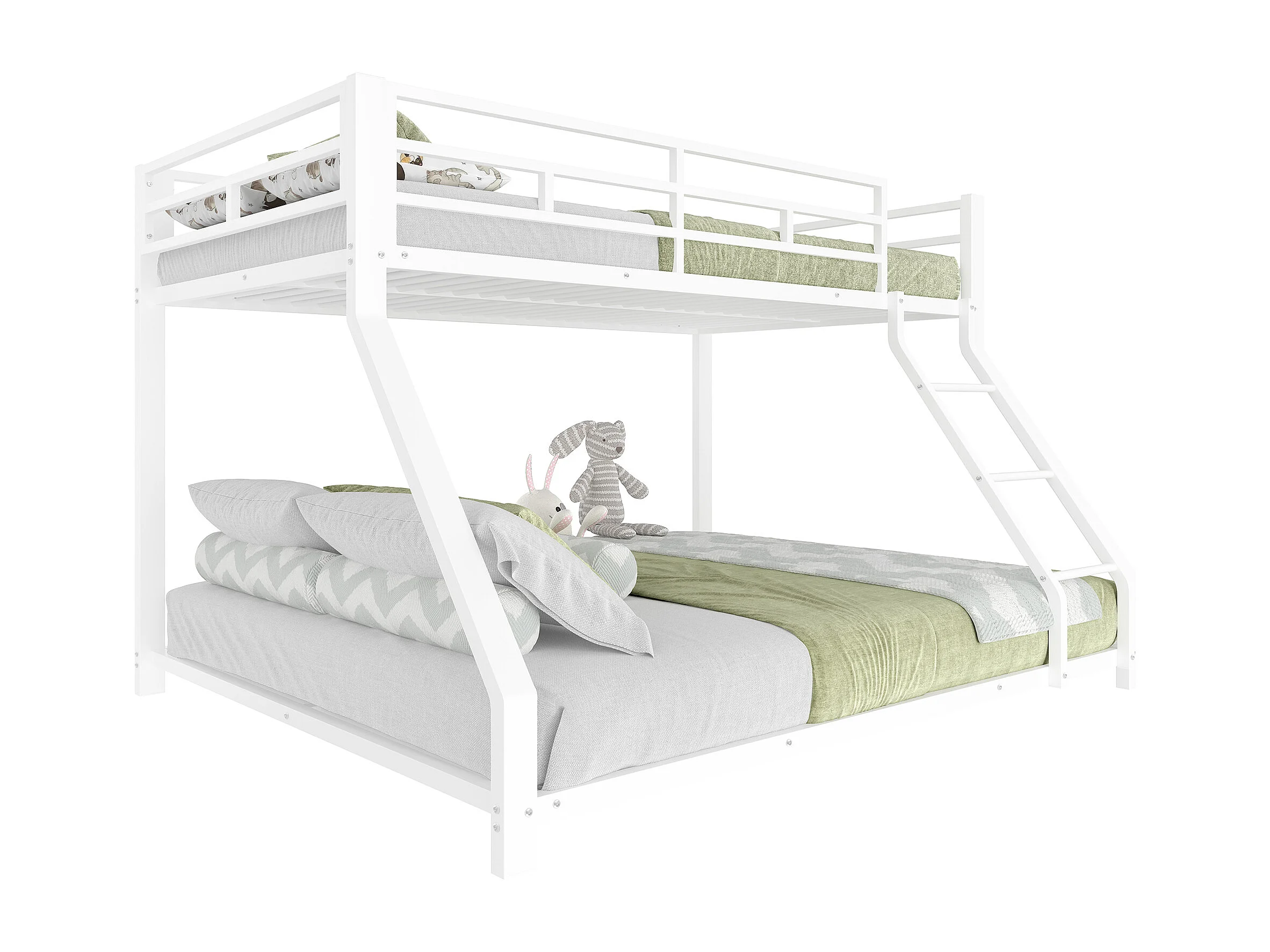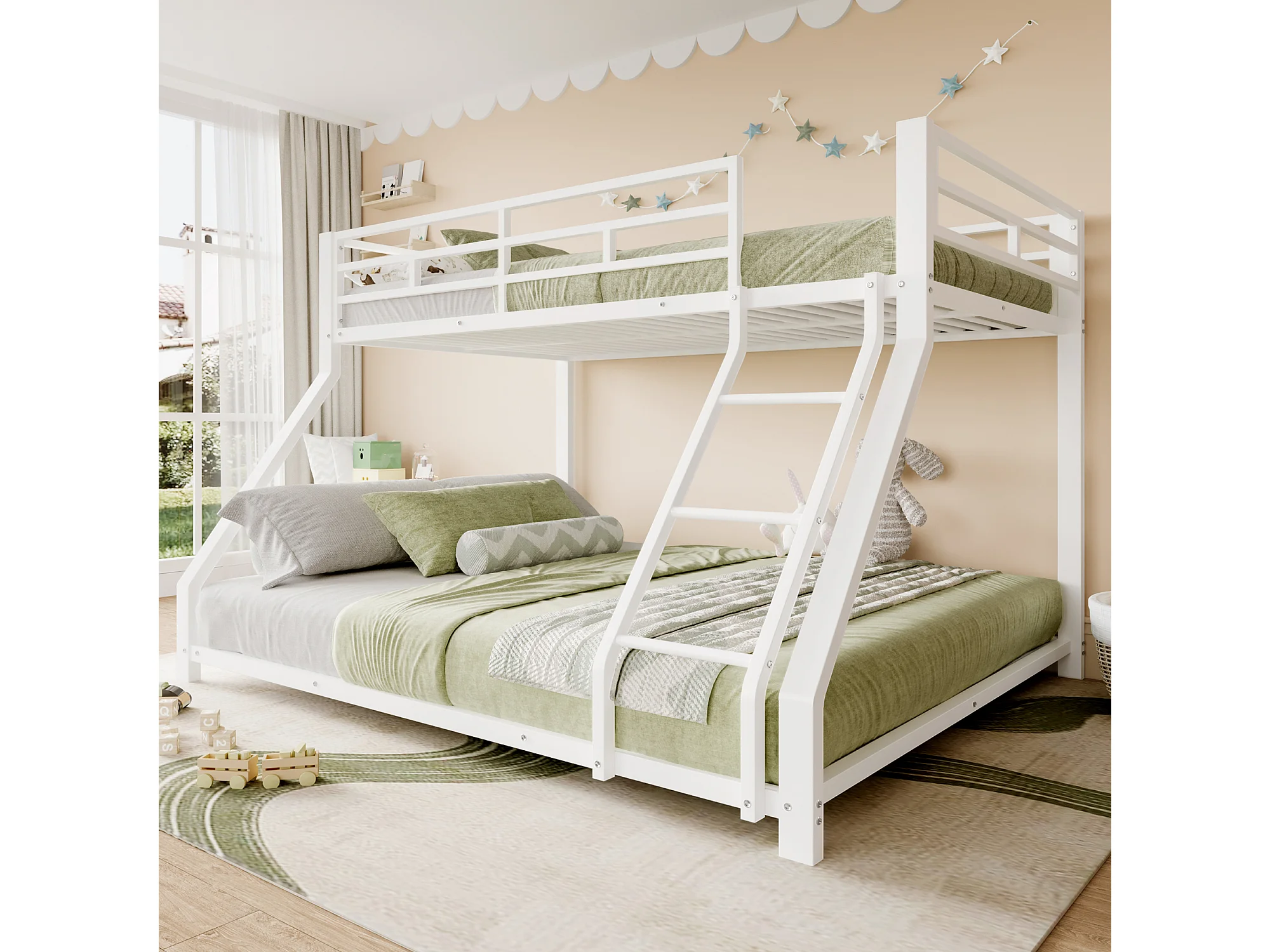 Lit superposé pour enfant - 90 x 200 cm + 140 x 200 cm - avec garde-corps + marchepied - métal - blanc