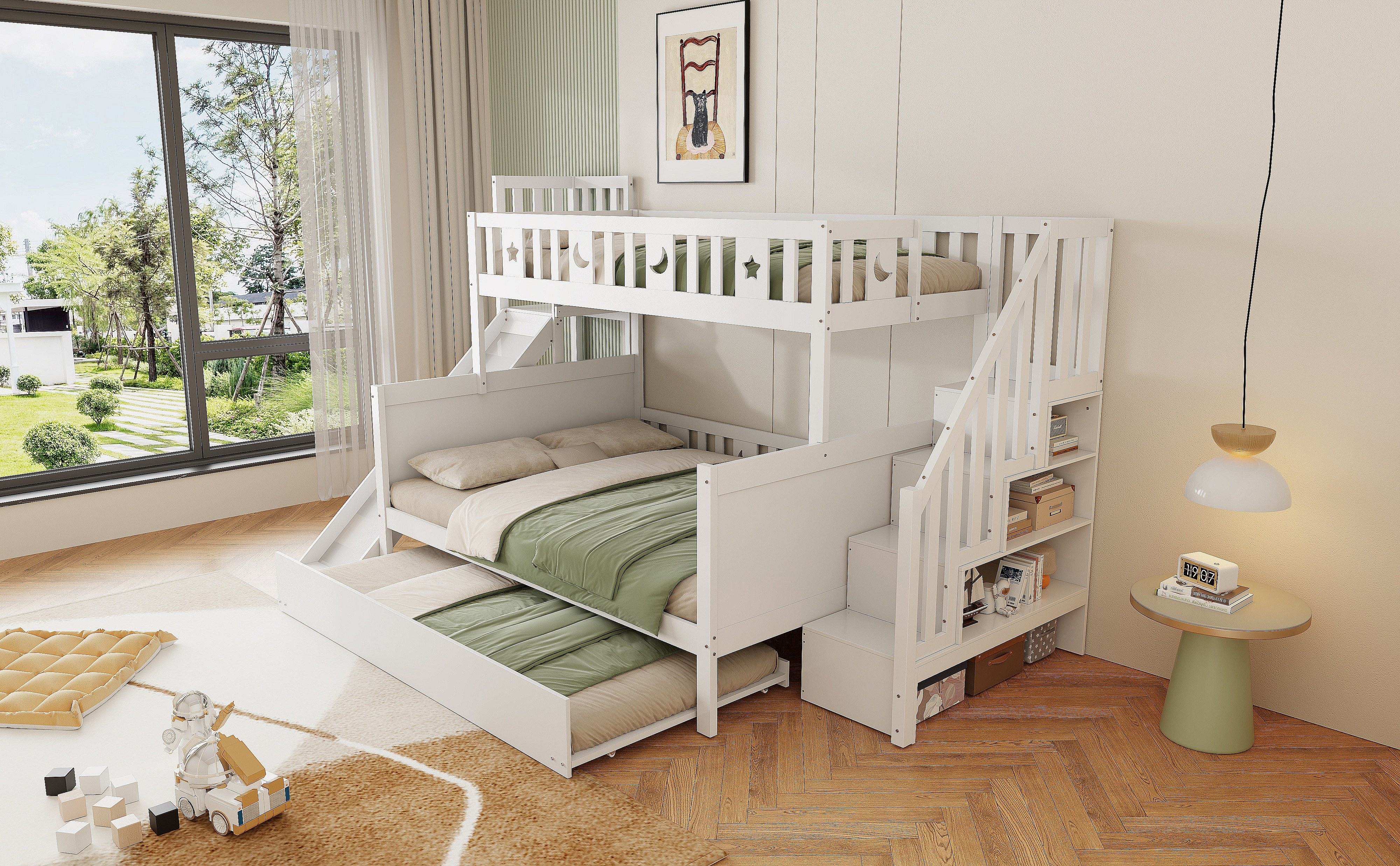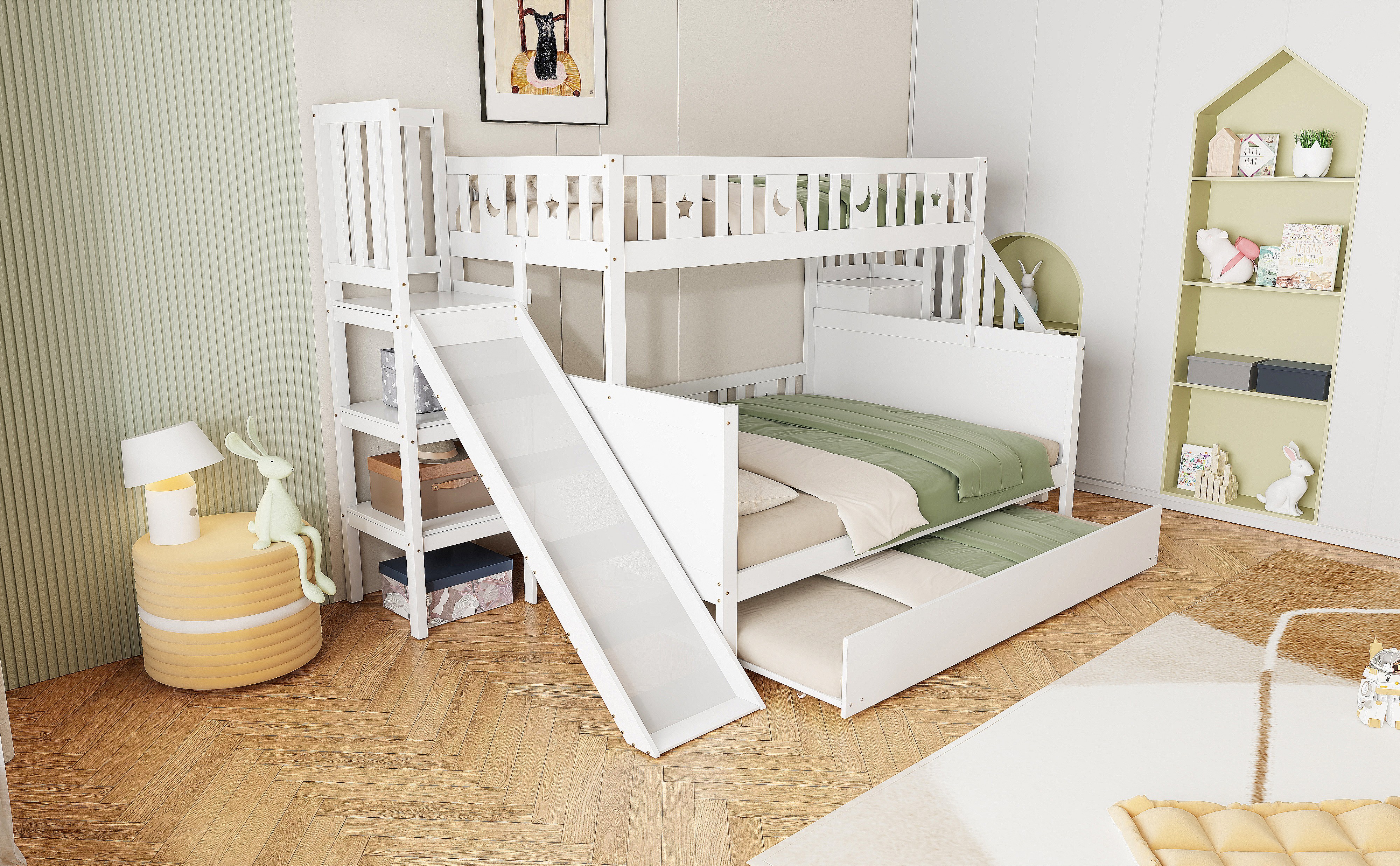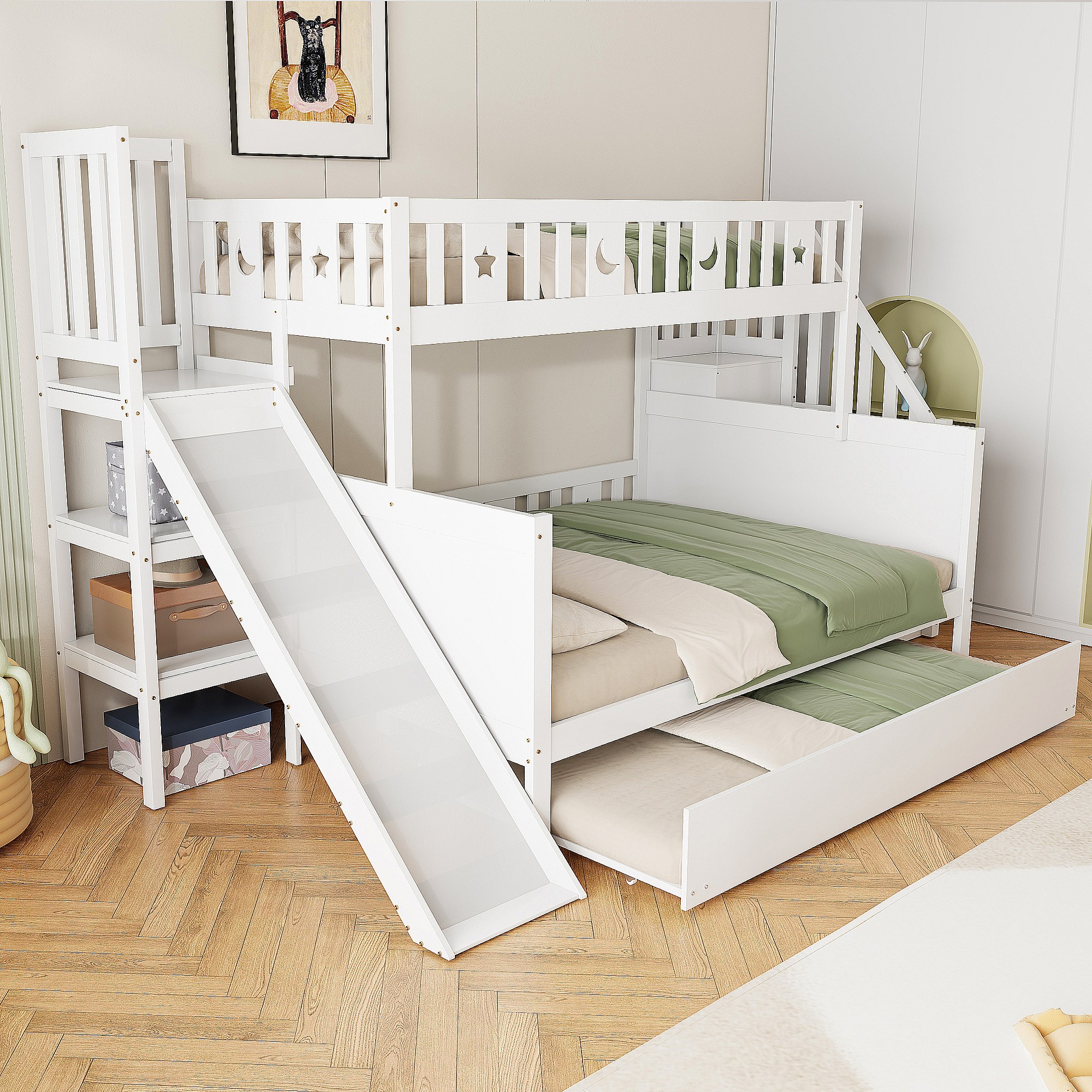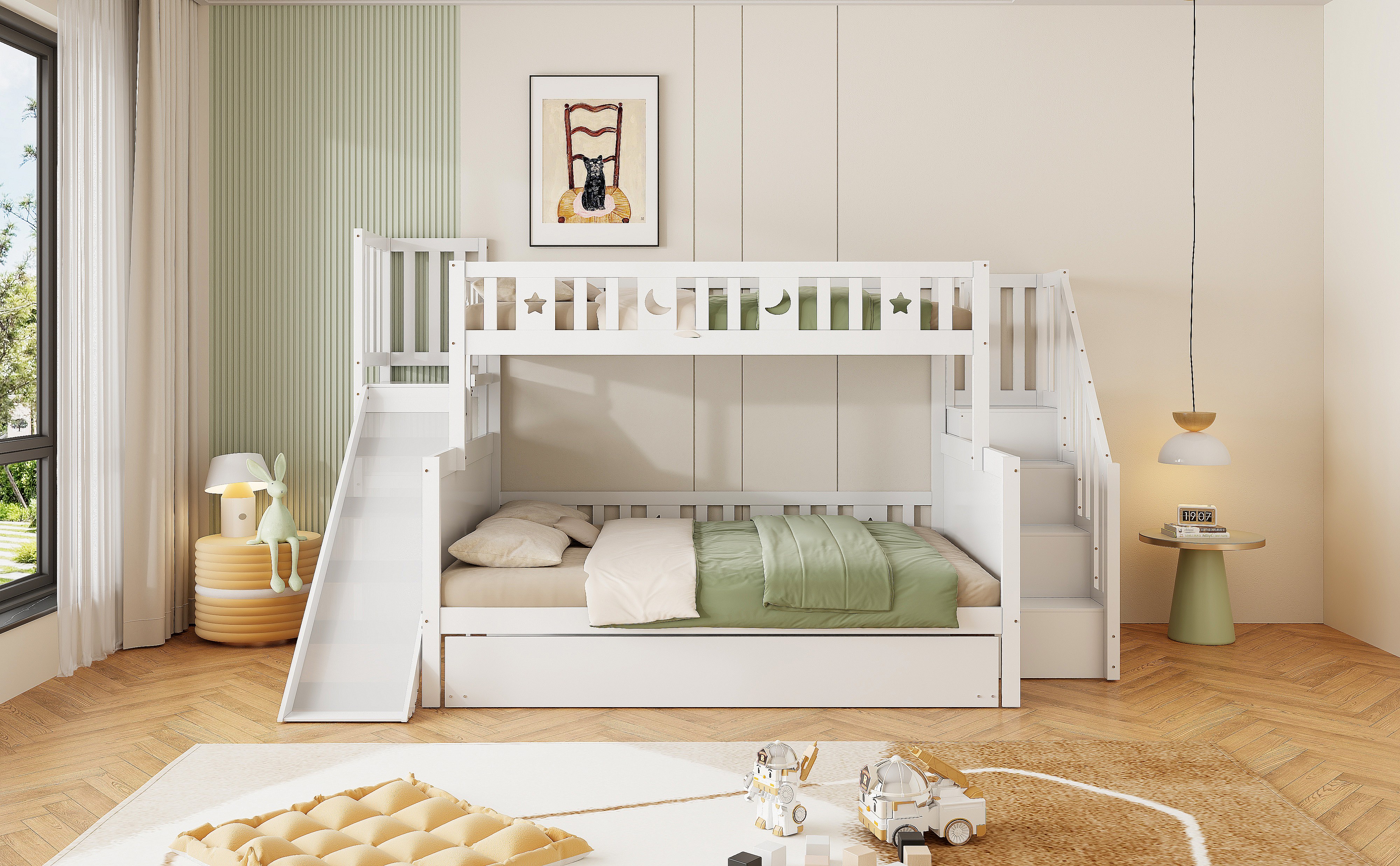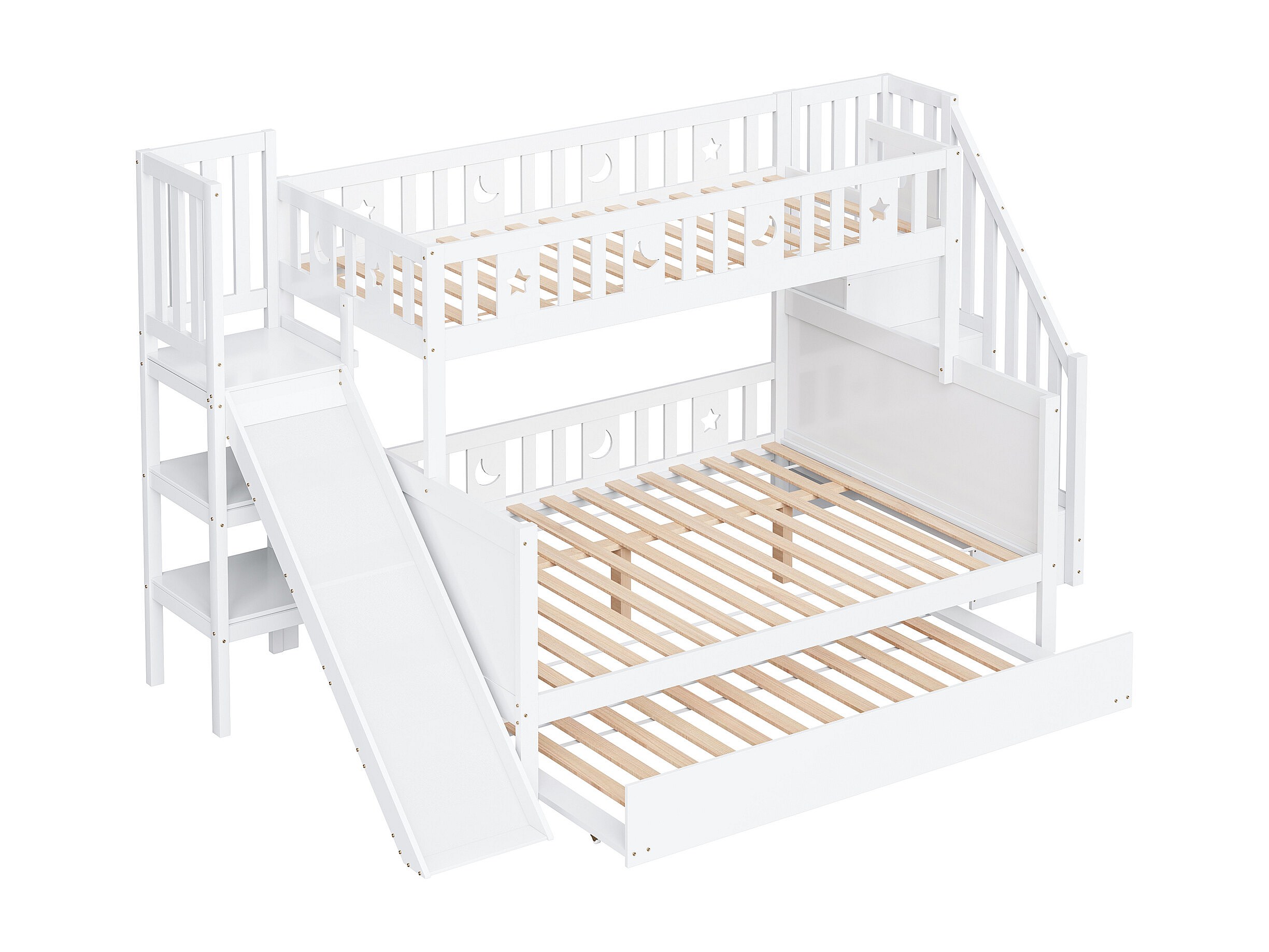Lit superposés enfant90 x 200 cm + 140 x 200 cm - avec toboggan + escalier de rangement + lit gigogne - bois - blanc