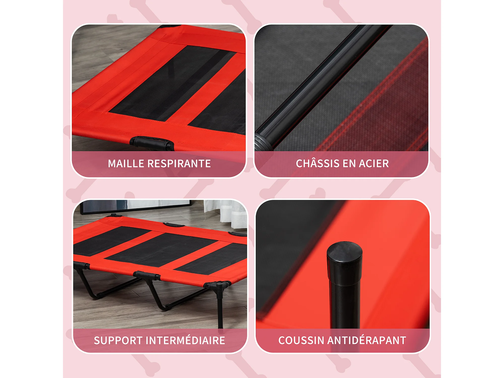 Lit sur pieds XXL pour chien chat lit de camp animal lit surélevé Oxford textilène micro-perforé dim. 122L x 92l x 23H cm rouge
