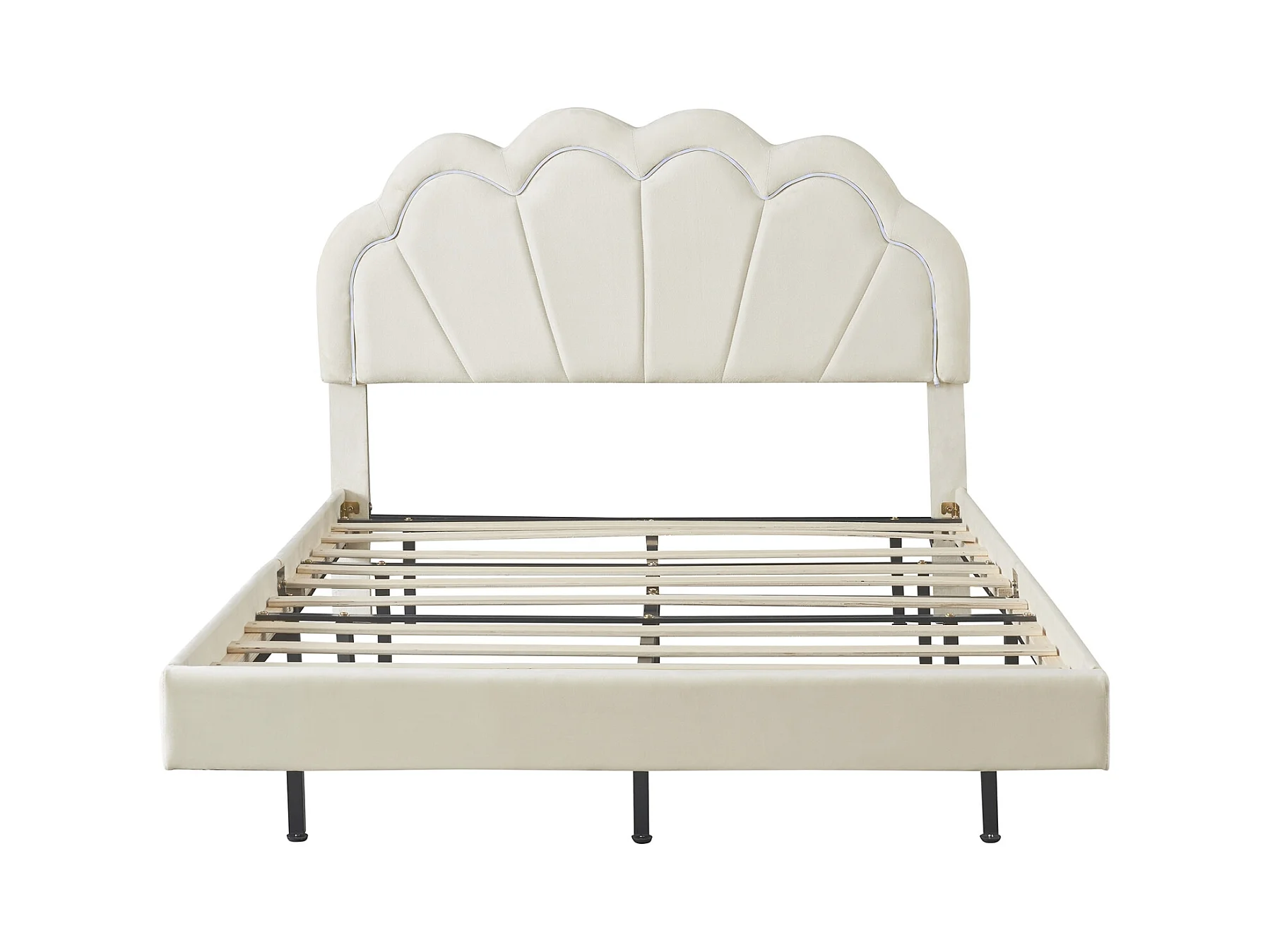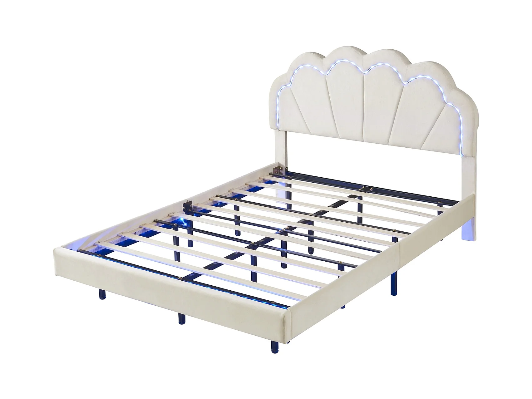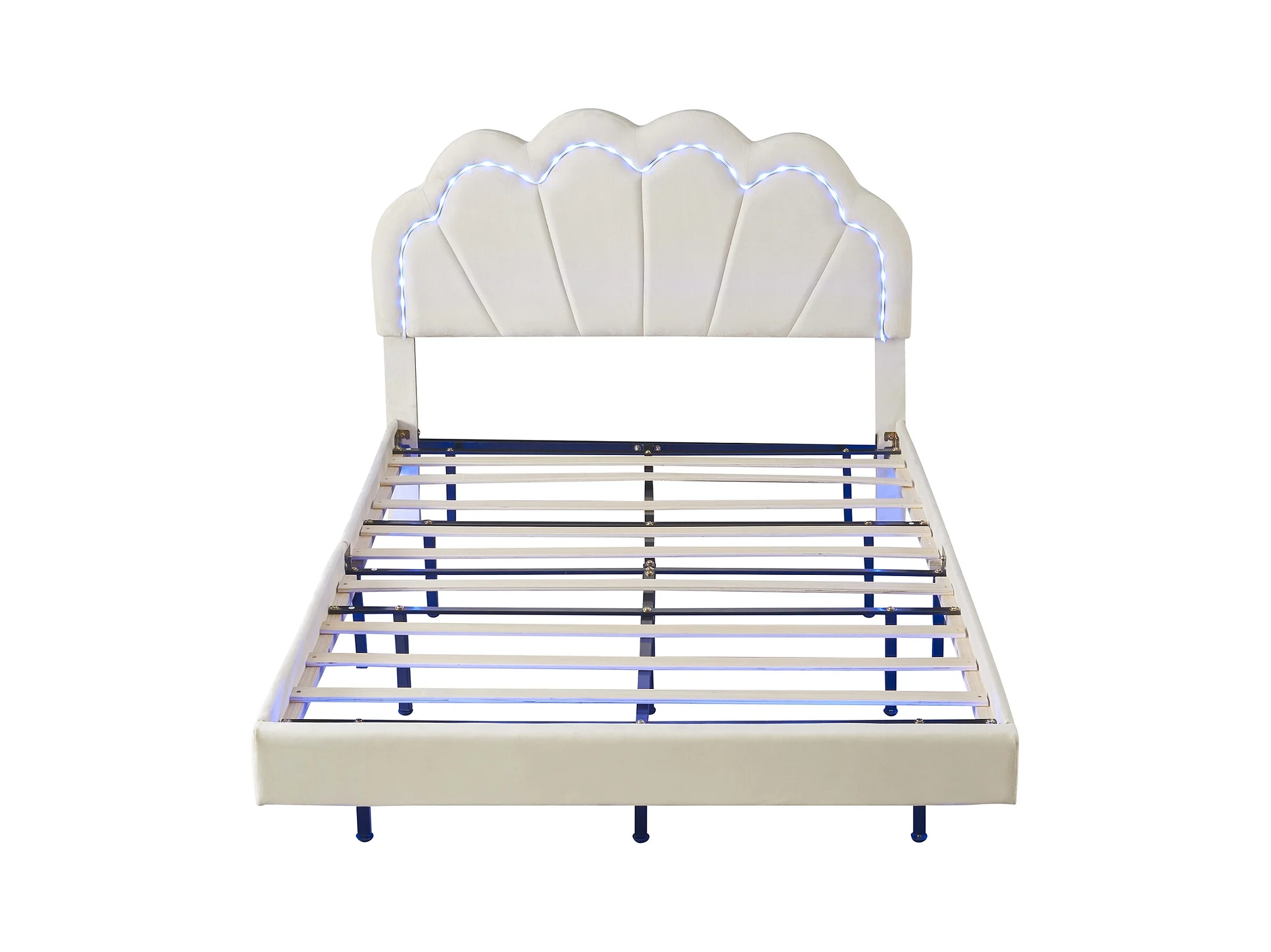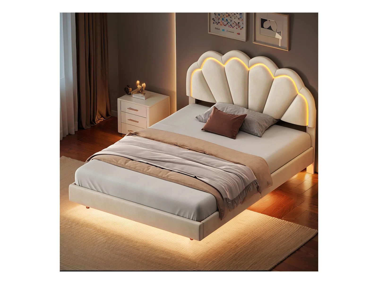 Lit suspendu,avec bandes lumineuses autour du sommier et de la tête de lit,140 x 200 cm,velours,beige