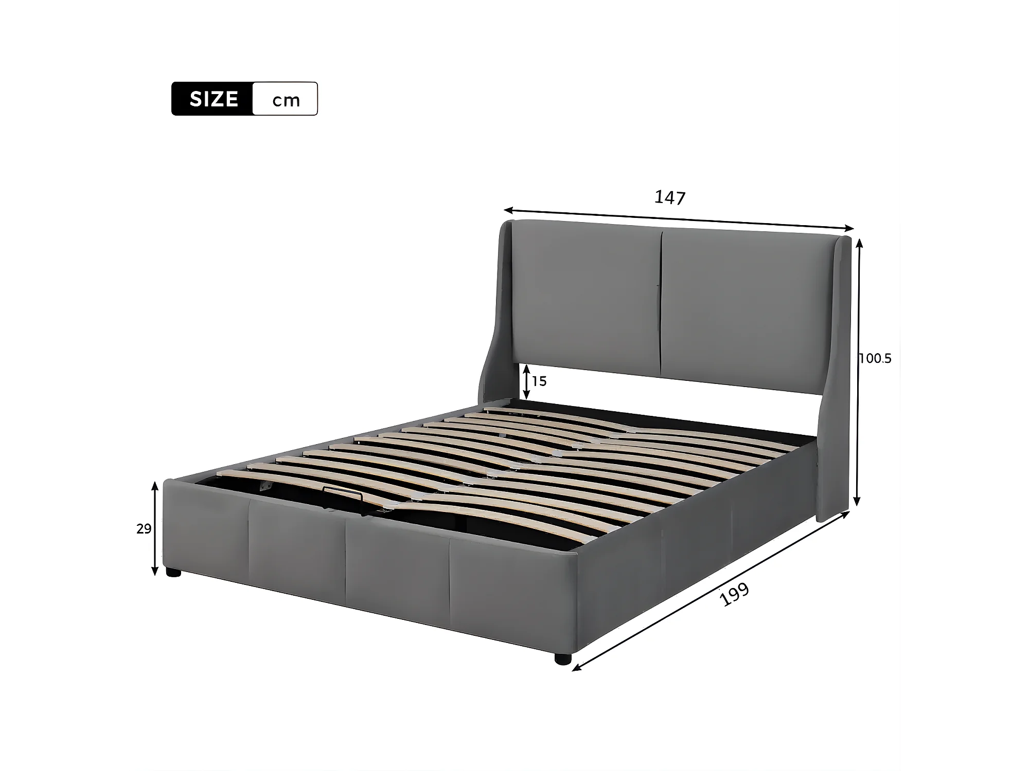 Lit tapissé - 140x190 cm - Lit double avec rangement - Velours - Gris