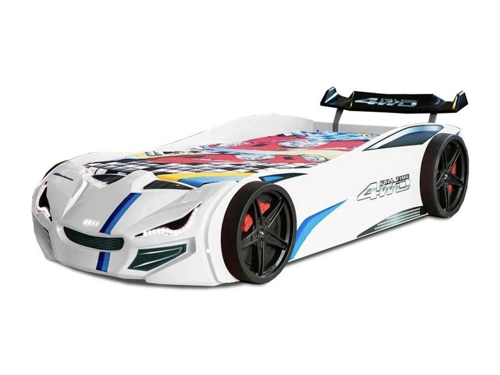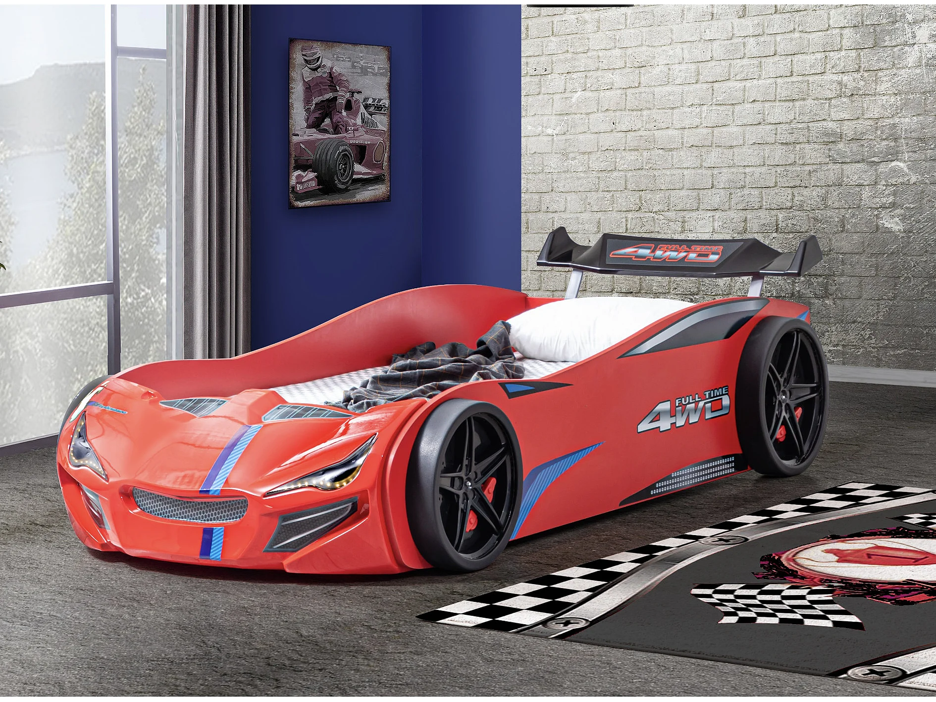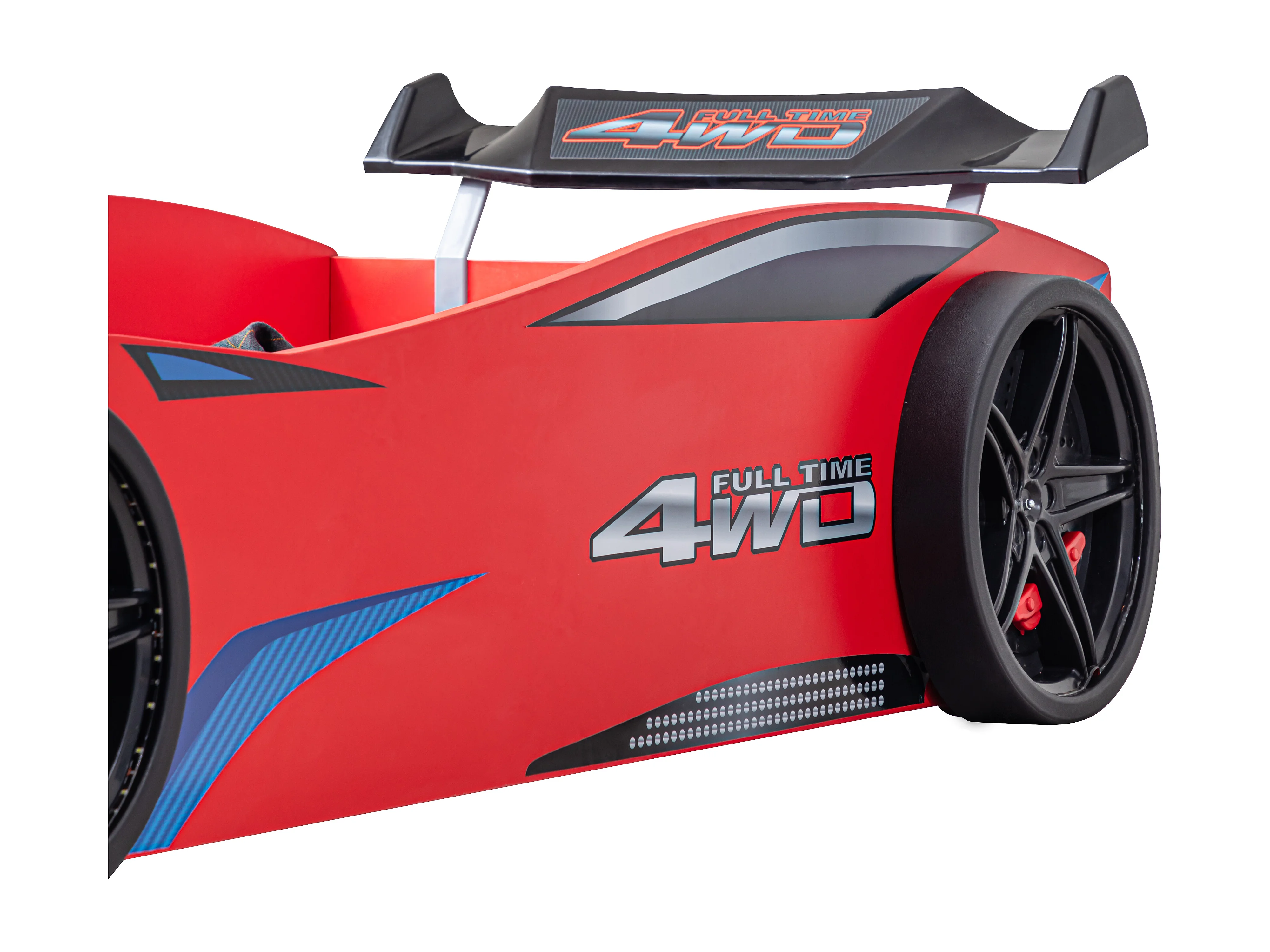 Lit voiture de course MUSTANG avec phares LED – 90x190-Rouge