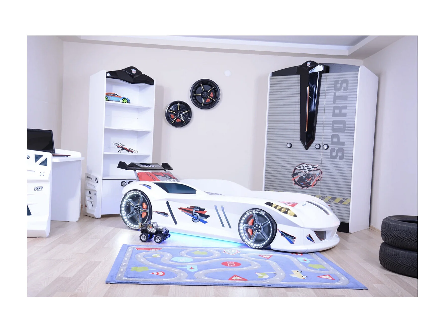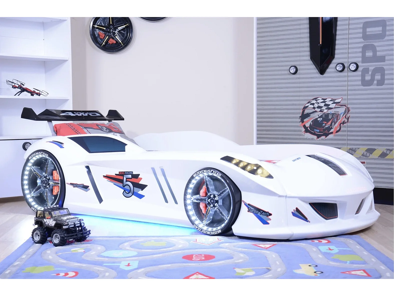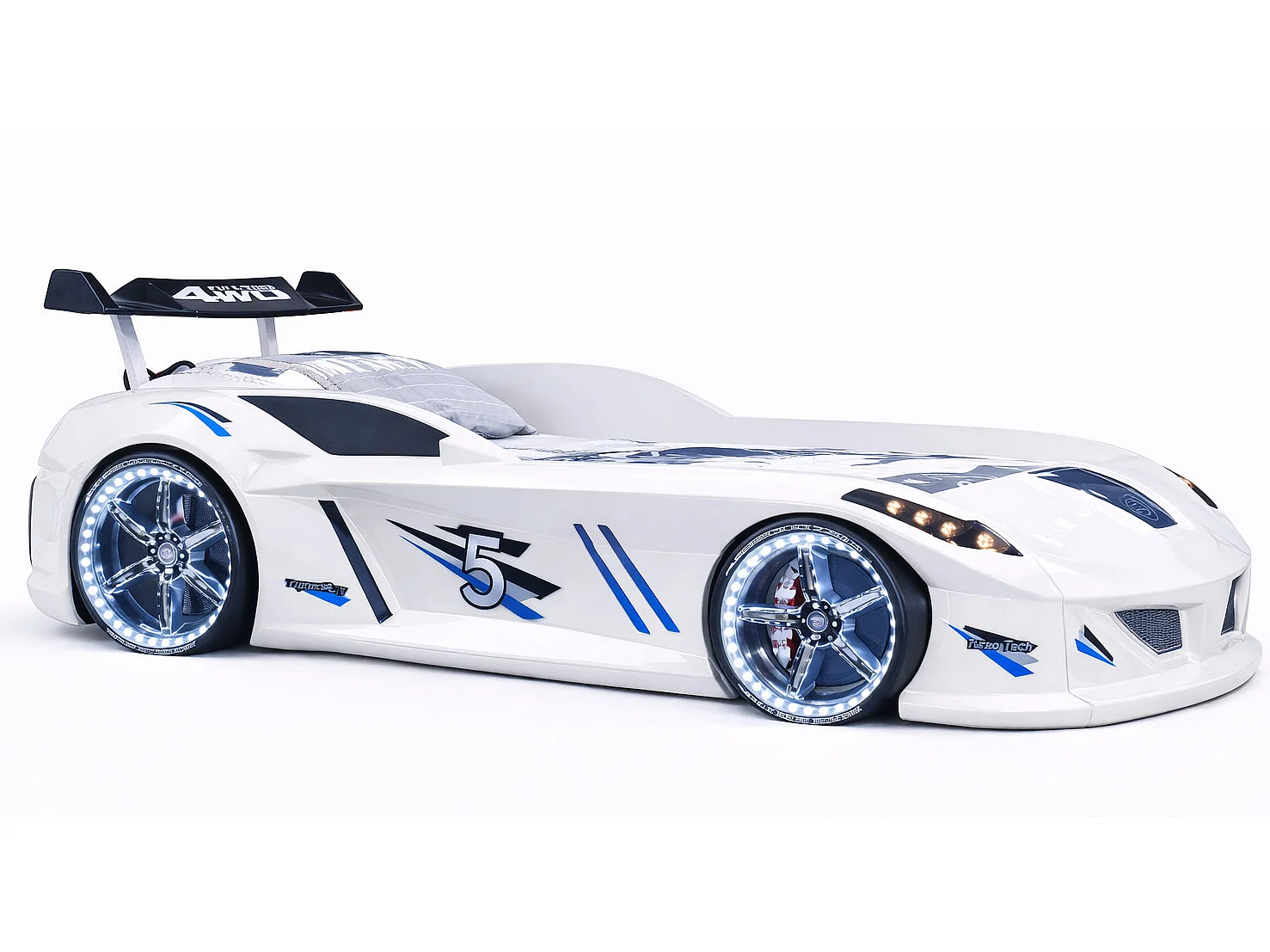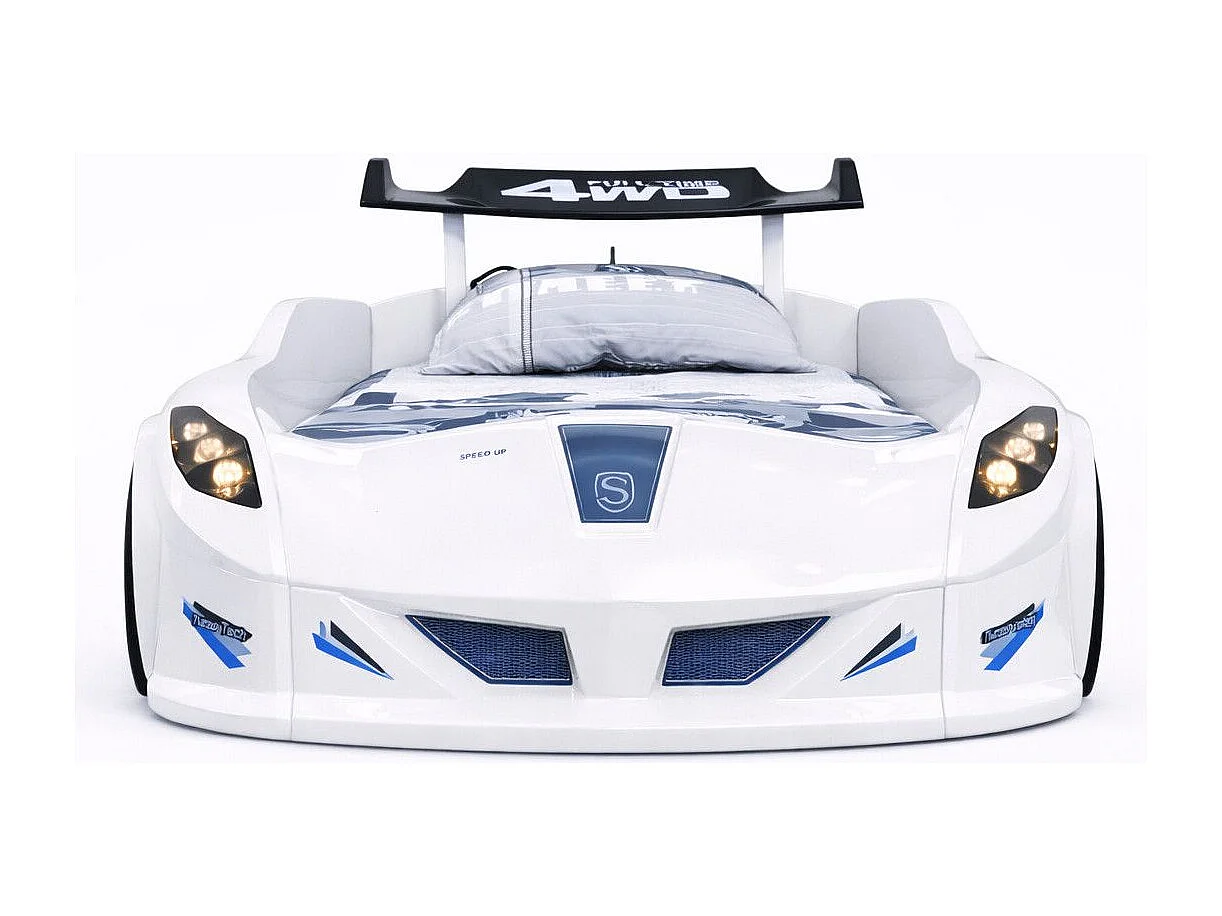 Lit voiture FORMULE 1 avec LED et bruitages – 90x190-Blanc