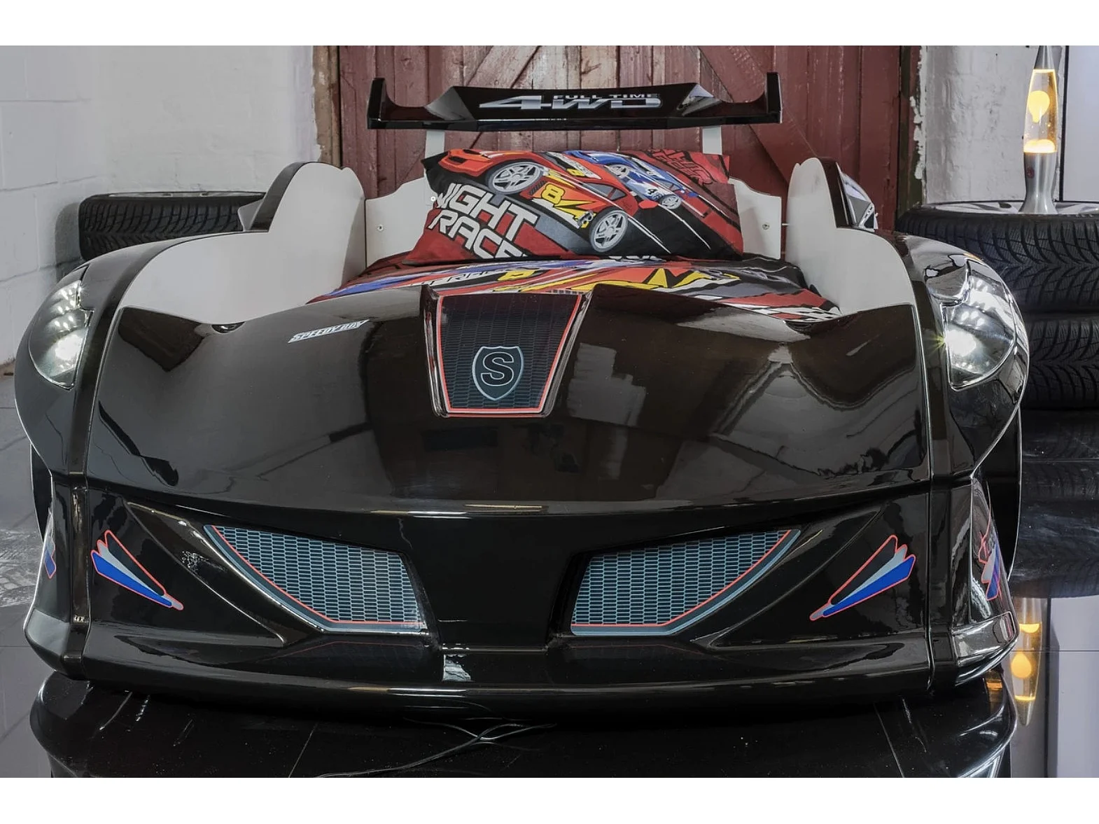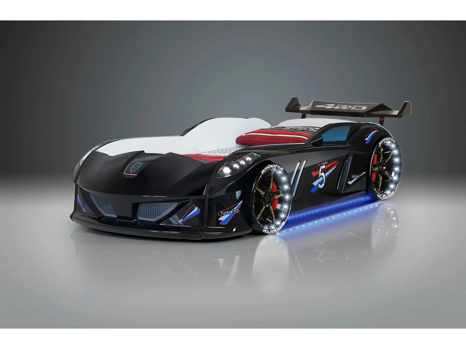 Lit voiture FORMULE 1 avec LED et bruitages – 90x190-Noir