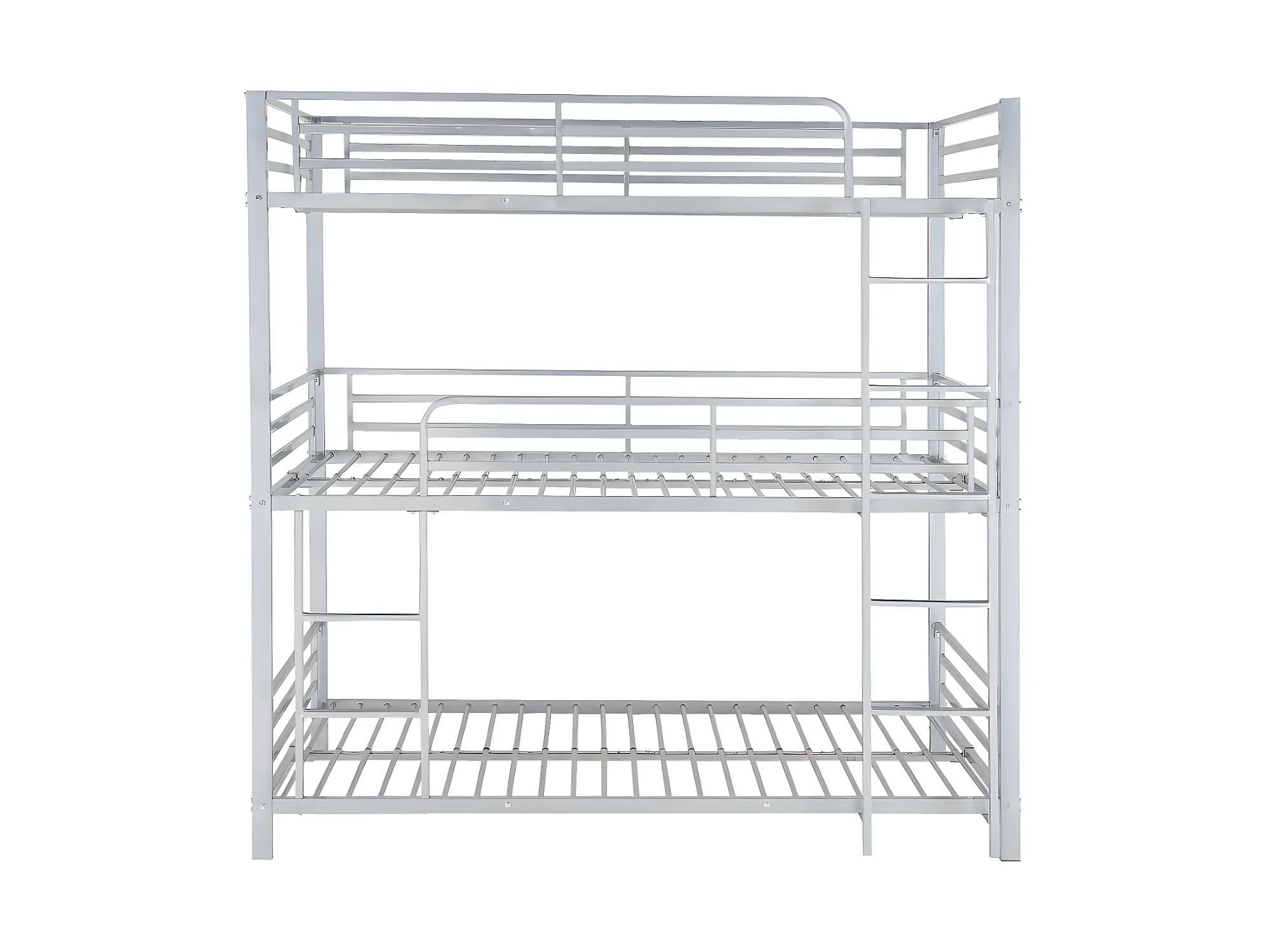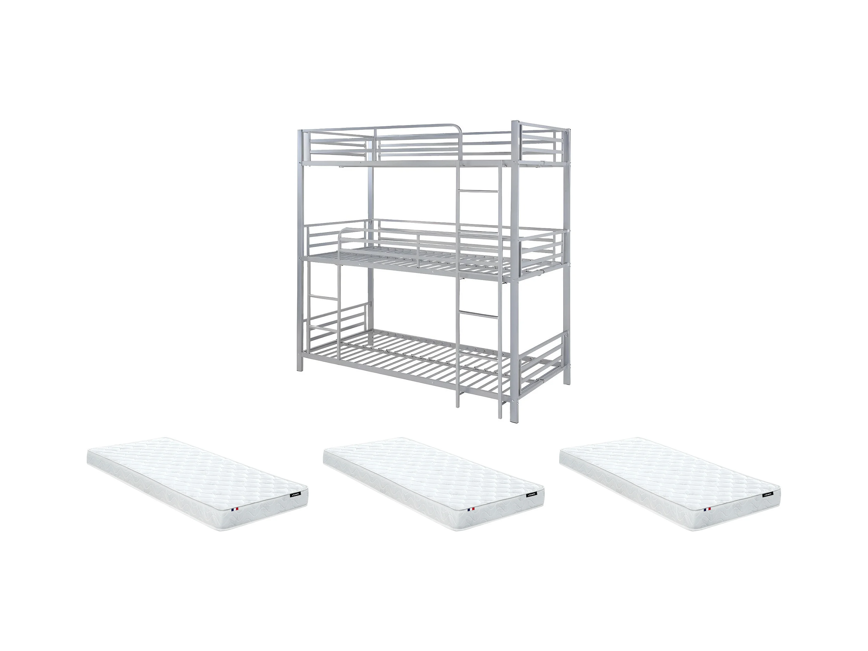 Lits superposés triple 3 x 90 x 190 cm - Métal - Argent + Matelas - ELOUAN III
